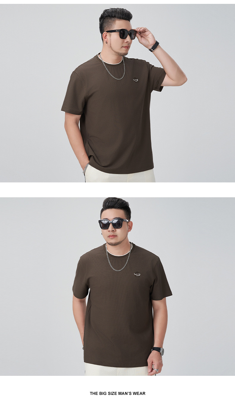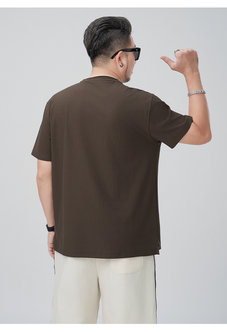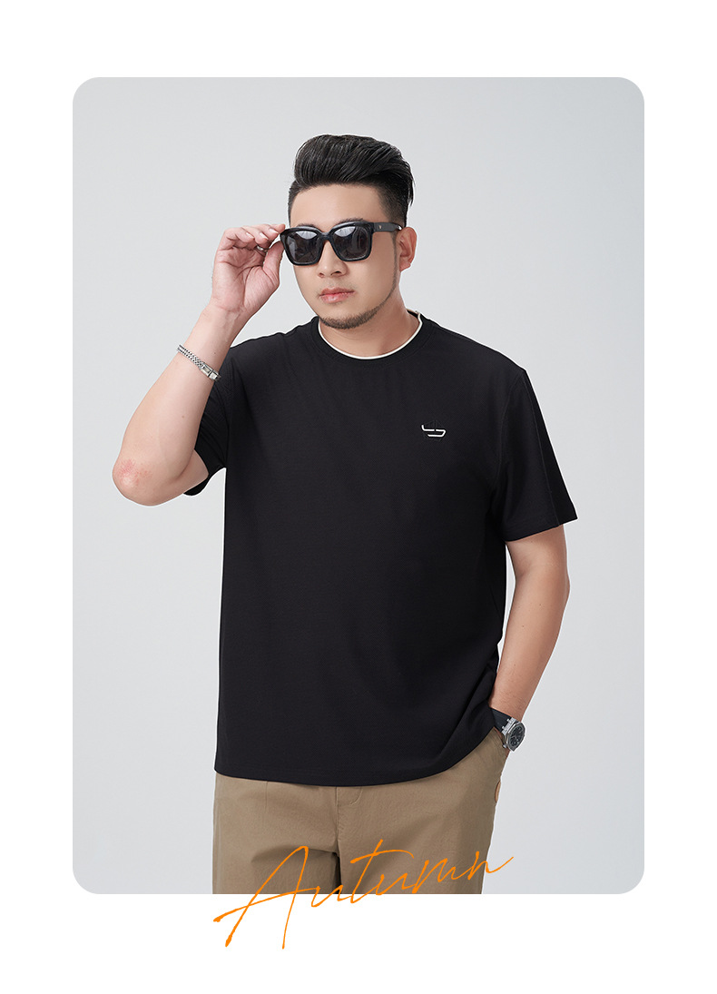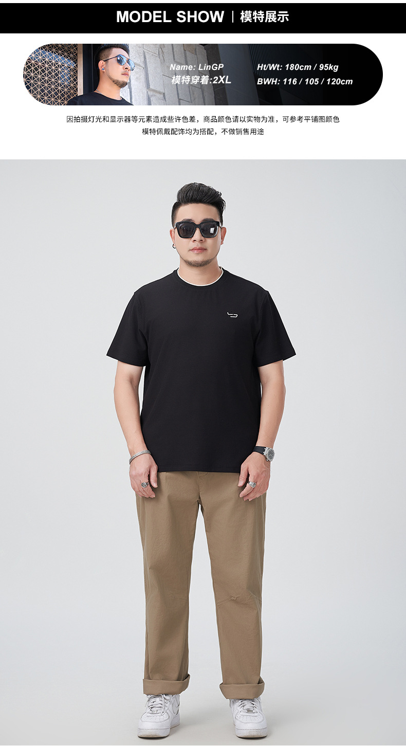 【DMH】大依优型大码短袖T恤重磅圆领版型男士宽松纯色夏季体恤日系上衣胖子潮流