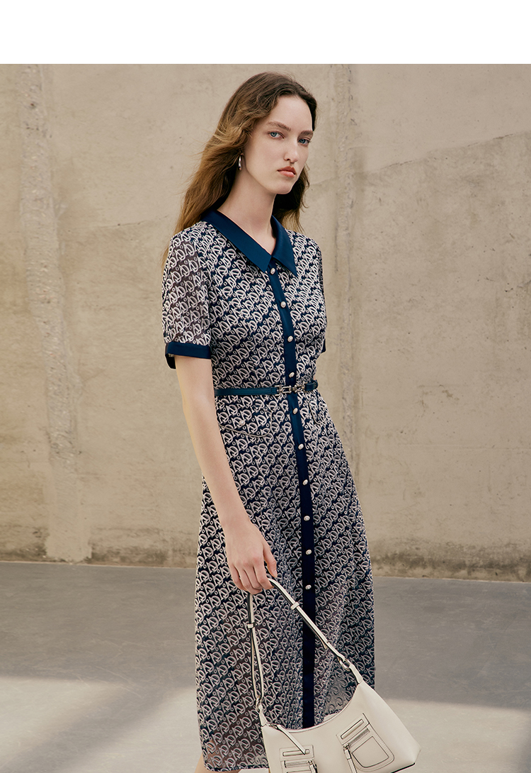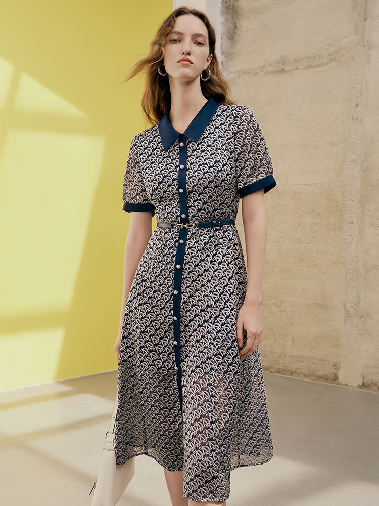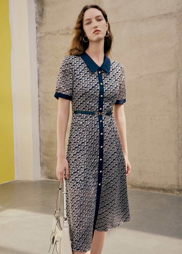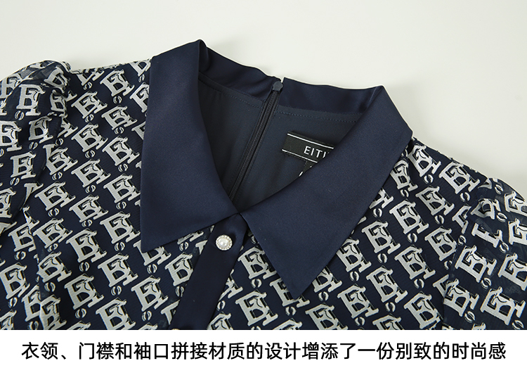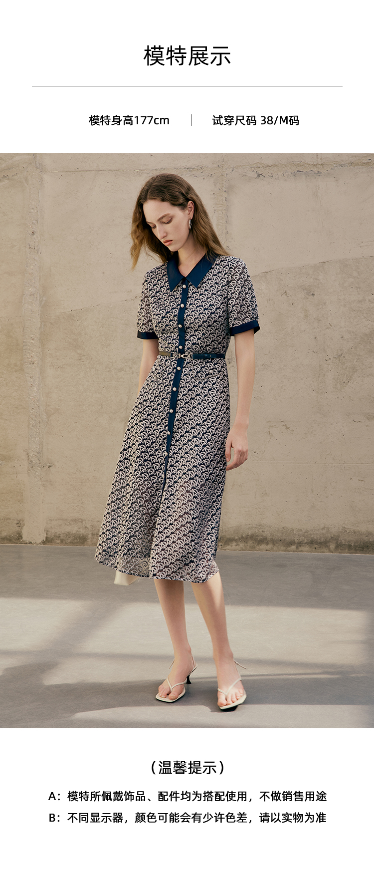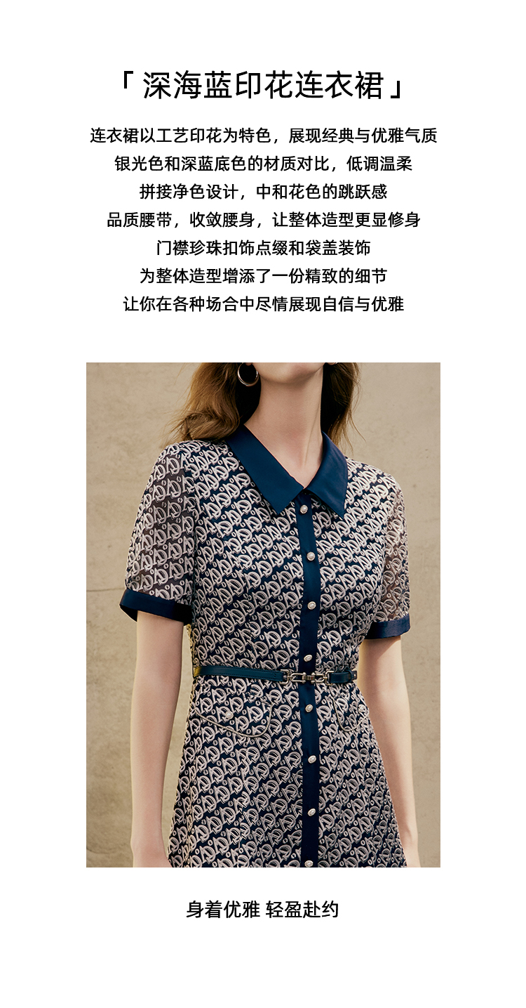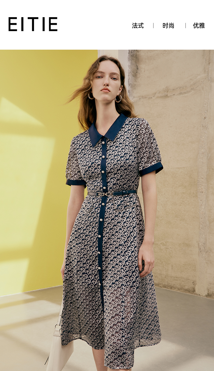 EITIE爱特爱夏季新款时尚显瘦气质撞色印花连衣裙7407135