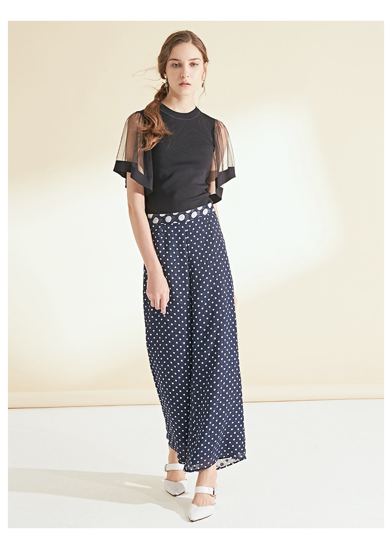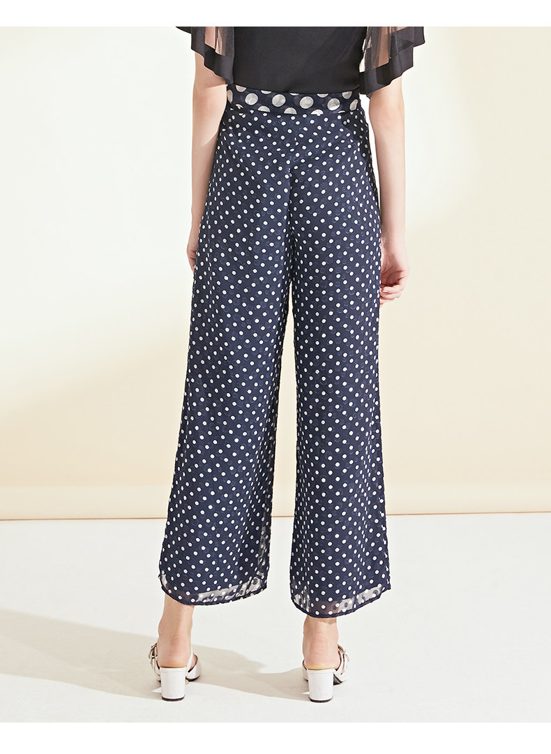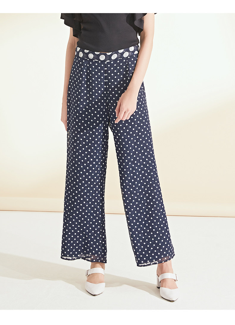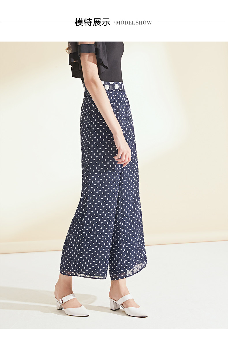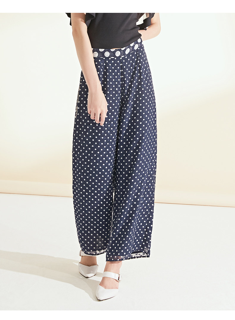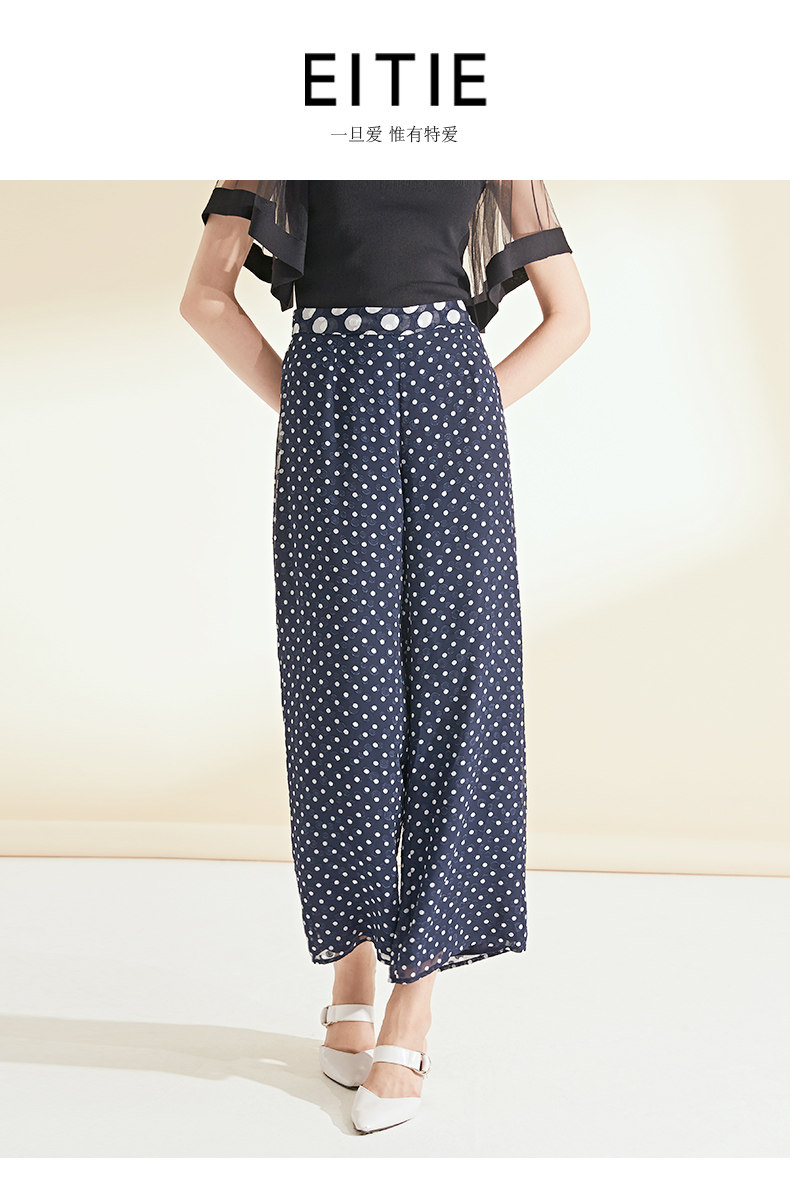 面料问题下架---EITIE爱特爱女装夏季新品波点宽松轻薄阔腿休闲裤长裤女5905626