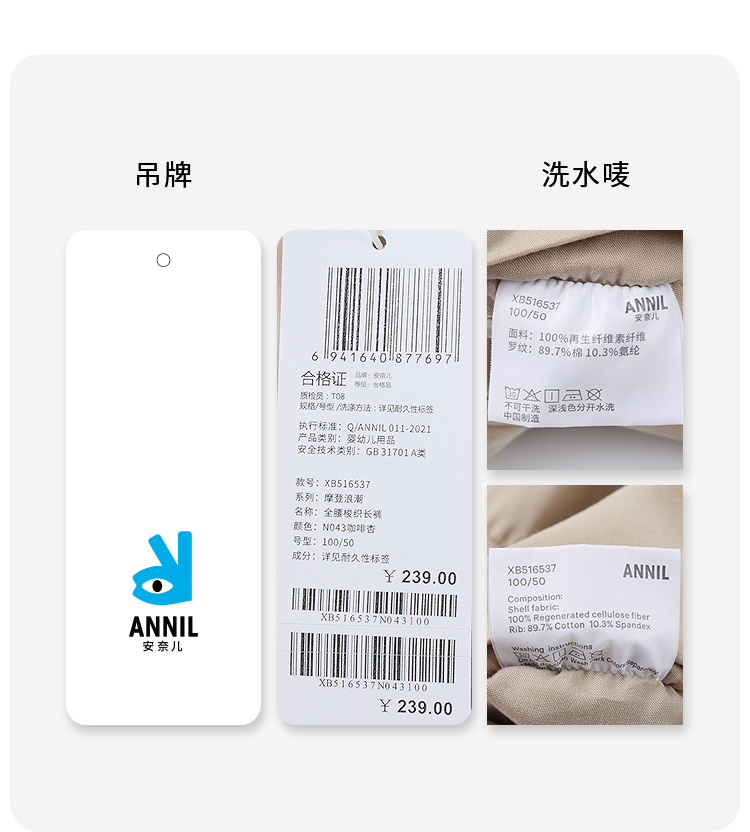 男童全腰梭织长裤防蚊裤春季新款安奈儿童装实体店同款XB516537