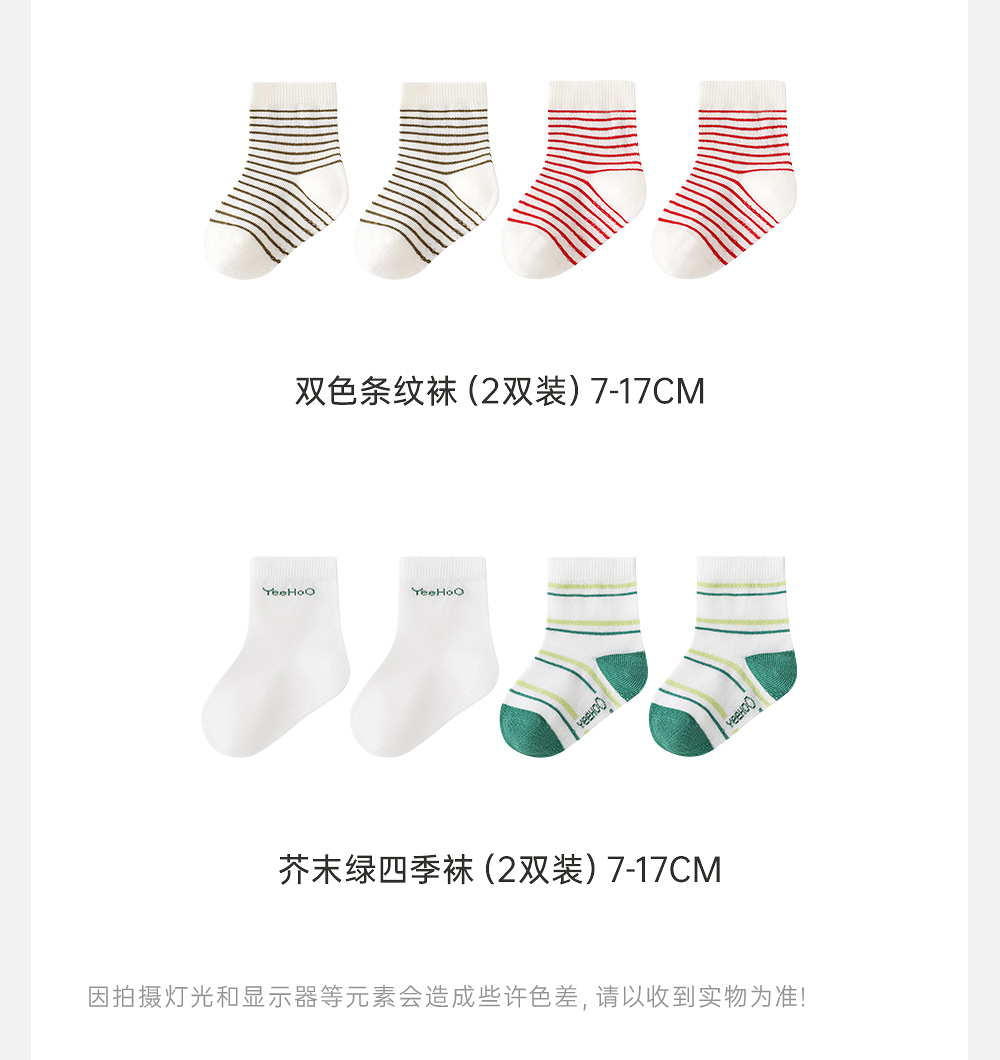 【商场同款】英氏儿童袜子透气男童四季袜7A抗菌女童短袜两双装