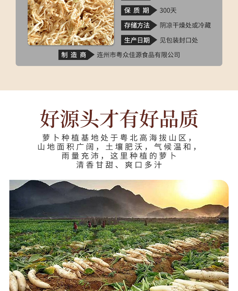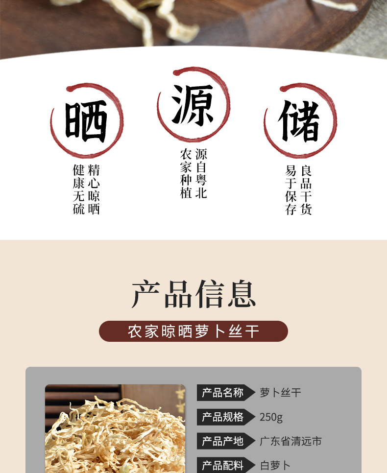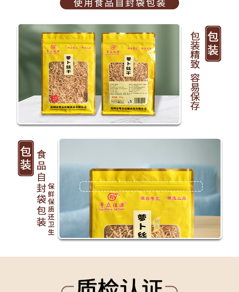 连州粤众佳源萝卜丝干八边封自立袋250克蔬菜干制品
