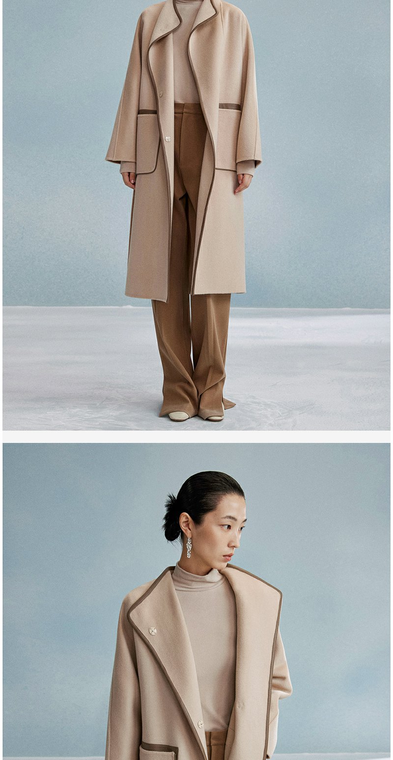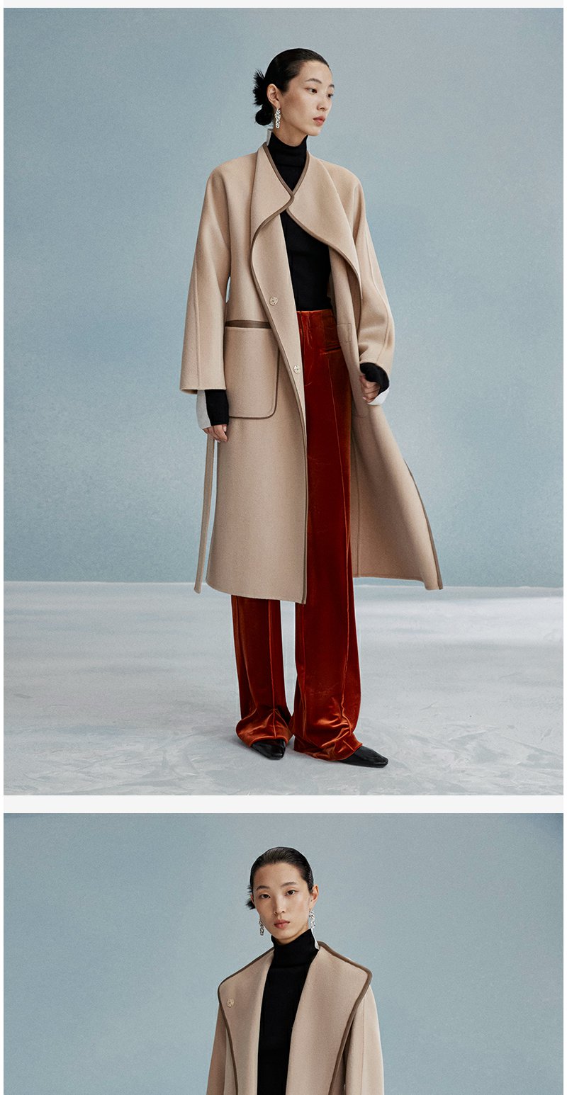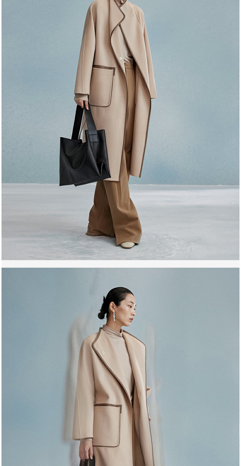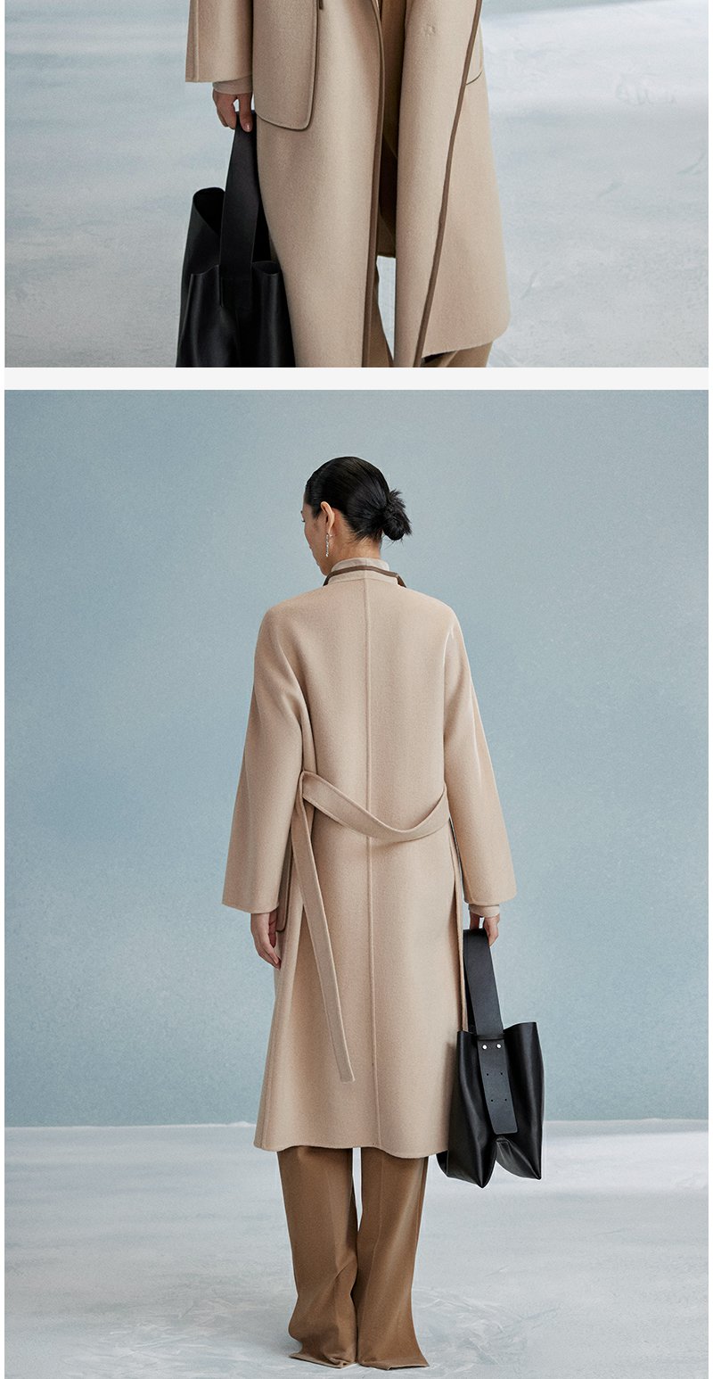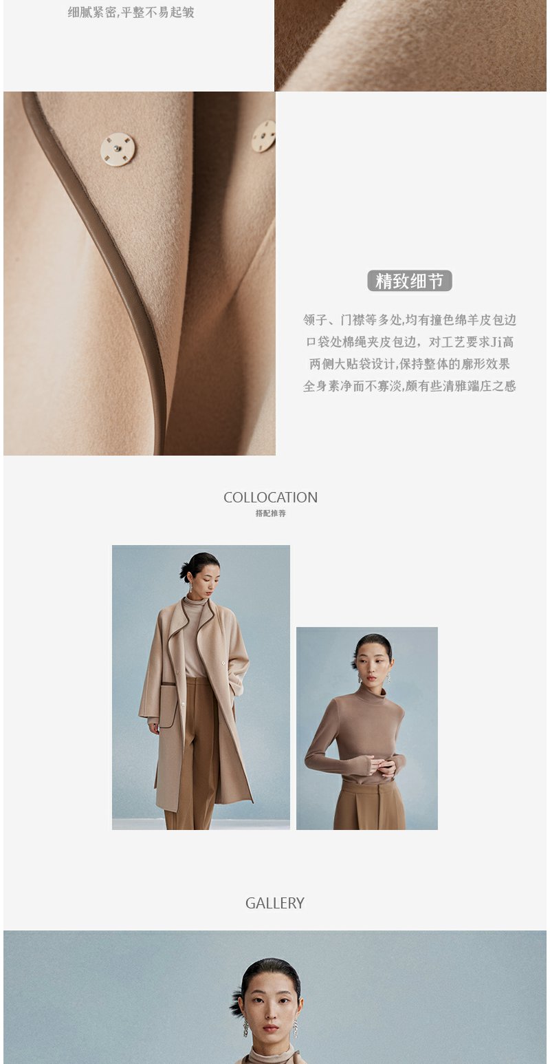 西嘉西嘉 高支全羊毛皮包边赫本风毛呢大衣女双面羊毛外套时尚洋气