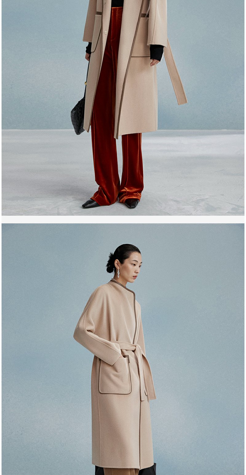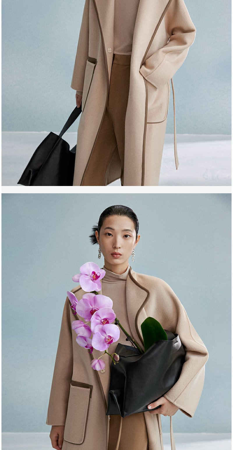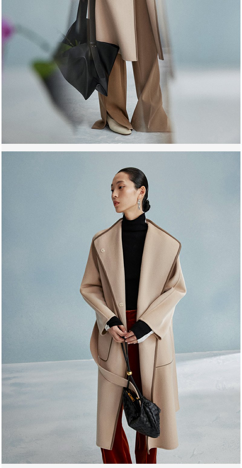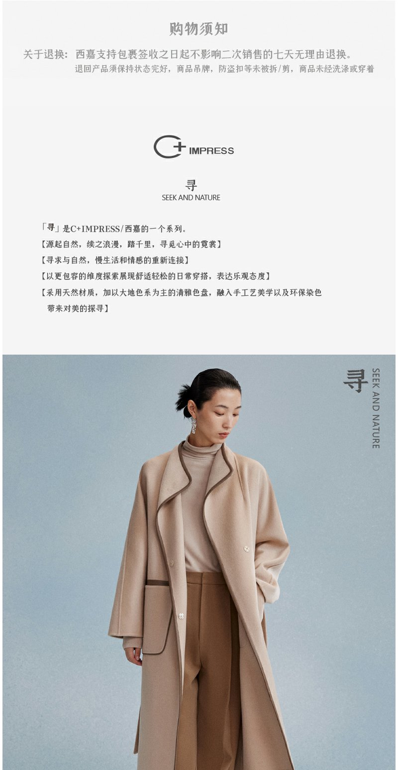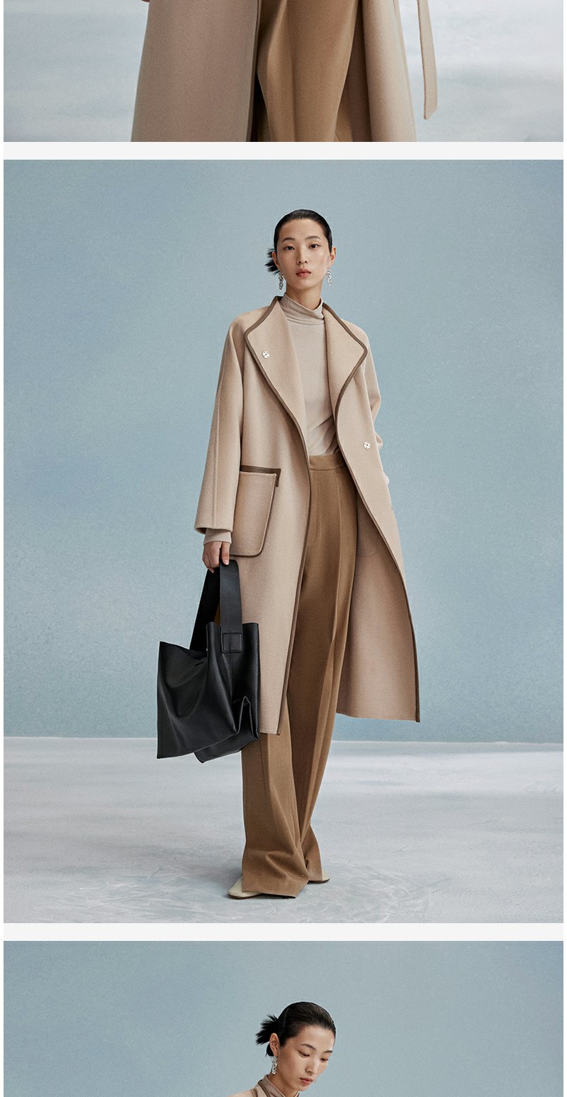 西嘉西嘉 高支全羊毛皮包边赫本风毛呢大衣女双面羊毛外套时尚洋气