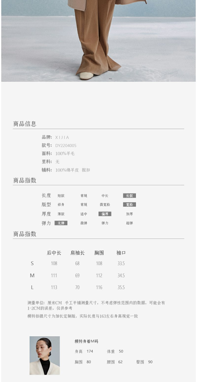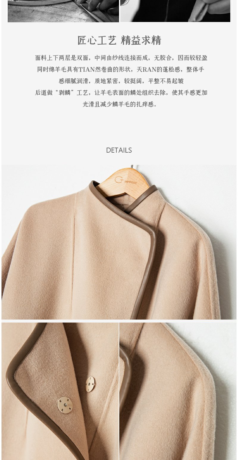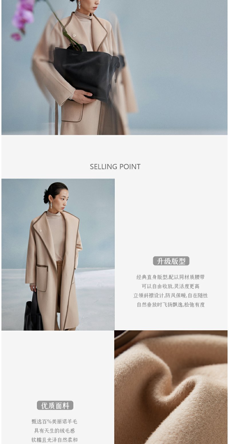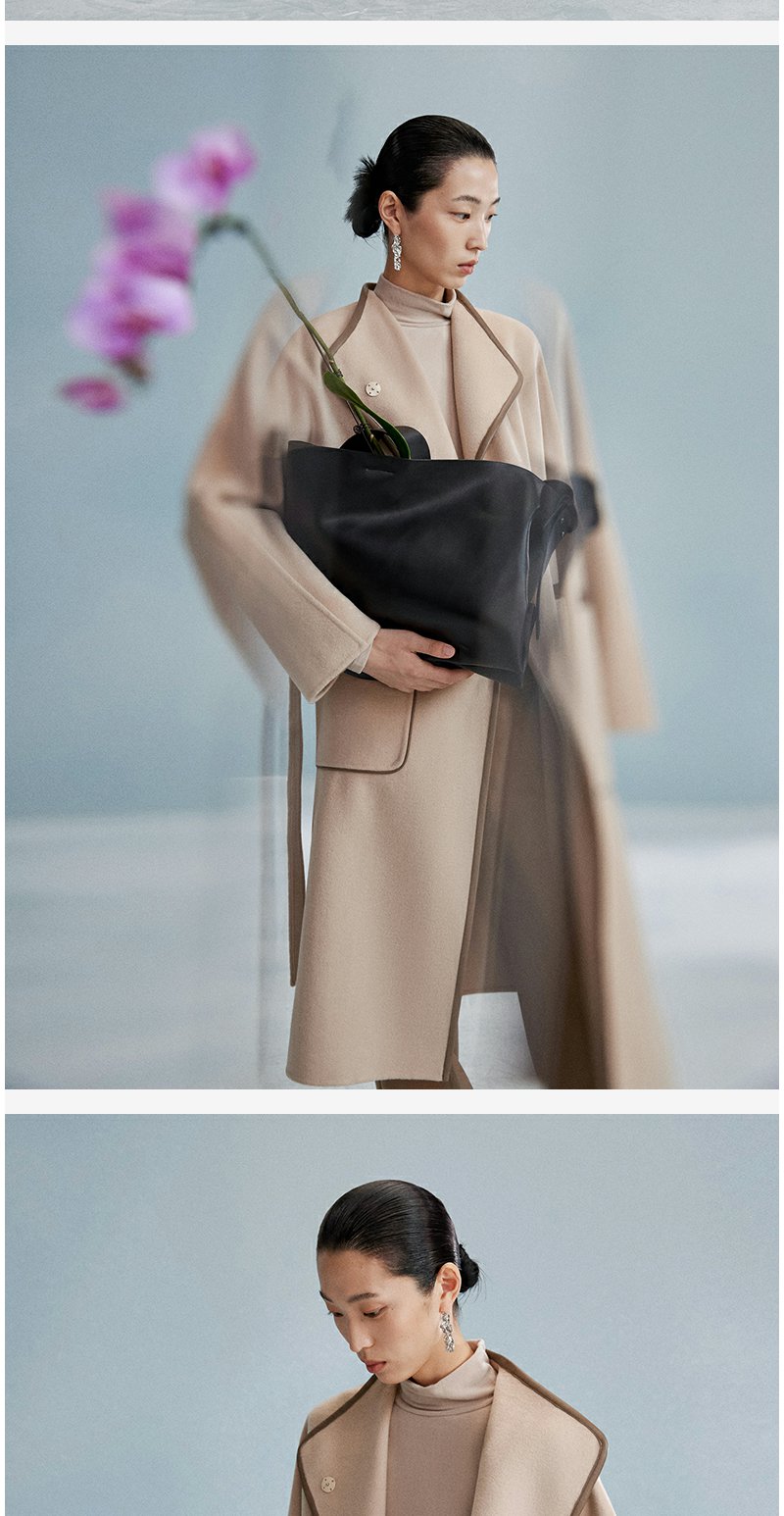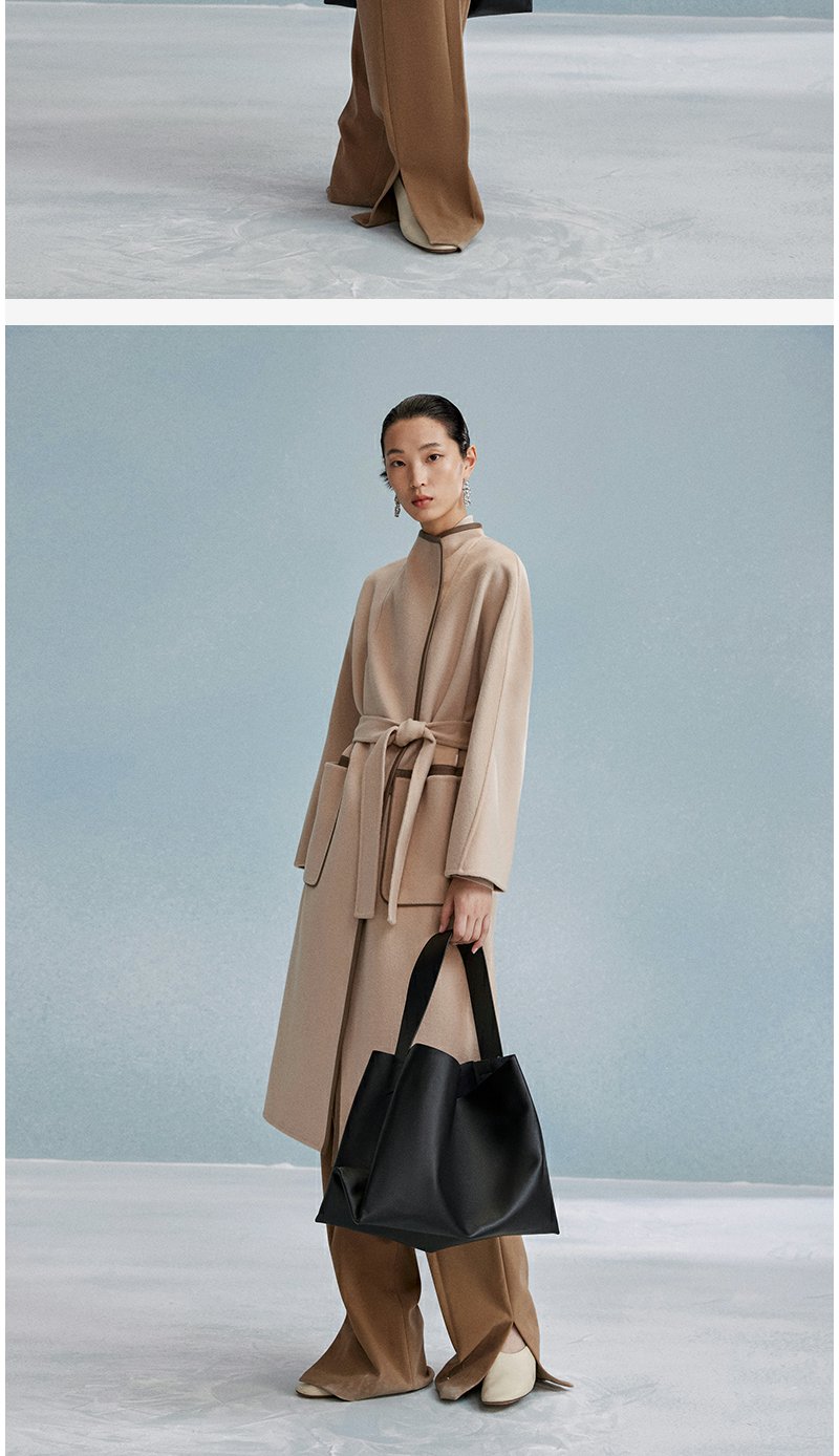 西嘉西嘉 高支全羊毛皮包边赫本风毛呢大衣女双面羊毛外套时尚洋气