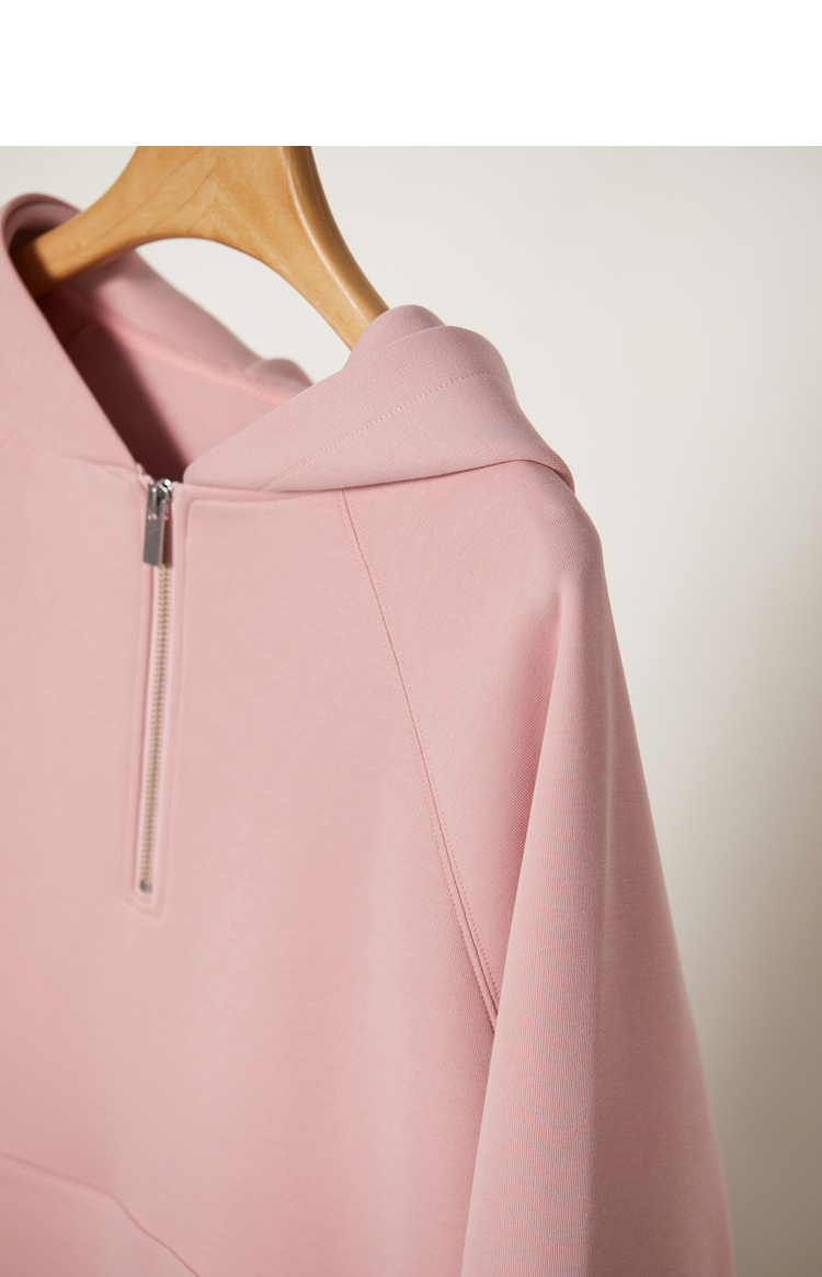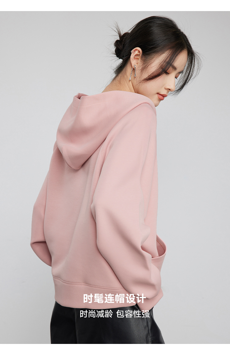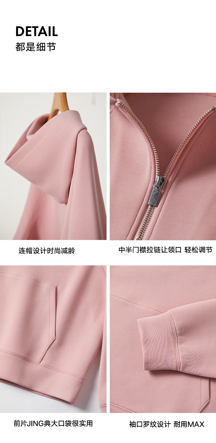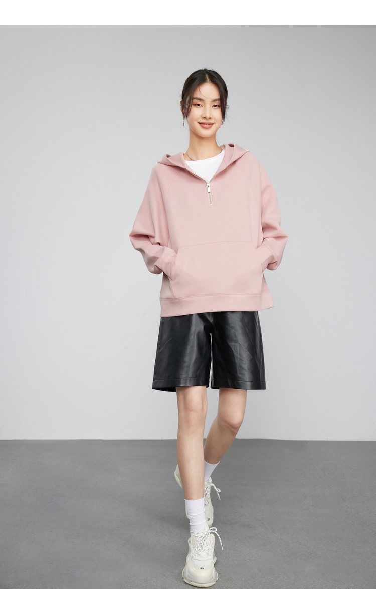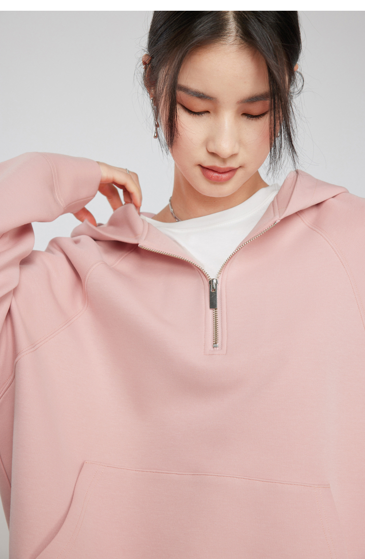 342608010-女装粉色半拉链卫衣女 美式复古空气层上衣 春季bf风连帽宽松外套