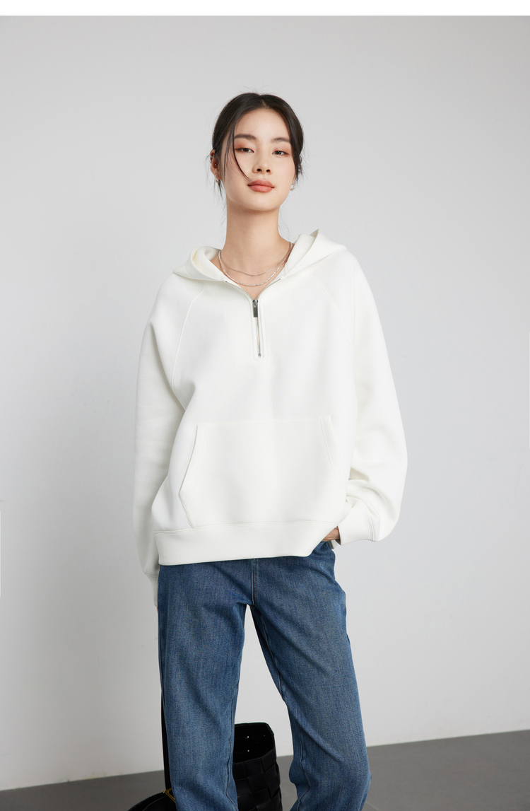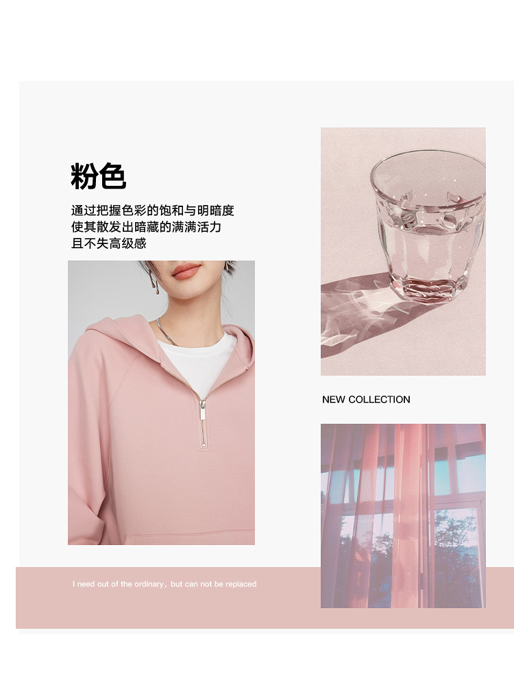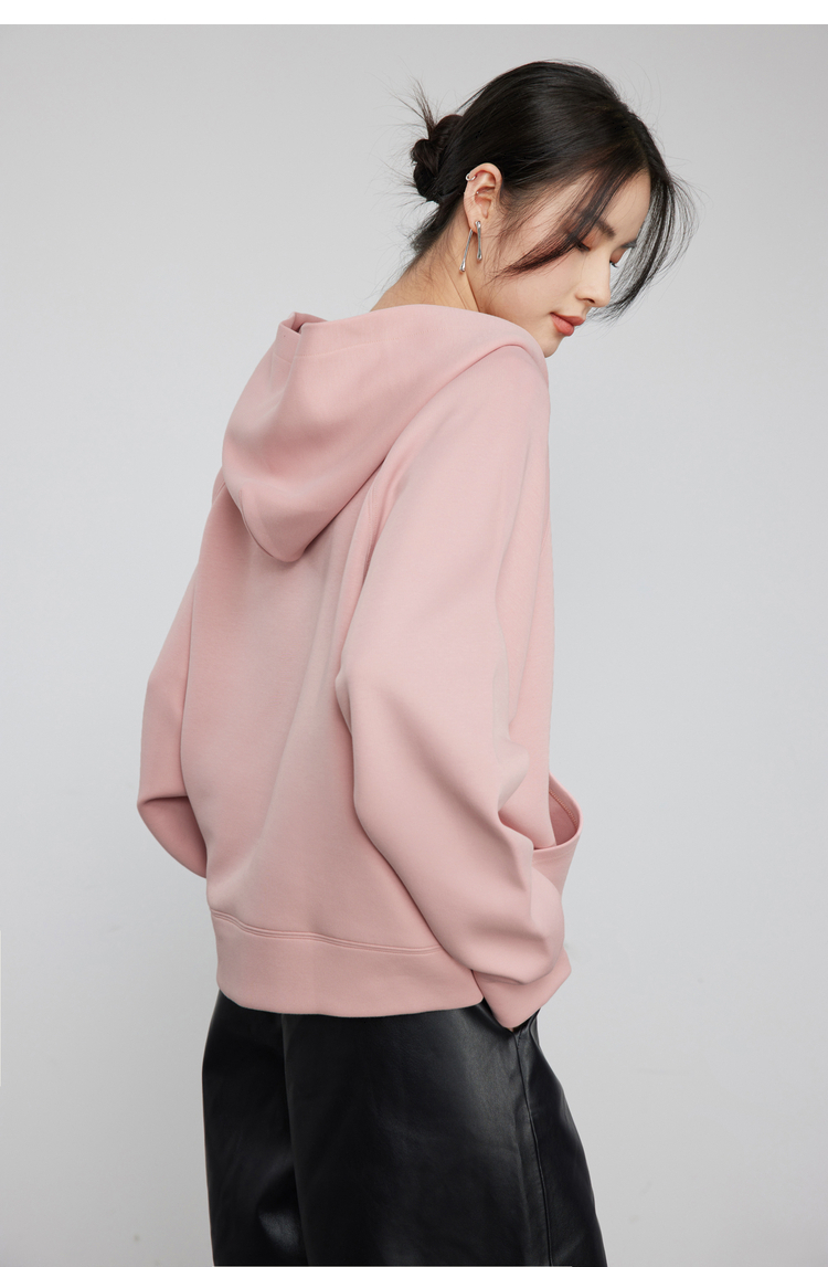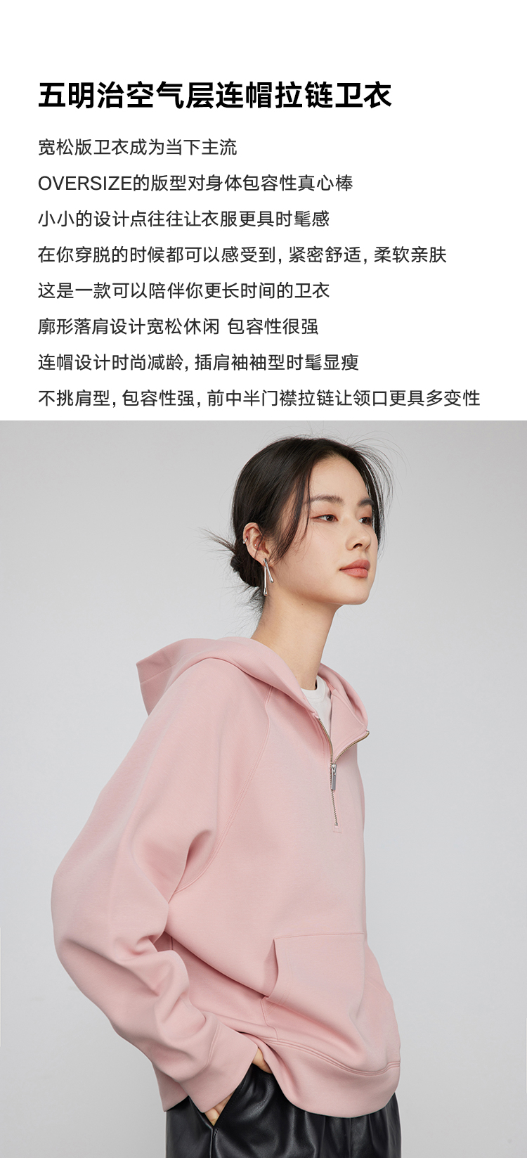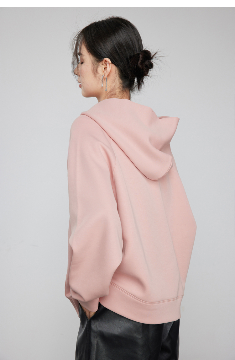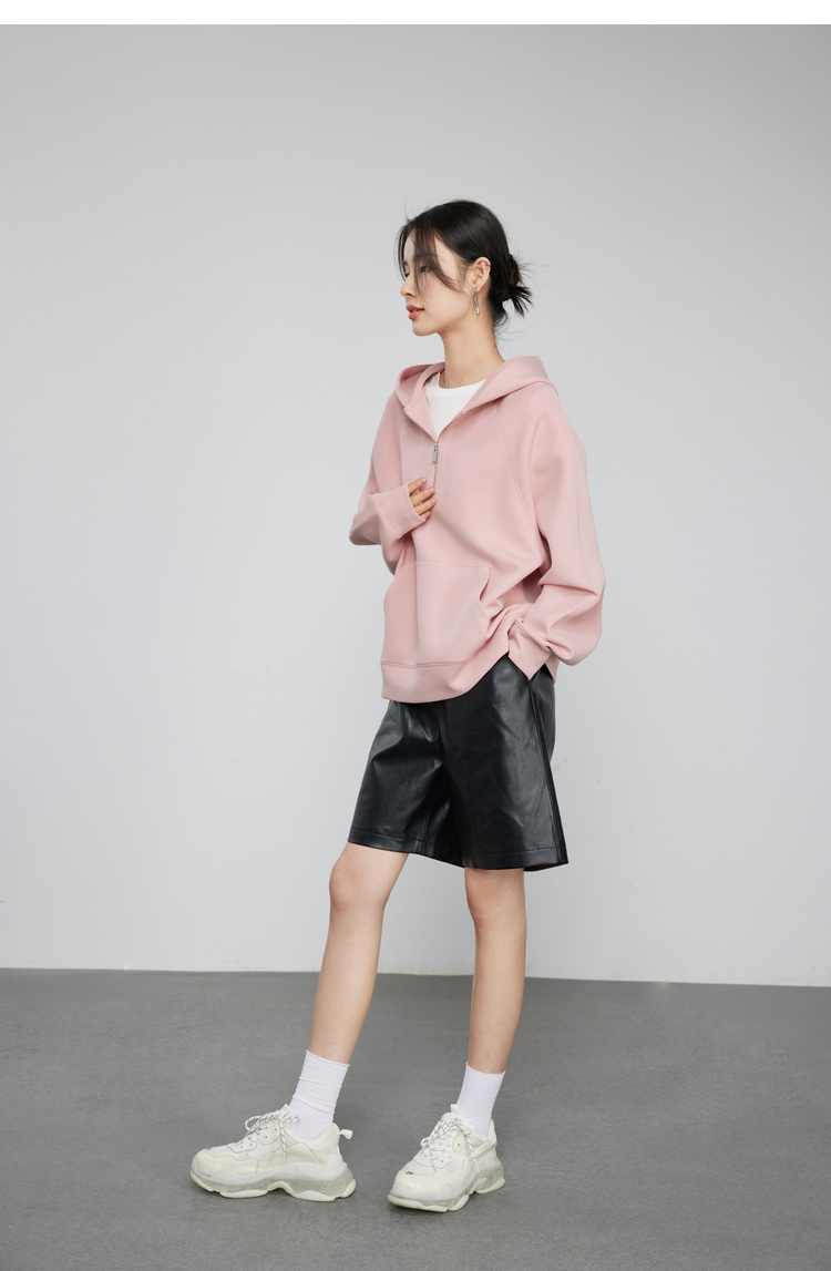 342608010-女装粉色半拉链卫衣女 美式复古空气层上衣 春季bf风连帽宽松外套
