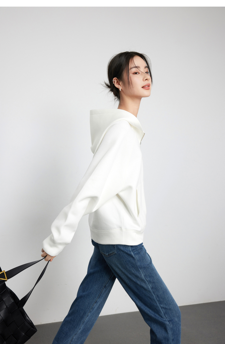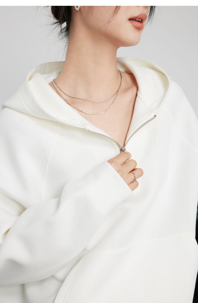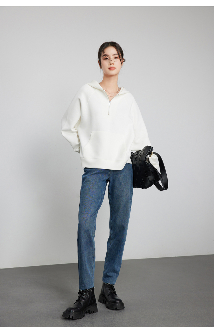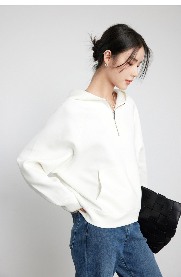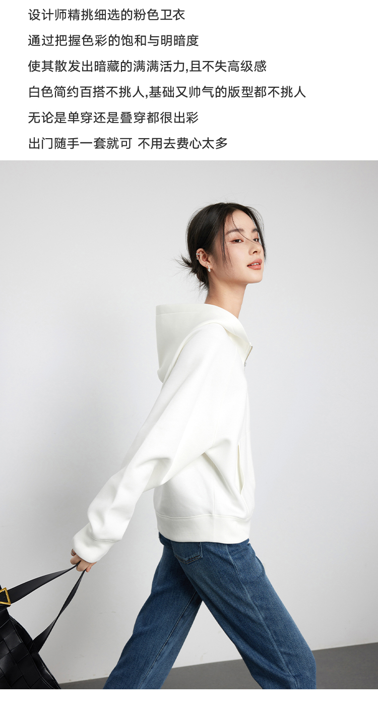342608010-女装粉色半拉链卫衣女 美式复古空气层上衣 春季bf风连帽宽松外套