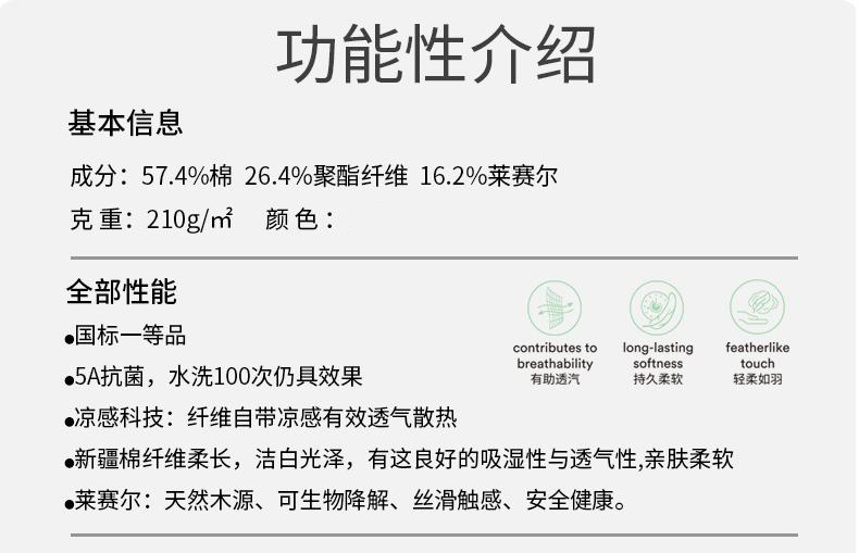 面料:57.4%棉 26.4%聚酯纤维 16.2%莱赛尔