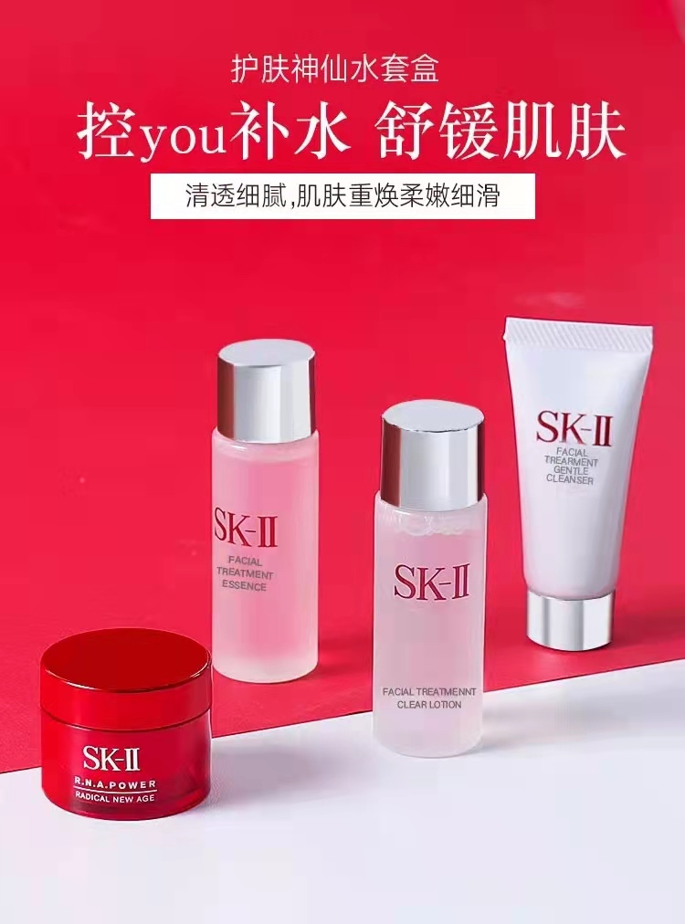 SK2神仙水中样套👍 一套解决肌肤烦恼[耶]针对细纹、毛孔粗大、肌肤粗糙、光泽度不足进行修护,可以帮助肌肤平衡改善✨质地轻薄,❌ 厚重 。出差/旅行必备神器🉐 方便携带✔️ ,想入手正装❓ 也🉑 以购买中样试用。让你重塑自信心🔥 适用于:任何肌肤🉐。