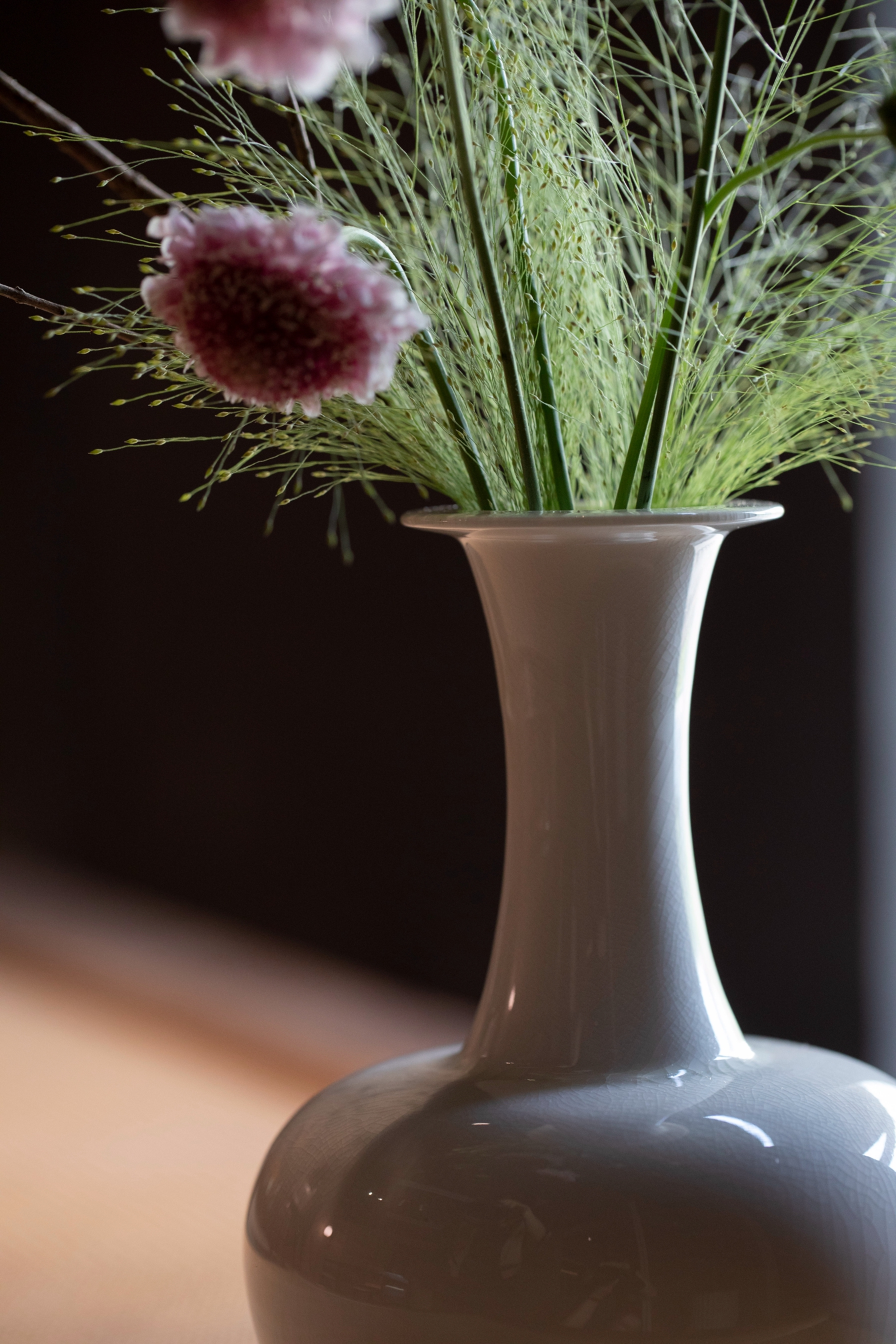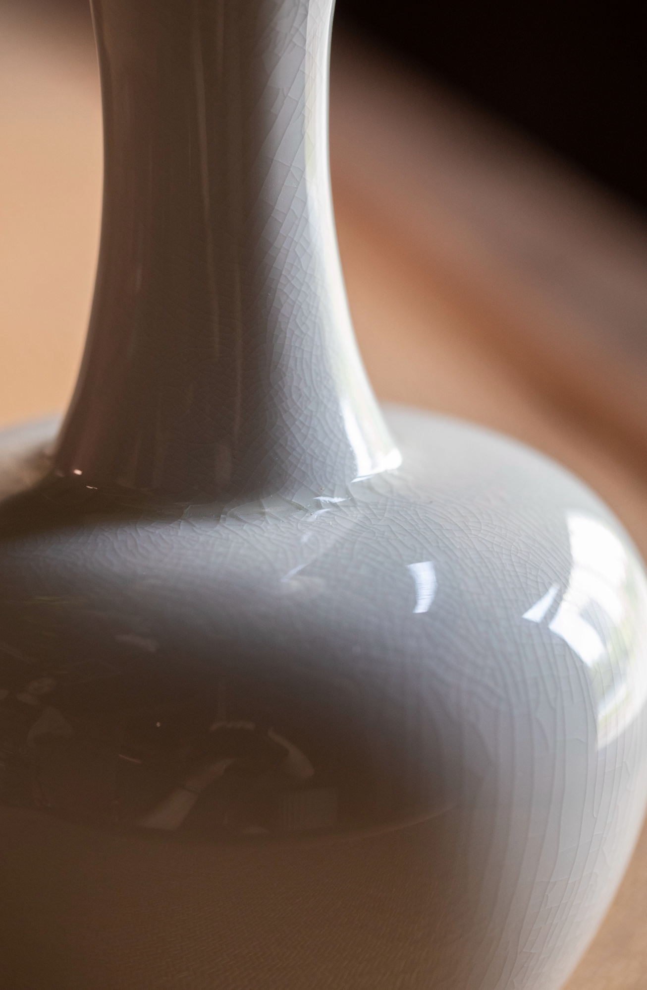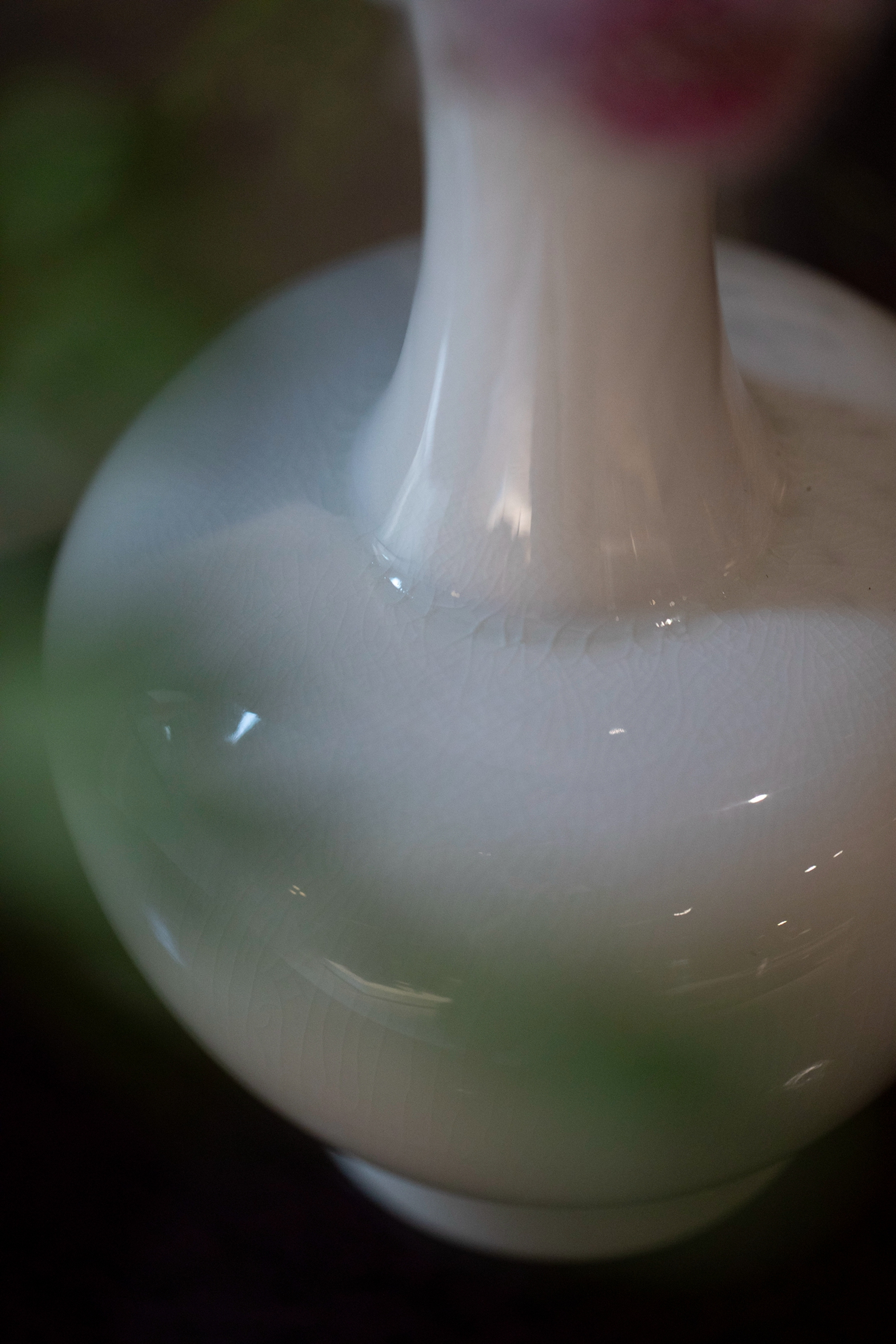此器沿用了隋代白瓷瓶的经典造型,风格简静,气度典雅,既有隋白的神韵之美,又符合现代审美和日常使用。