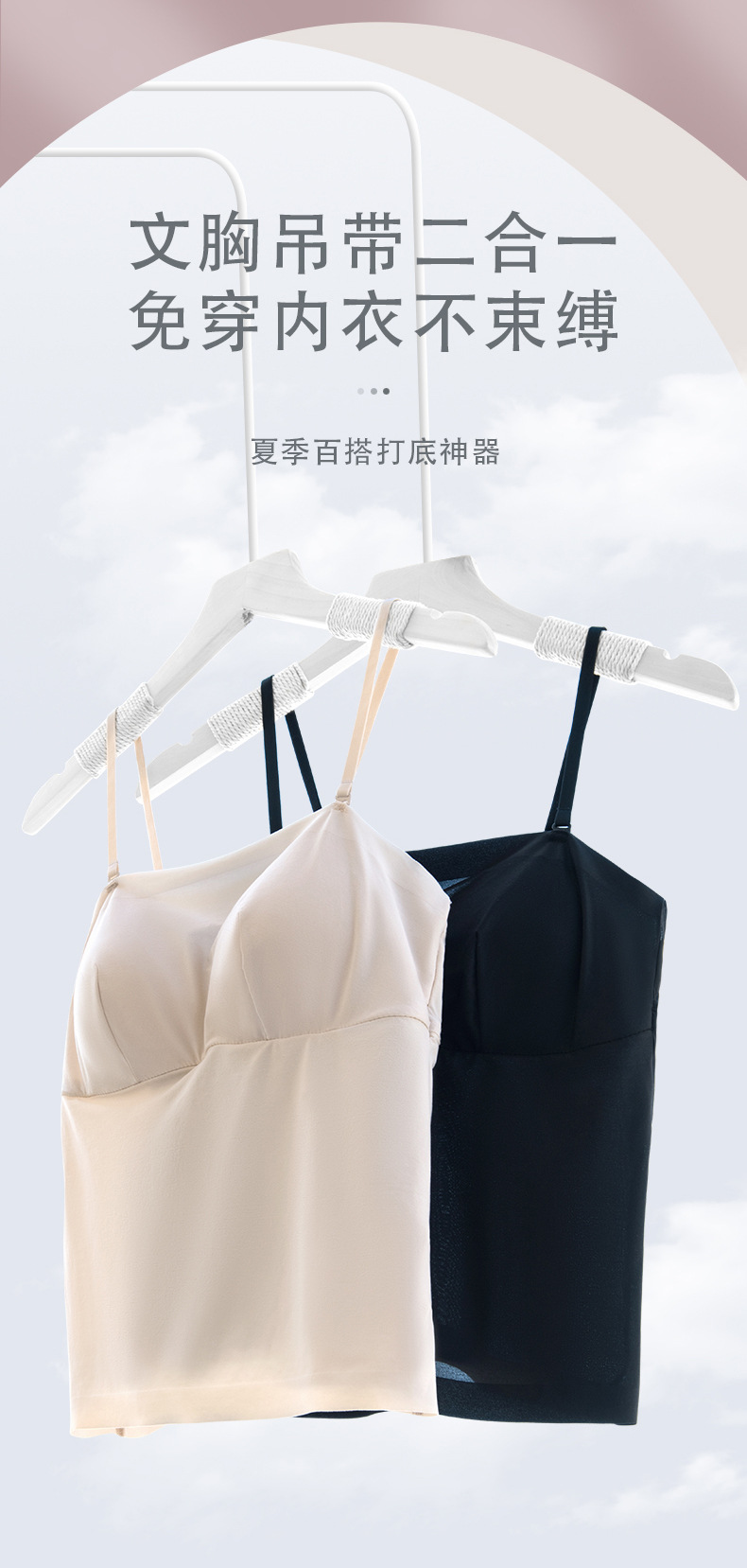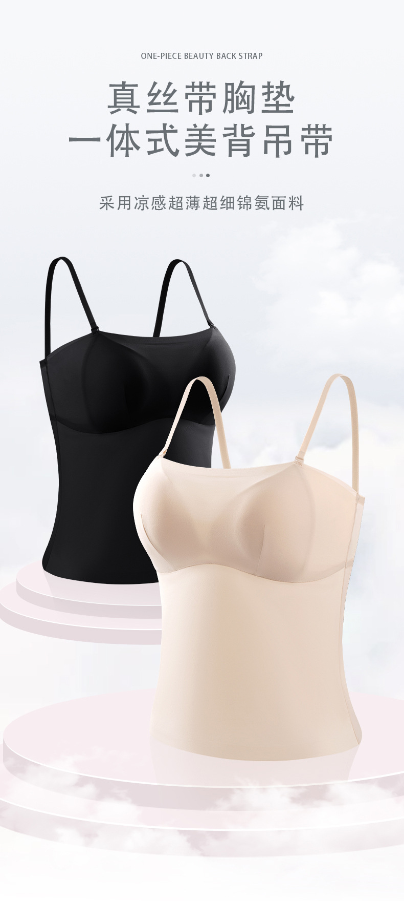 TG-TG03S261真丝带胸垫一体式美背吊带内衣 桑蚕丝薄款修身高弹打底背心