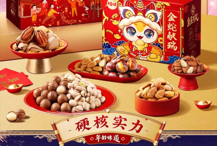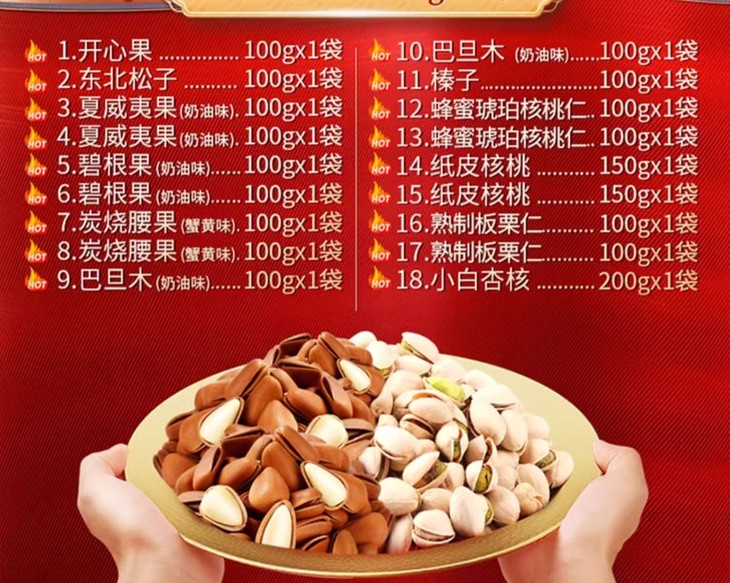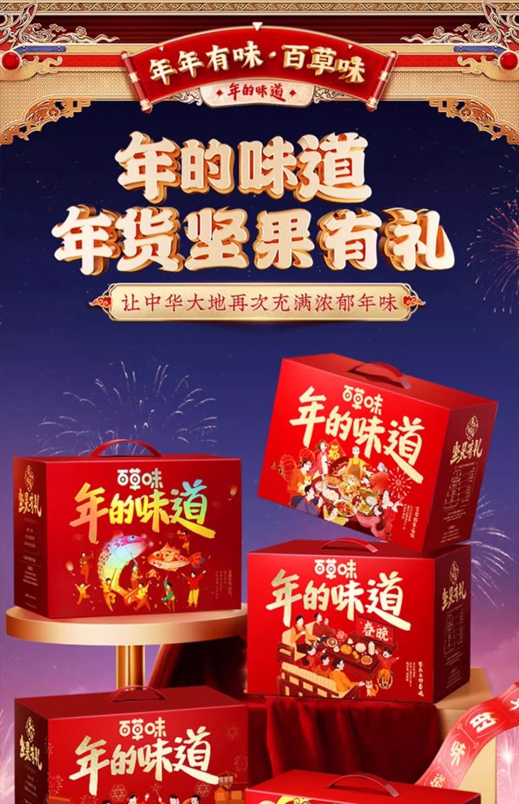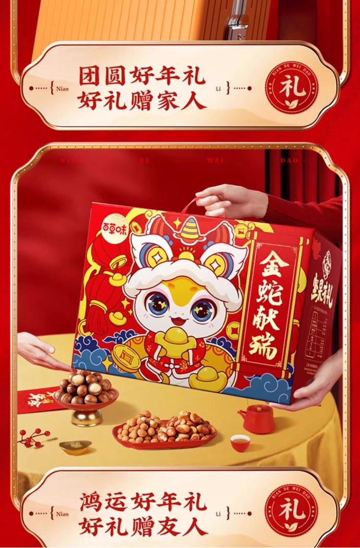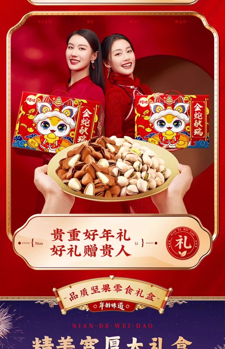 百草味坚果大礼包 【金蛇献瑞-生肖款-全坚果礼盒2000g18袋(豪华礼)】混合干果礼