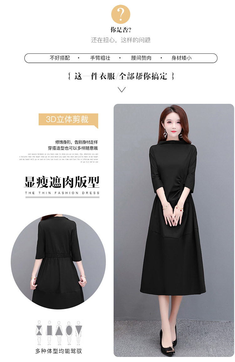 YSMR-8809-X中长款女宽松舒适遮肉显瘦气质粗绳打底连衣裙