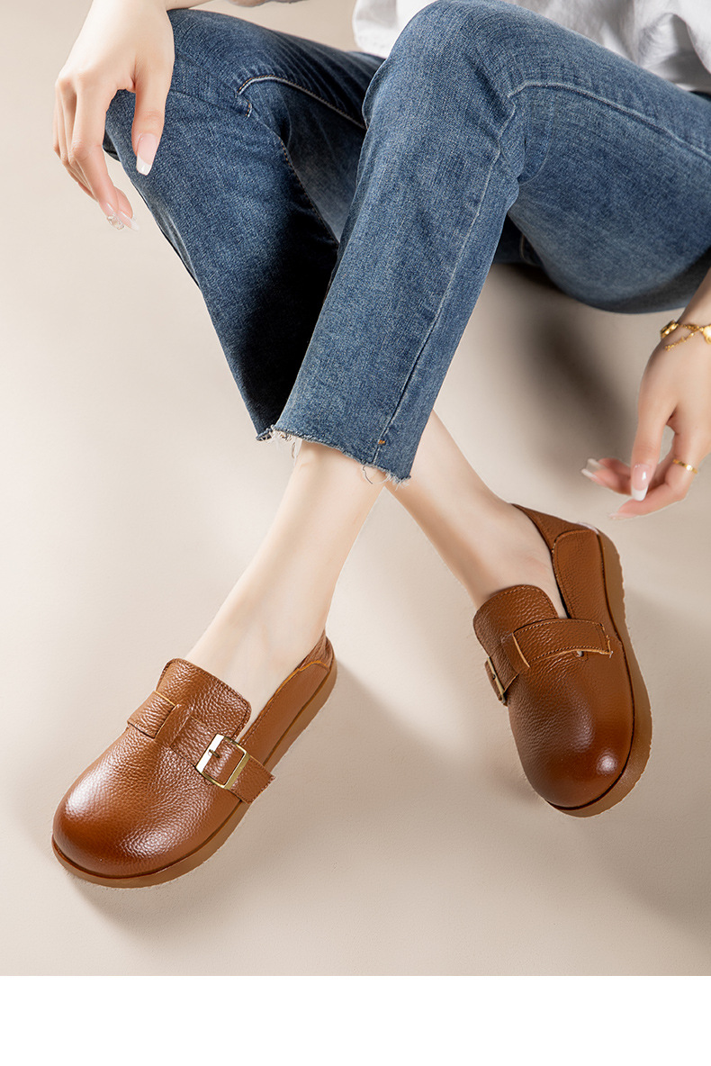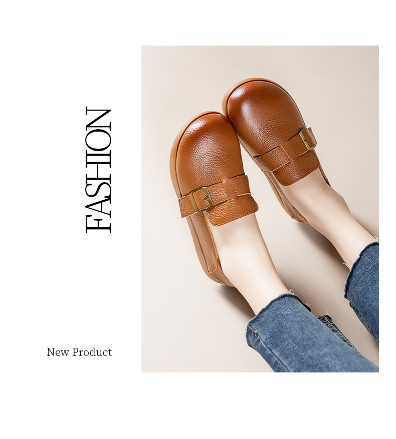 头层牛皮单鞋,复古平跟百搭豆豆小皮鞋MLD-0992