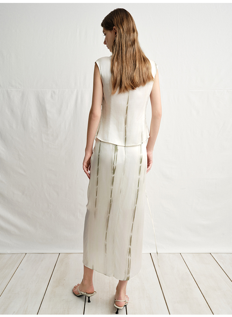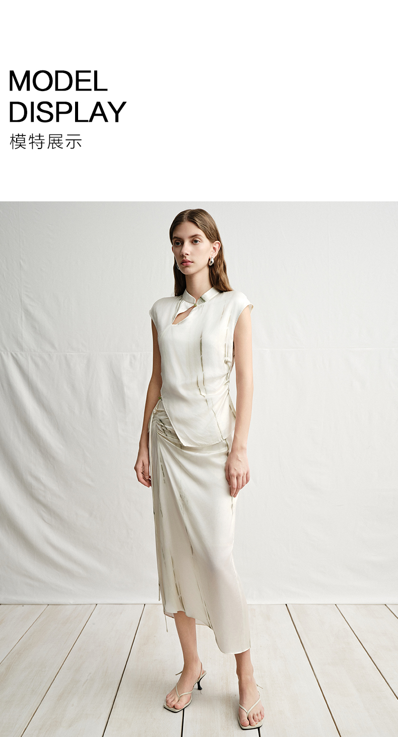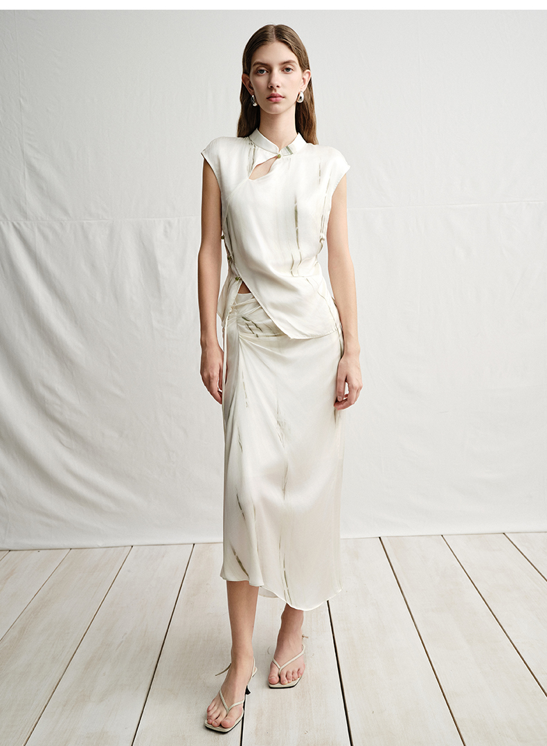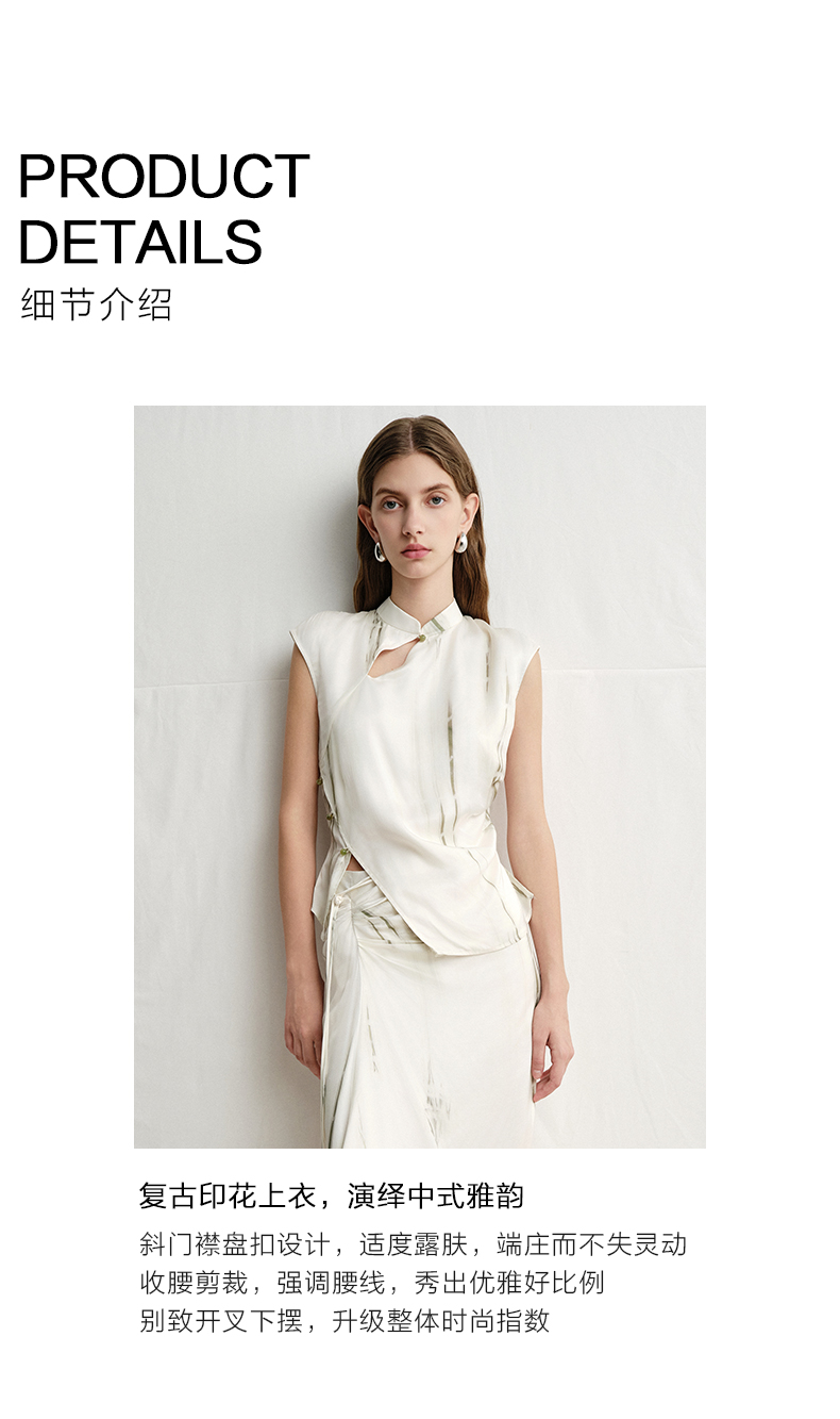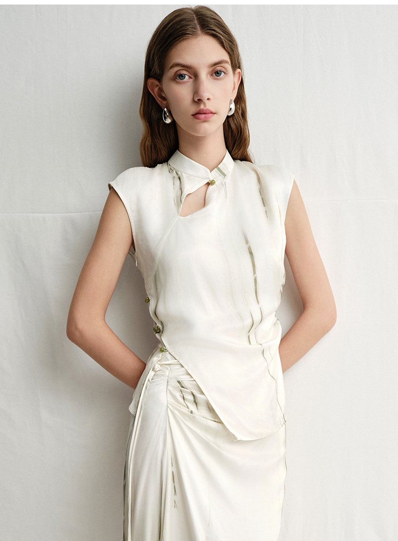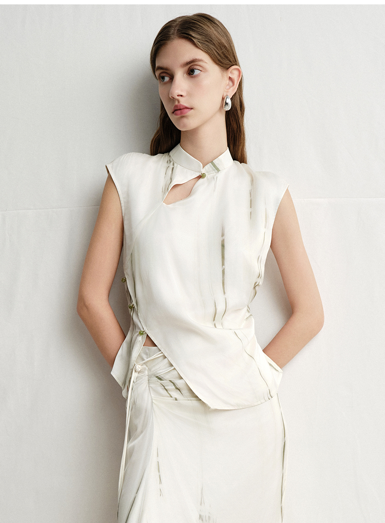 VIMAGE纬漫纪新中式温婉短袖浅绿竹韵印花衬衣女上衣2025夏季新款V2313937