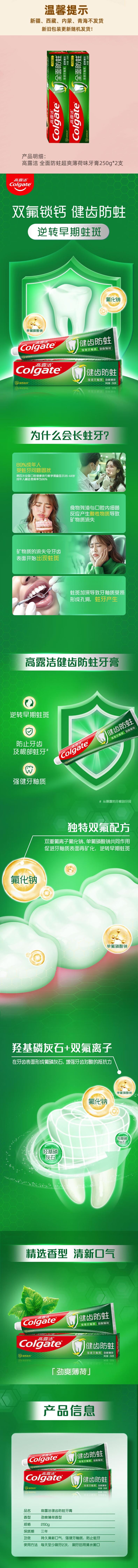 高露洁 全面防蛀超爽薄荷味牙膏250g*2支 G0JCB2502