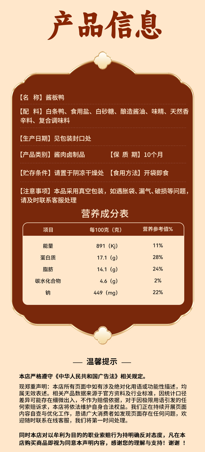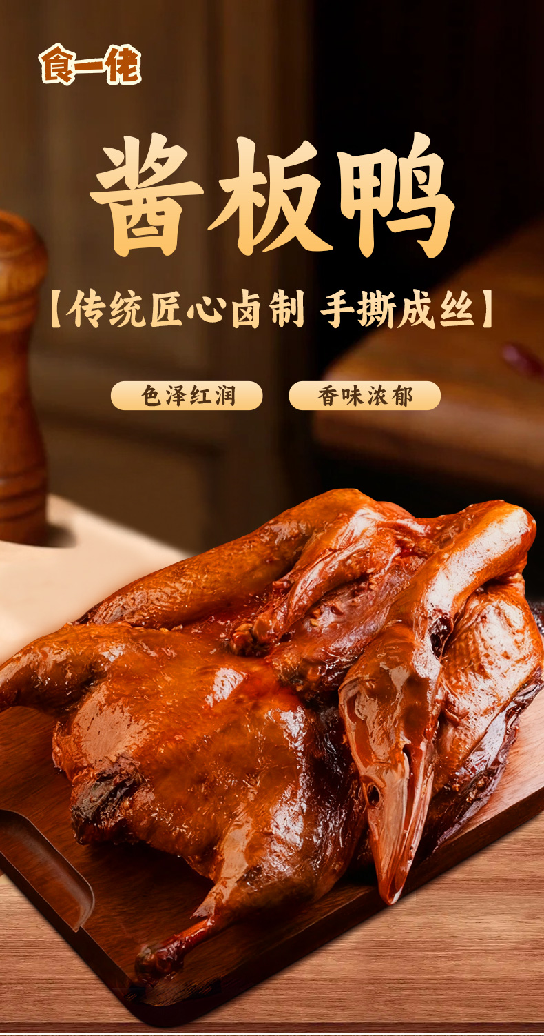 【酱香浓郁 下酒好菜 配料表干净】食一佬酱板鸭450g*2只