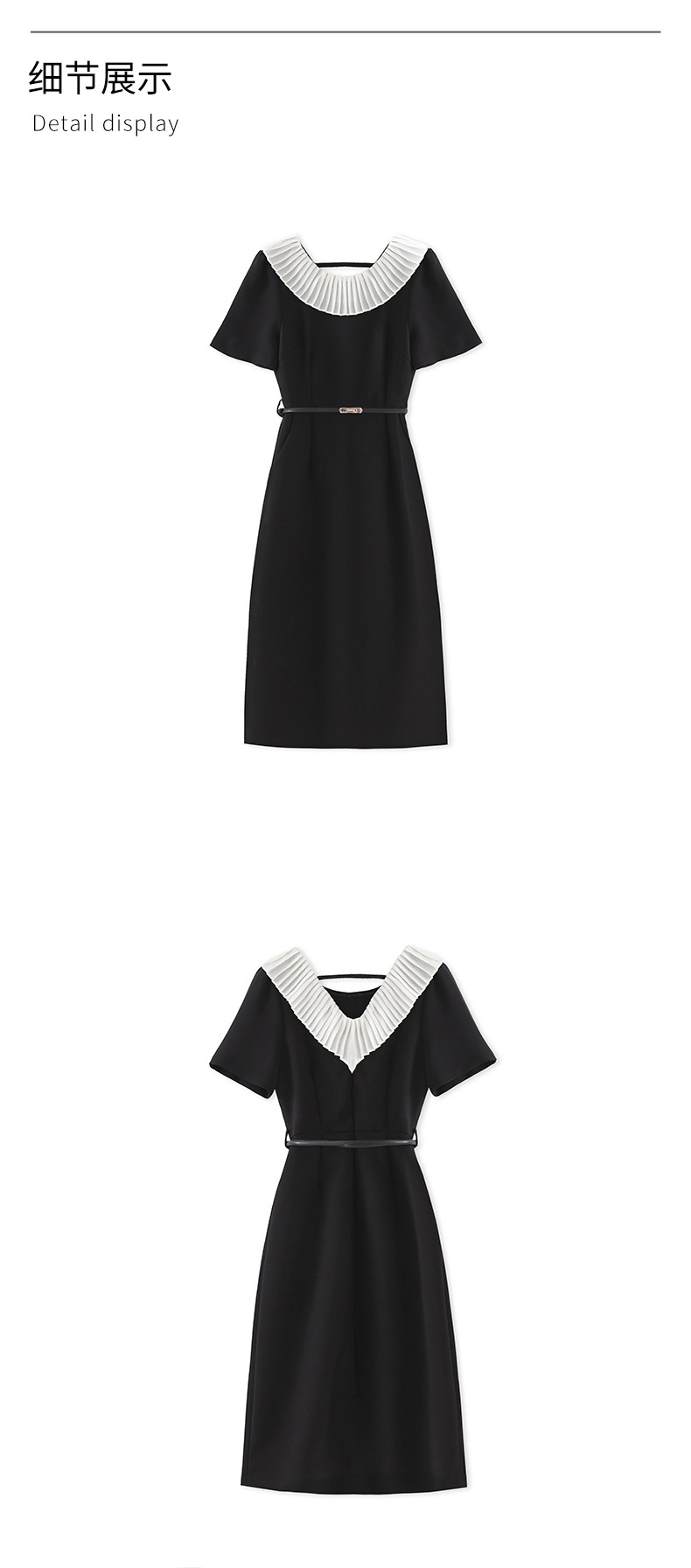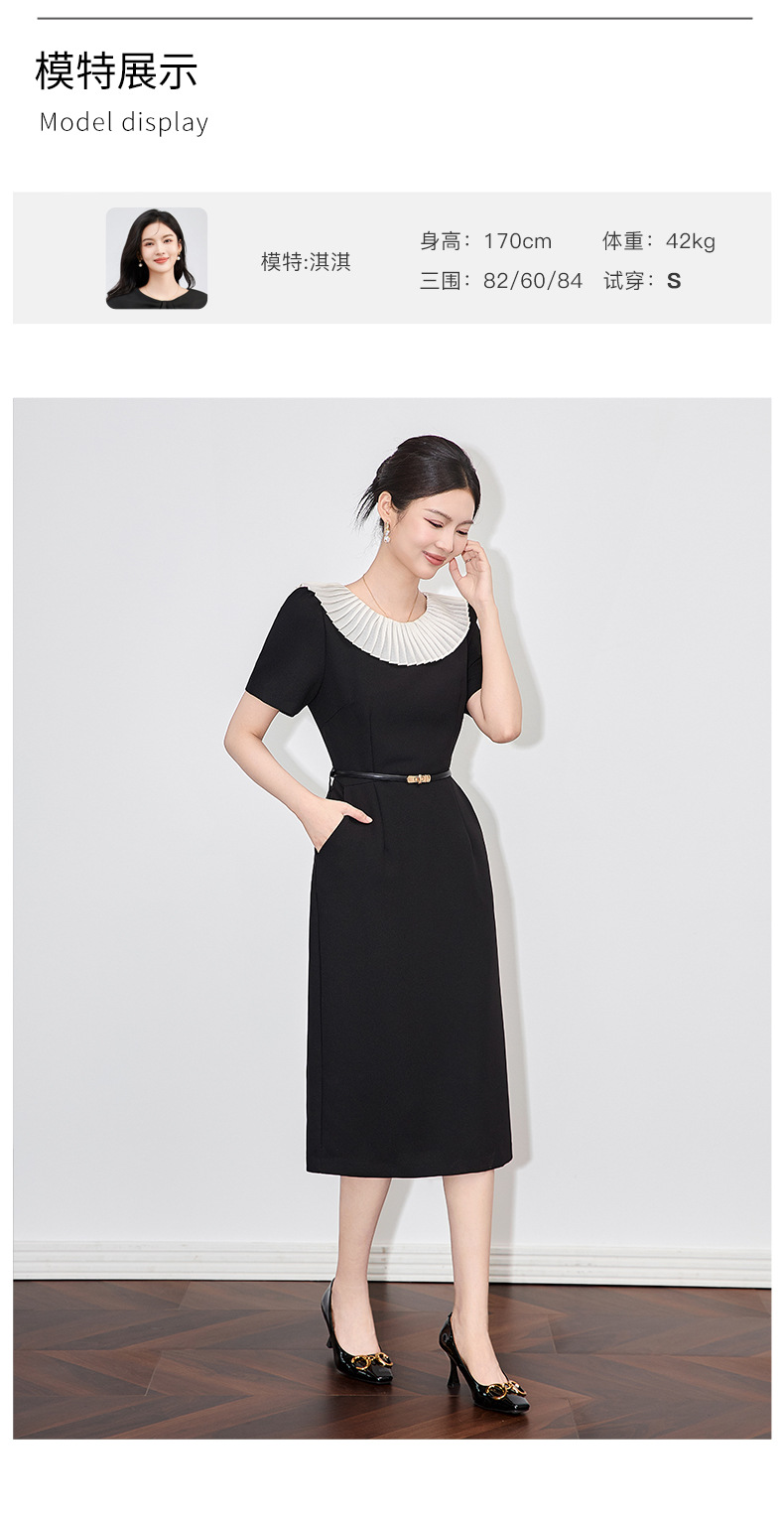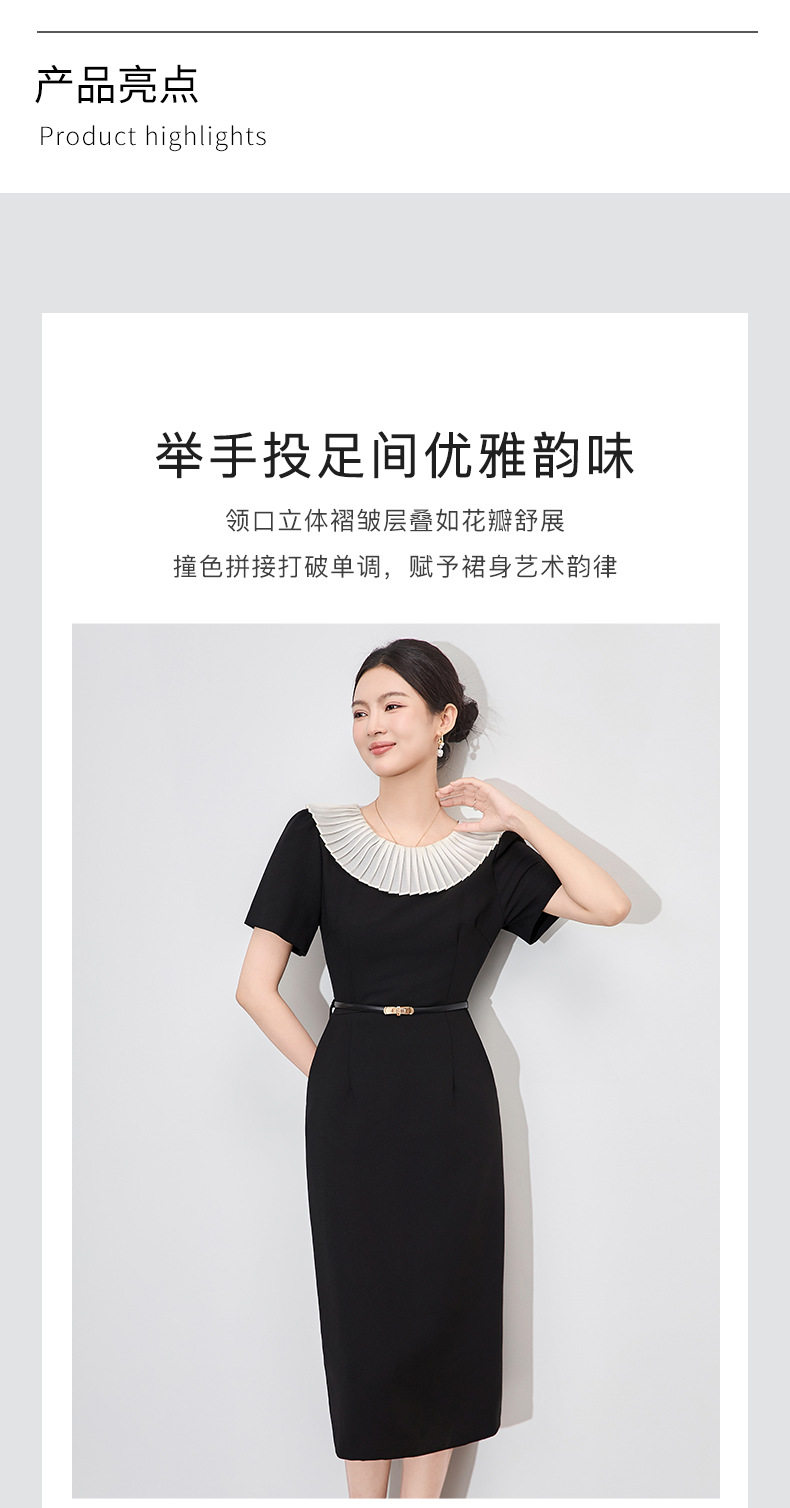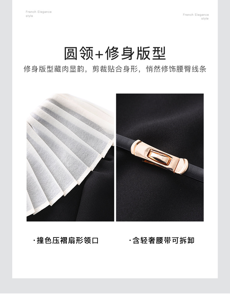 「高货wl」全新升级【铂金会员330/天猫439/差价109】(04957)洛诗琳高级感撞色褶皱花边连衣裙2025收腰时尚气质系带裙