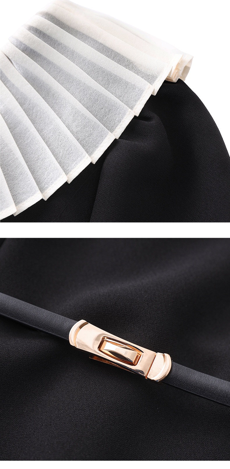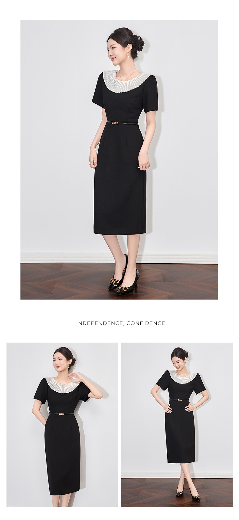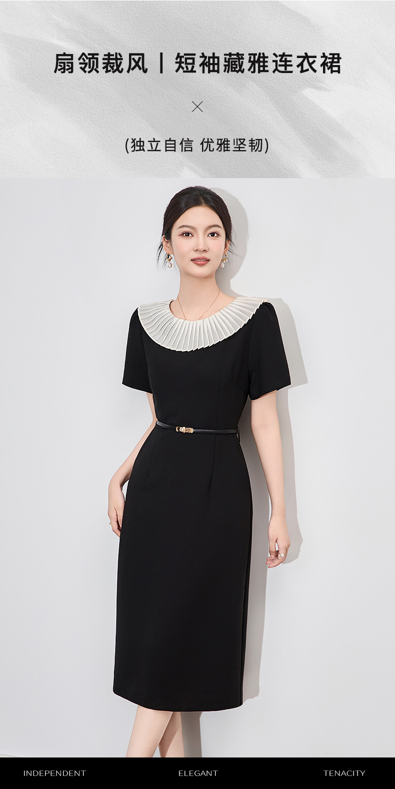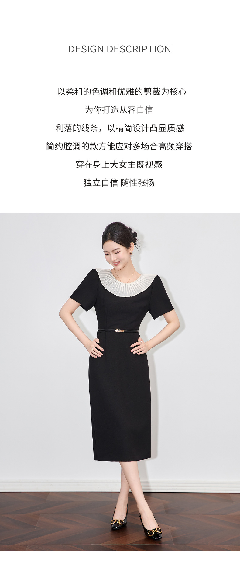 「高货wl」全新升级【铂金会员330/天猫439/差价109】(04957)洛诗琳高级感撞色褶皱花边连衣裙2025收腰时尚气质系带裙
