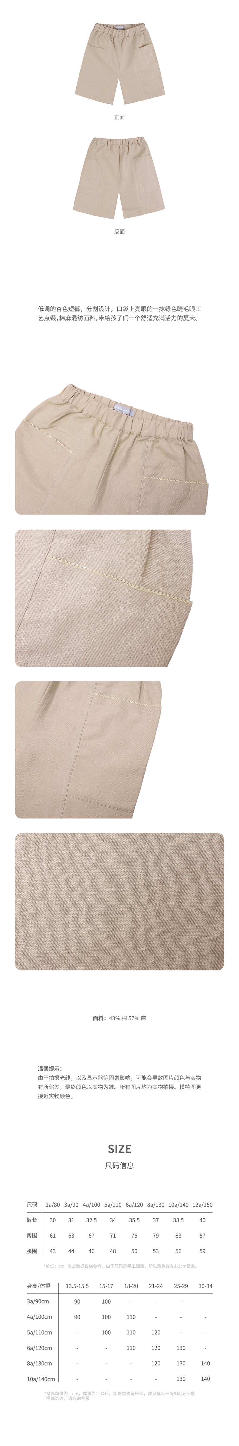 杏色撞色细节短裤