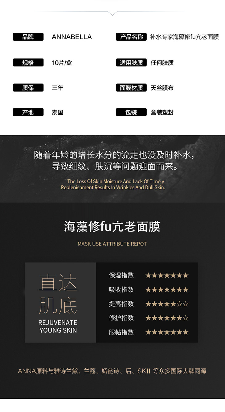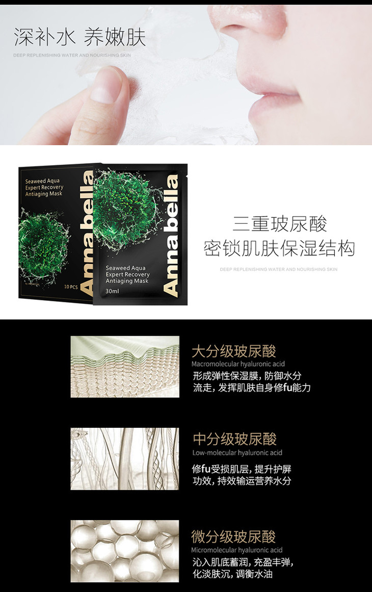 ANNABELLA安娜贝拉海藻蚕丝面膜- 黑金版(100345)(100026)