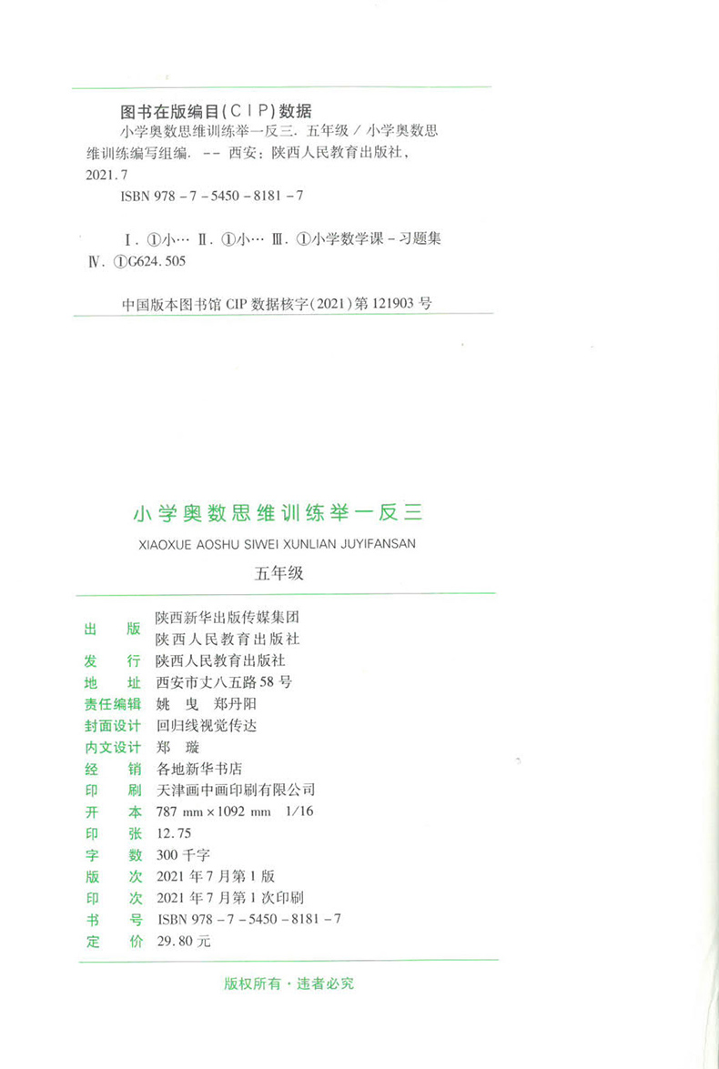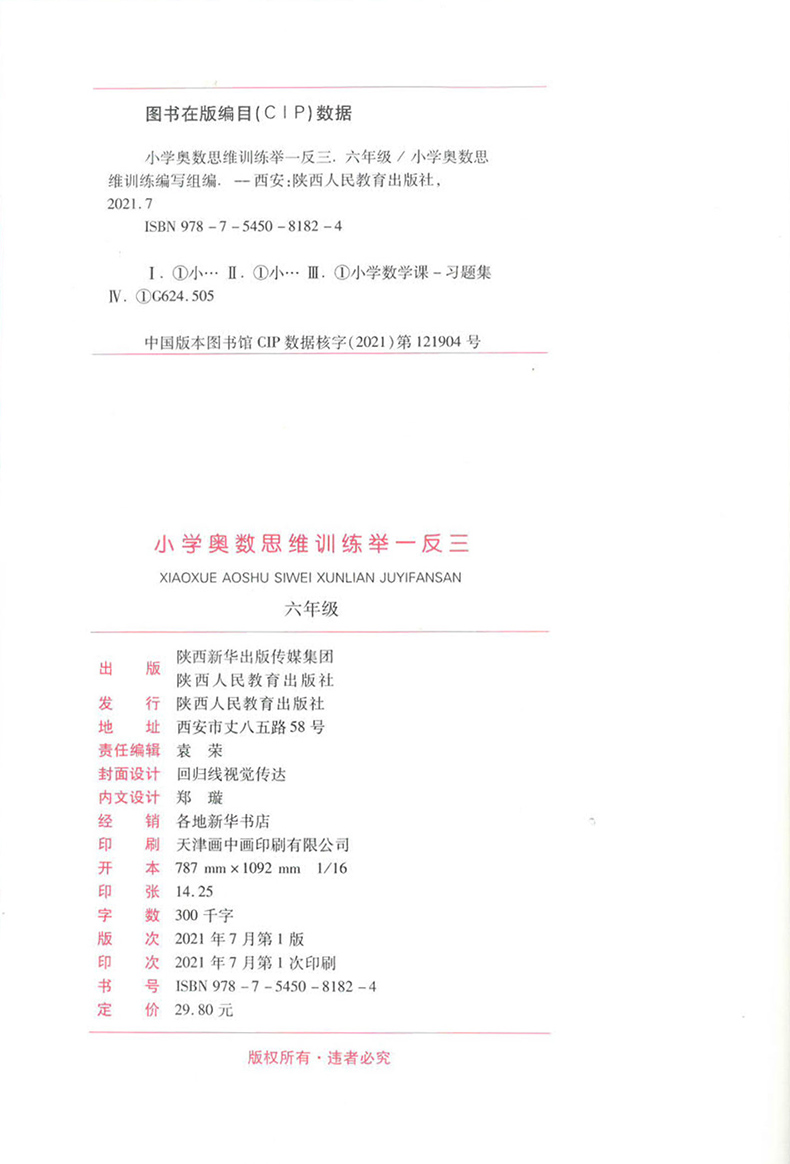小学奥数思维训练举一反三 1-6年级