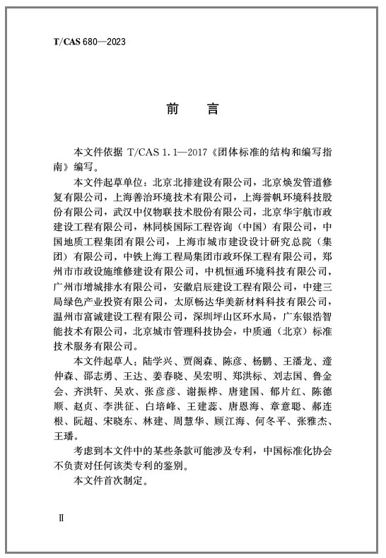 书名:排水管道非开挖局部修复工程技术规程T/CAS 680—2023