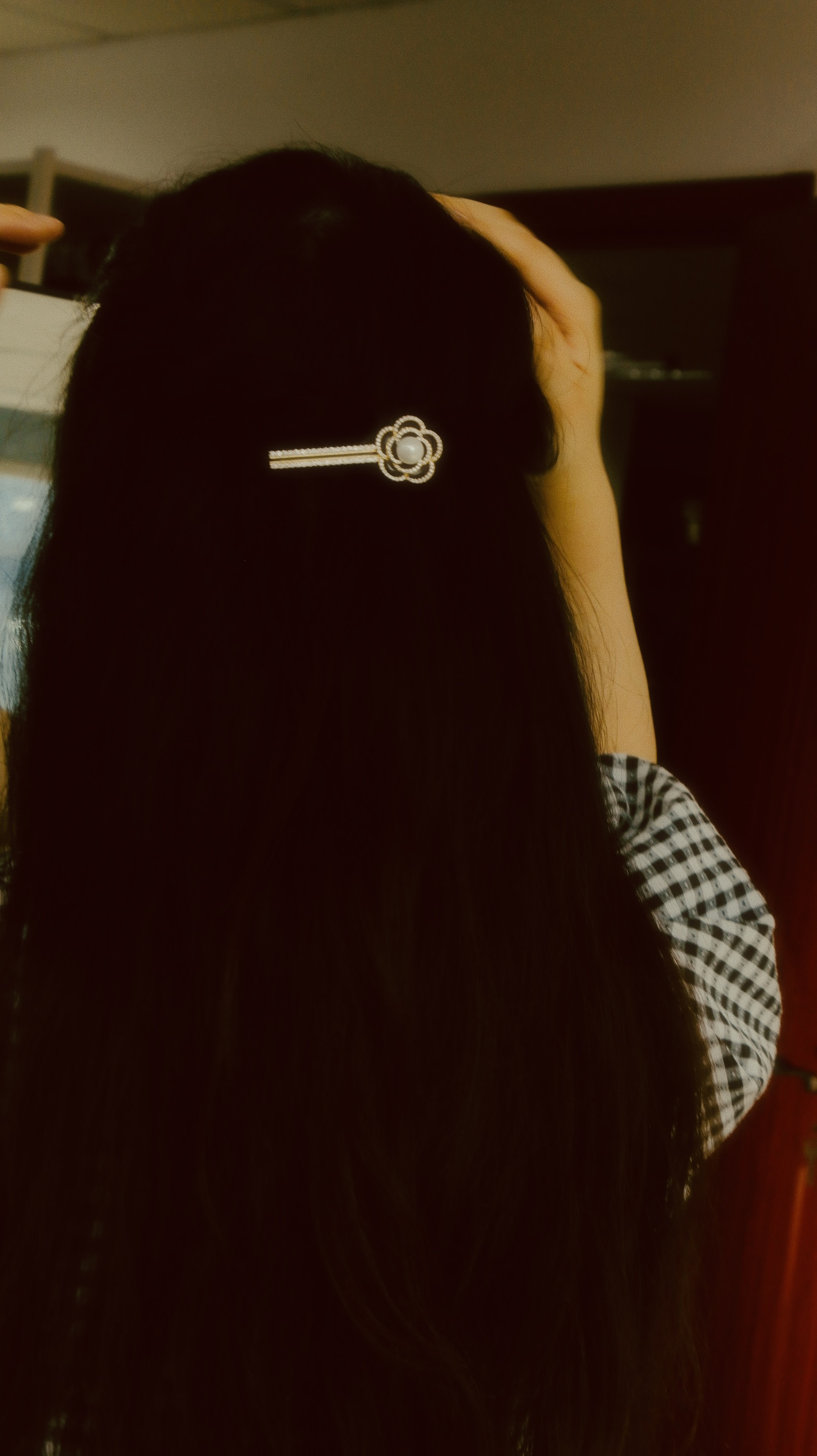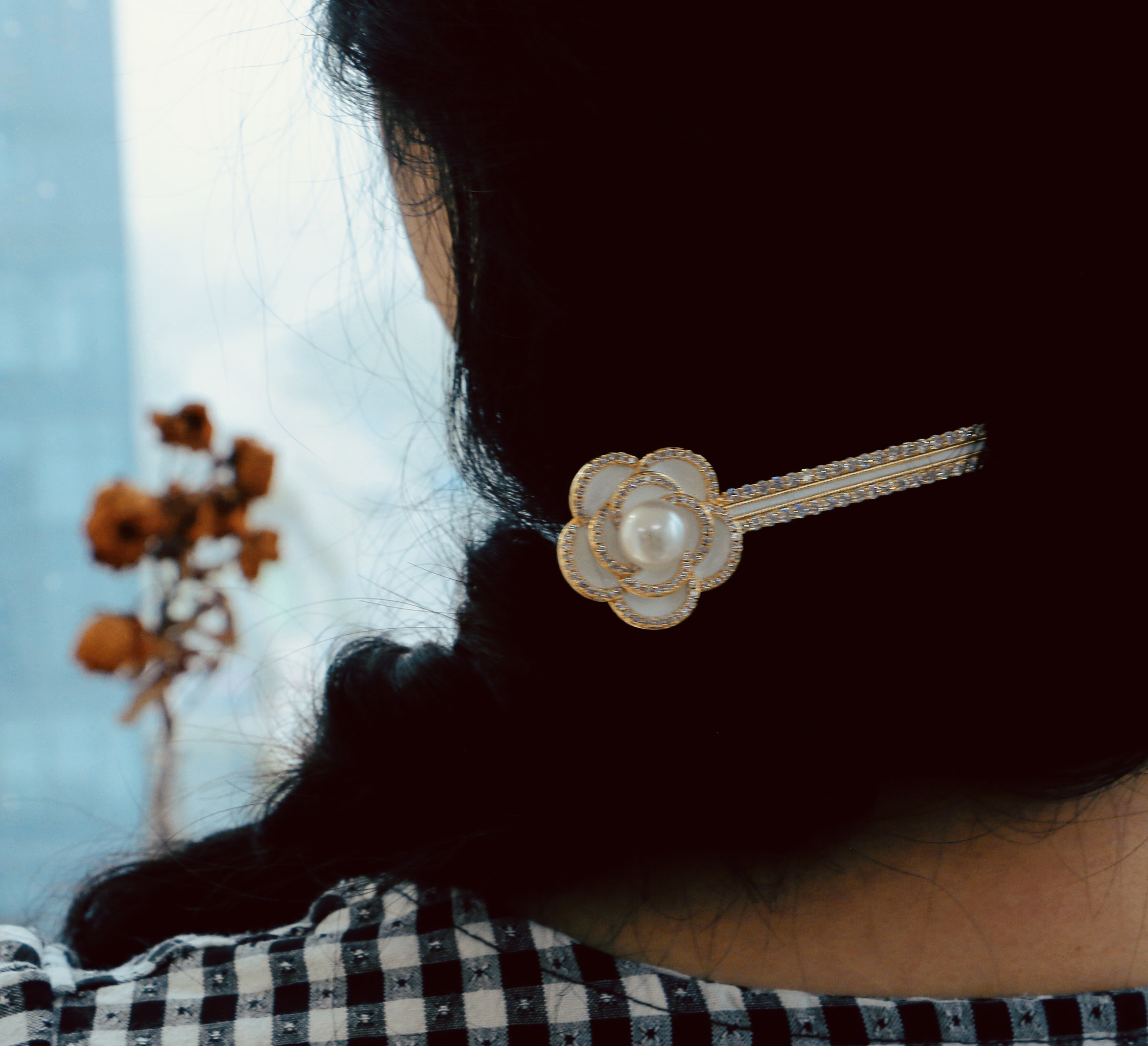 做工很精致的哦,除了发夹,也可以做胸针,夹在衣角,或者夹在帽子上。这个很紧的哦,做工很漂亮,不会掉,我们还用了真的珍珠,这种质感真的是假珍珠无法媲美的。