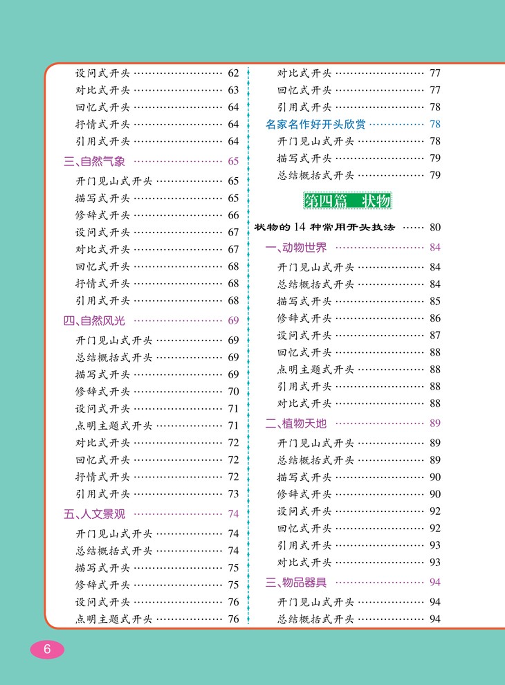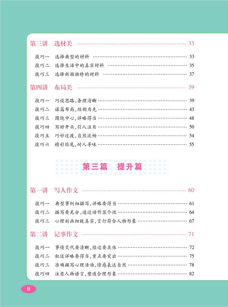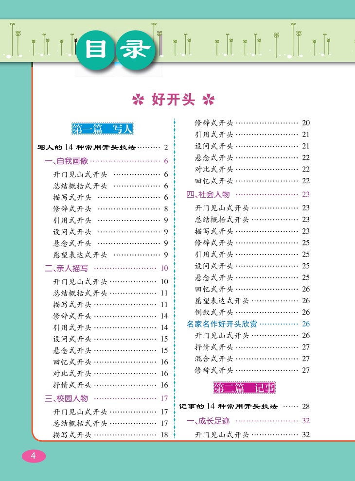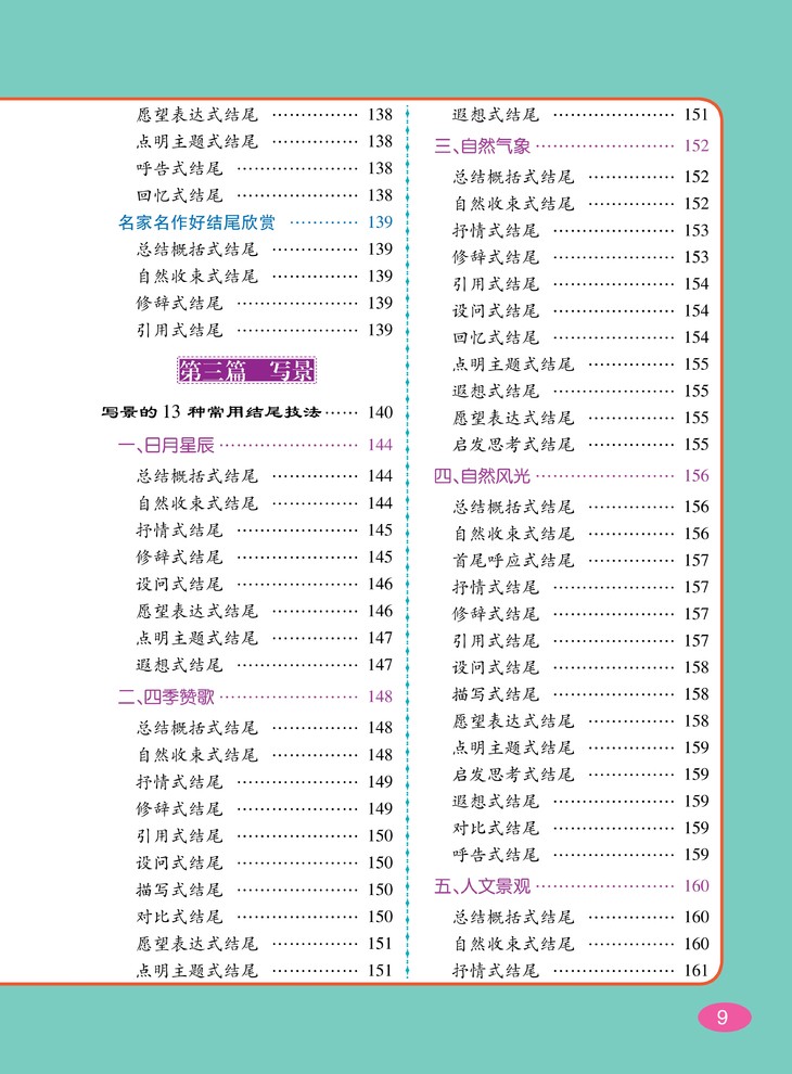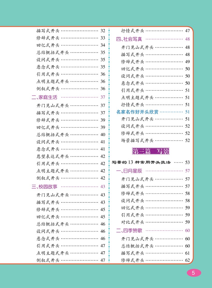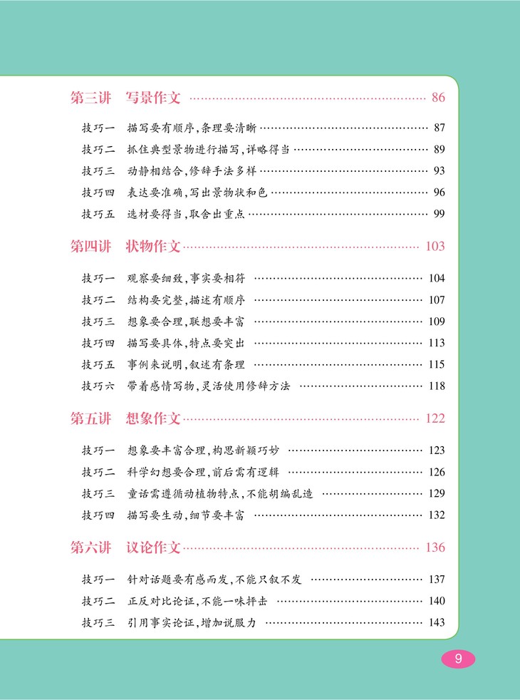 针对各类写作对象进行技法总结,大量优秀作文、名家名作的好开头与好结尾示