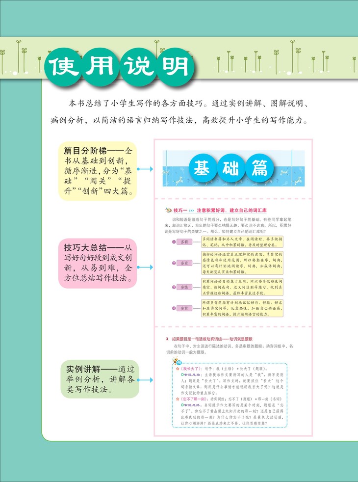 图解写作技巧,归纳写作常用好词好句好段,精选名家手笔示例指导。