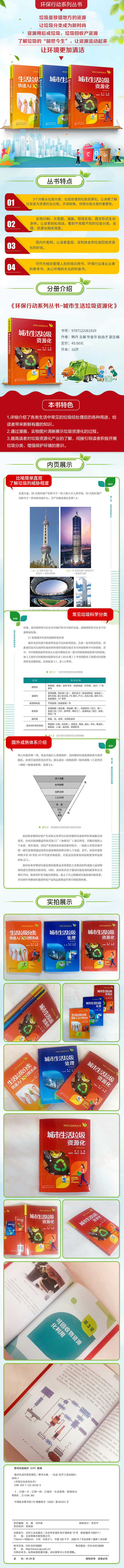 本书共5章,以通俗易懂、循序渐进的方式和图文并茂的形式,首先为读者介绍了我们日常生活中各类生活垃圾的外观、产生量,带读者认识各类废弃物的危害及其理化特性。然后重点介绍了不同种类生活垃圾资源化利用的工艺。例如日常生活中其他垃圾通过焚烧发电转变成热量和电能,厨余垃圾通过资源化转变成肥料,不同种类可回收物通过资源化处理变成多种多样的工艺品、再生品、新产品。同时通过介绍美国、德国、日本等发达国家的一些废弃物资源化实例,让读者足不出户就能了解国外先进的资源化处理技术。在了解国外先进处理技术之后,本书着重介绍了我国的再生资源处理技术发展、我国处理技术的开创性及发展现状。本书通过列举国内外一些新颖的生活垃圾资源化案例,给读者带来新鲜、脑洞大开的体验,旨在让读者了解不同类型生活垃圾如何再生循环利用,对公众参与垃圾分类、提升生活垃圾分类积极性有着正面的引导作用。