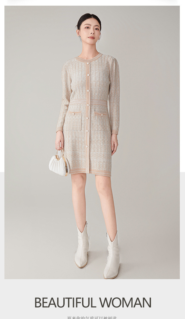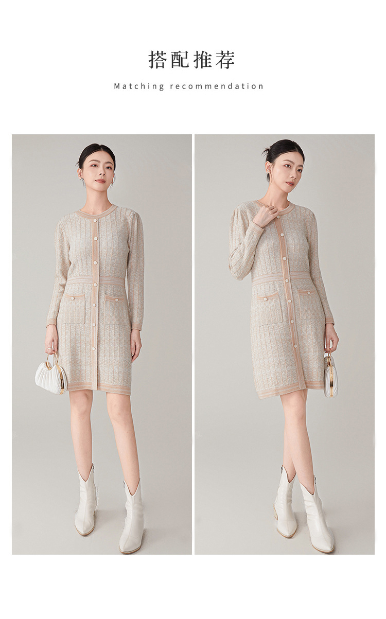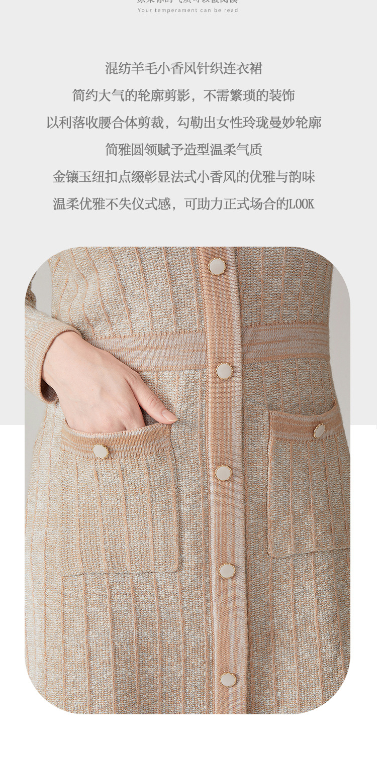 【hrf】全新升级【铂金会员349/天猫469/差价120】(13908) 洛诗琳2024新款法式长袖合适小个子穿搭小香风羊毛连衣裙