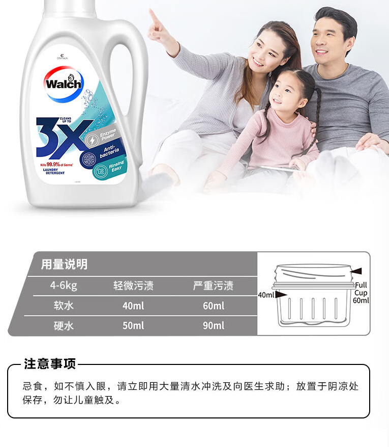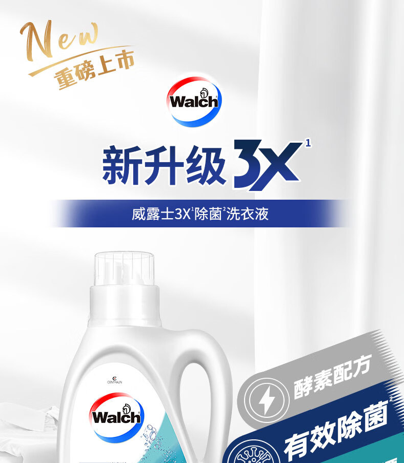 威露士3X除菌洗衣液原味 酵素配方有效除菌99.9% 3L