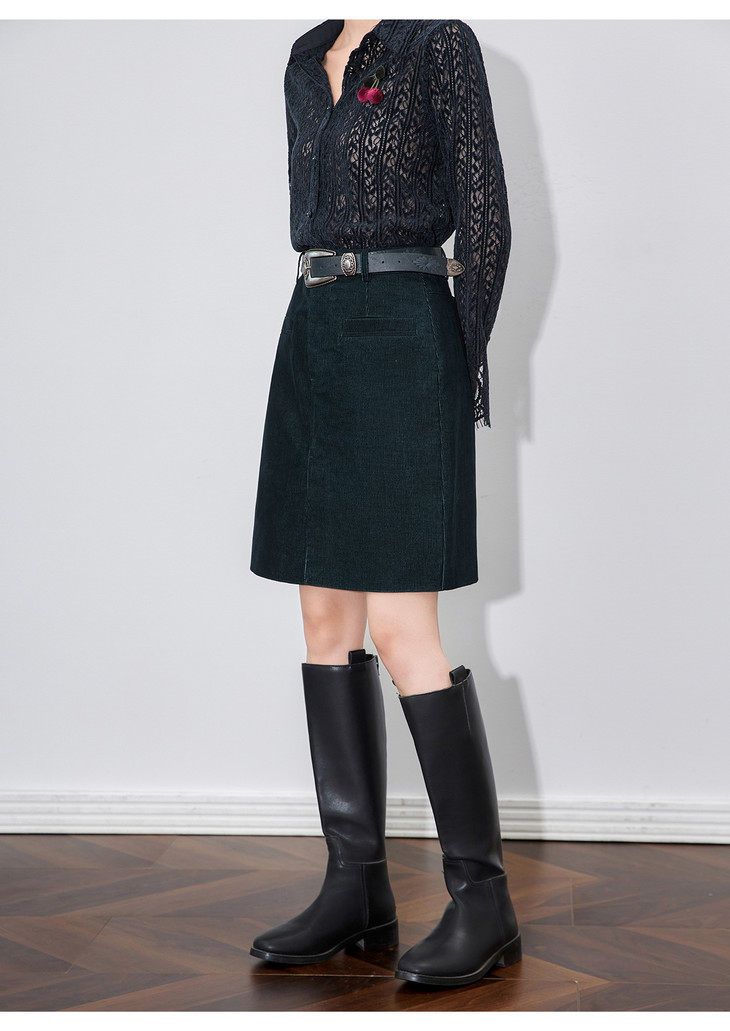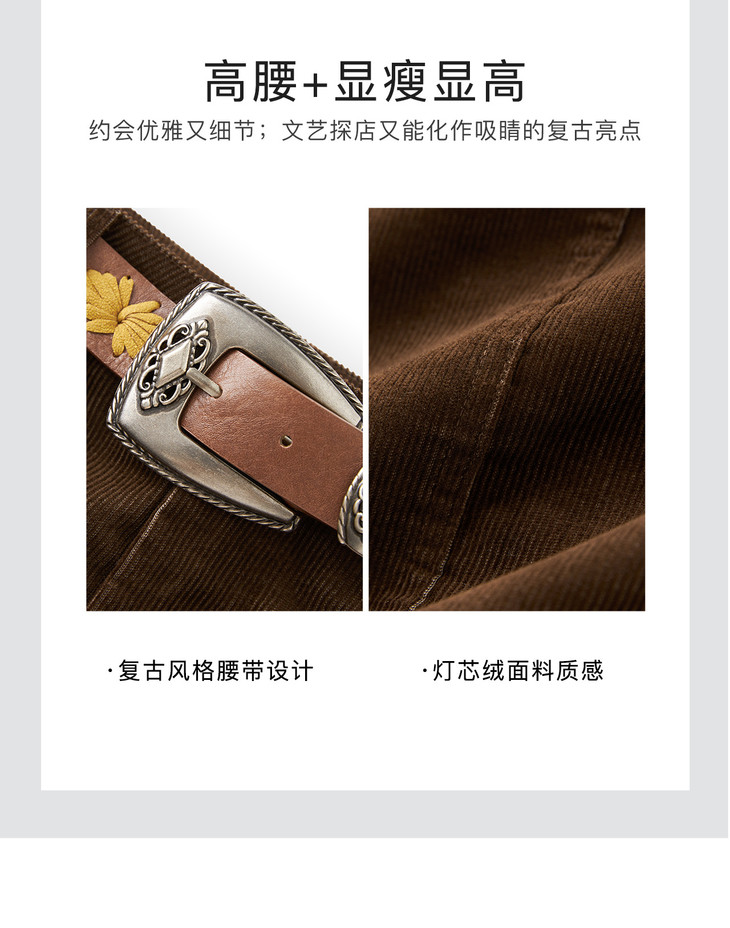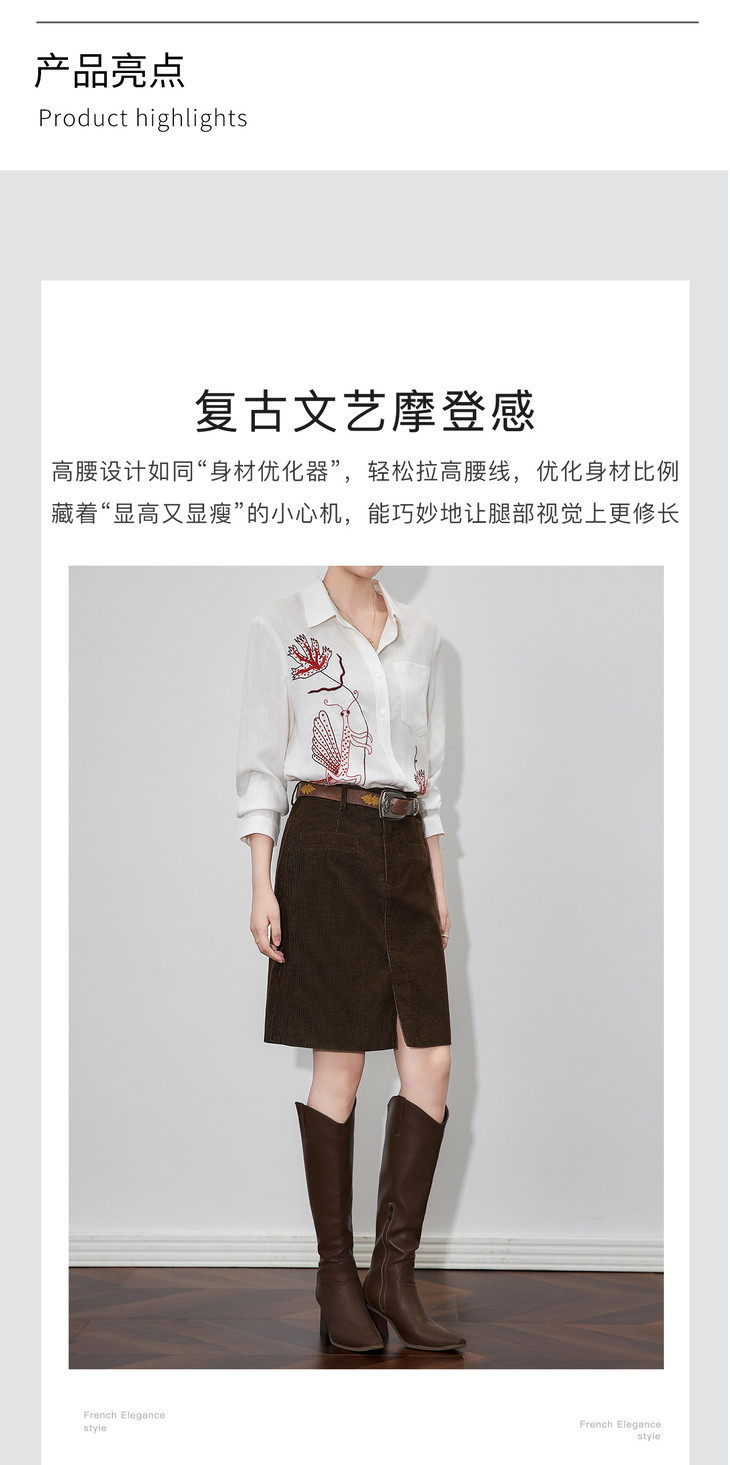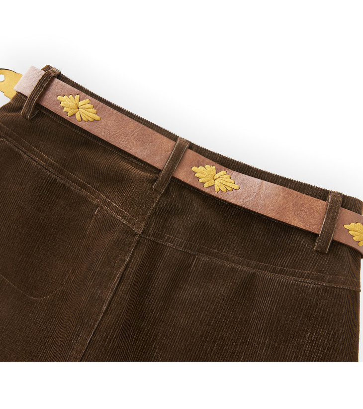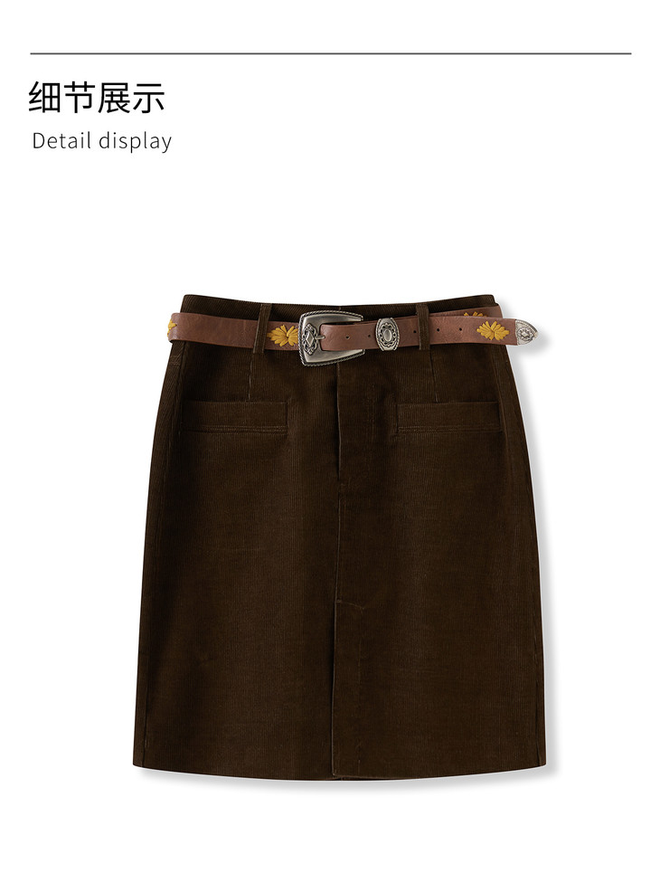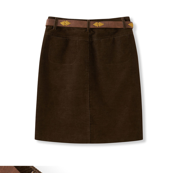摩登复古灯芯绒前开叉半身裙,高腰显瘦配质感皮带WLZD-2512107