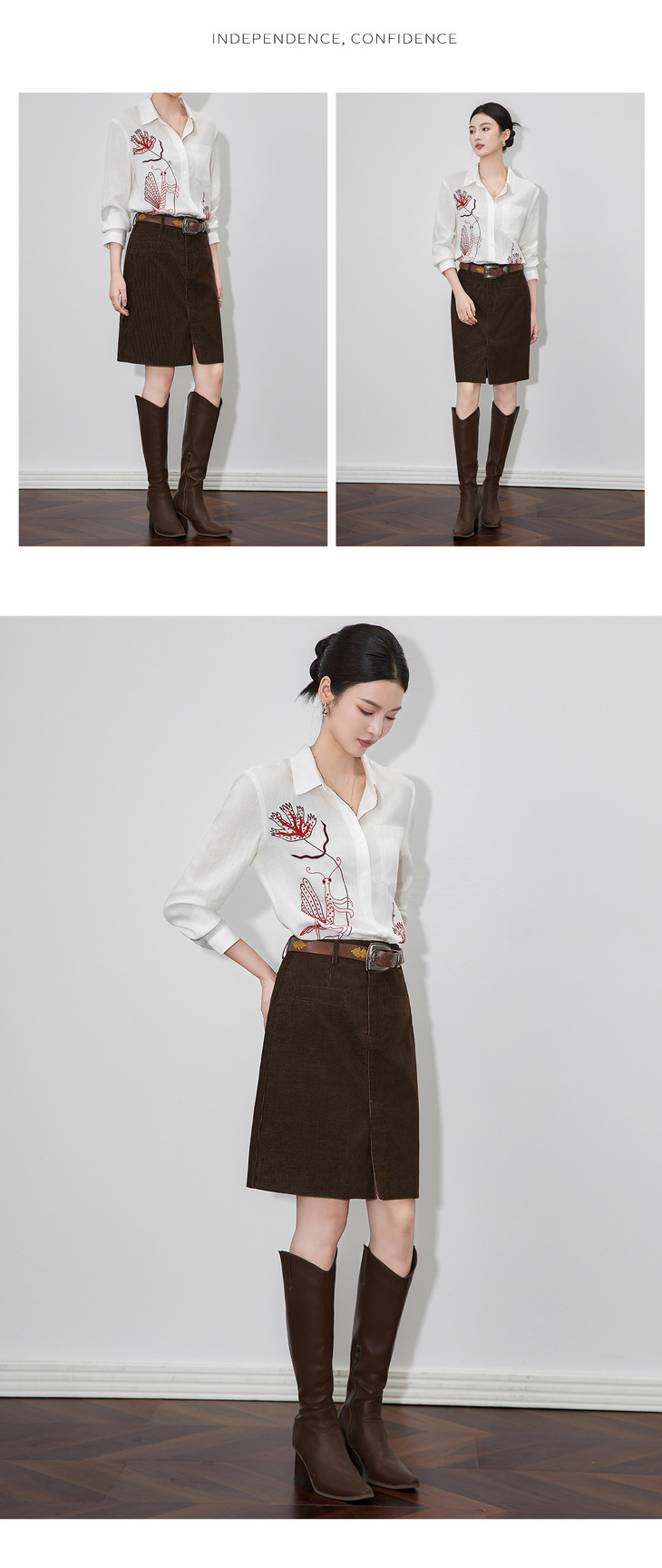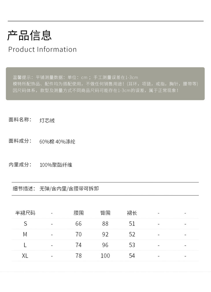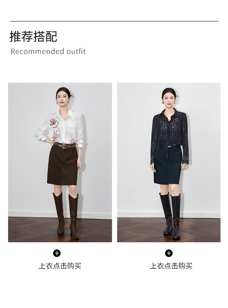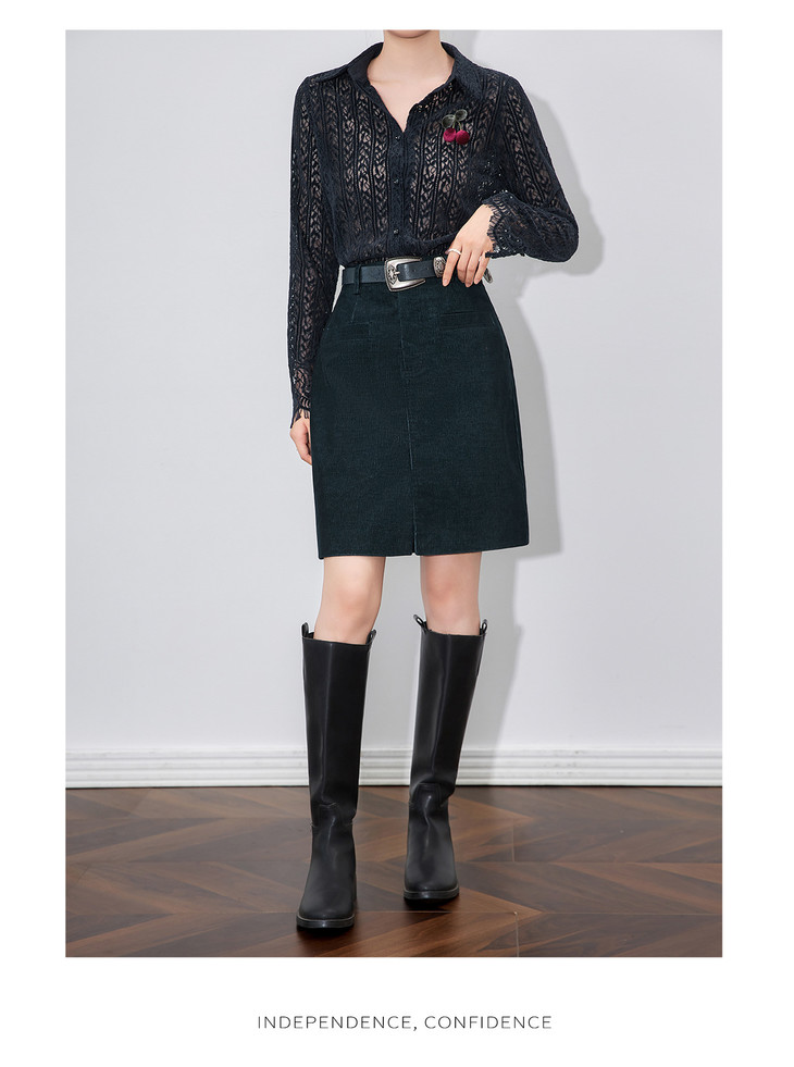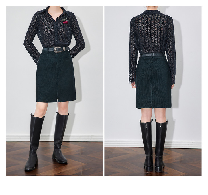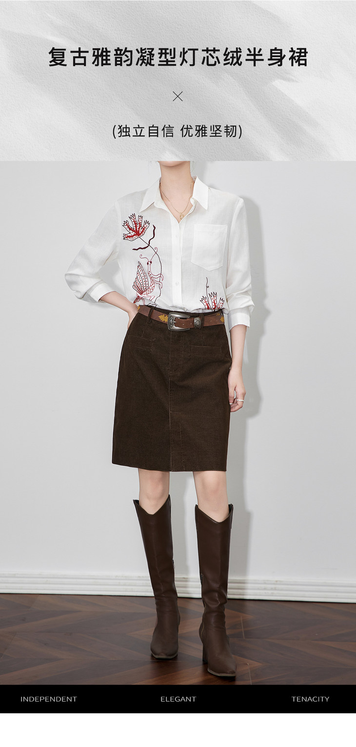 摩登复古灯芯绒前开叉半身裙,高腰显瘦配质感皮带WLZD-2512107