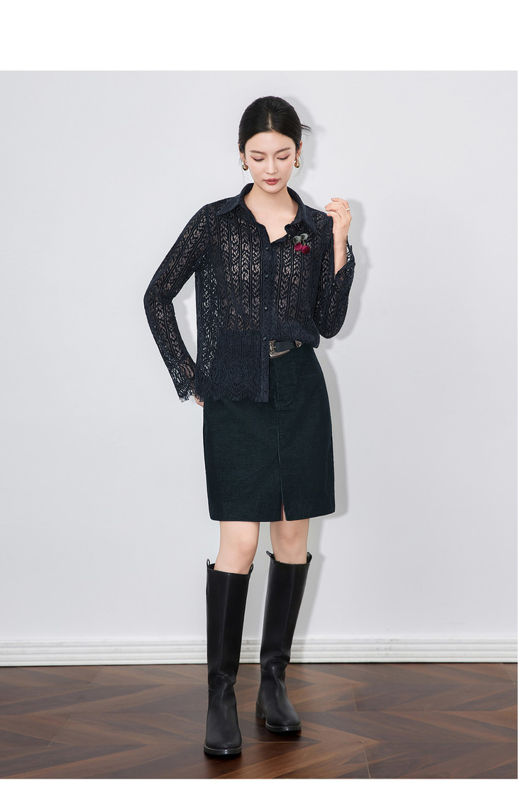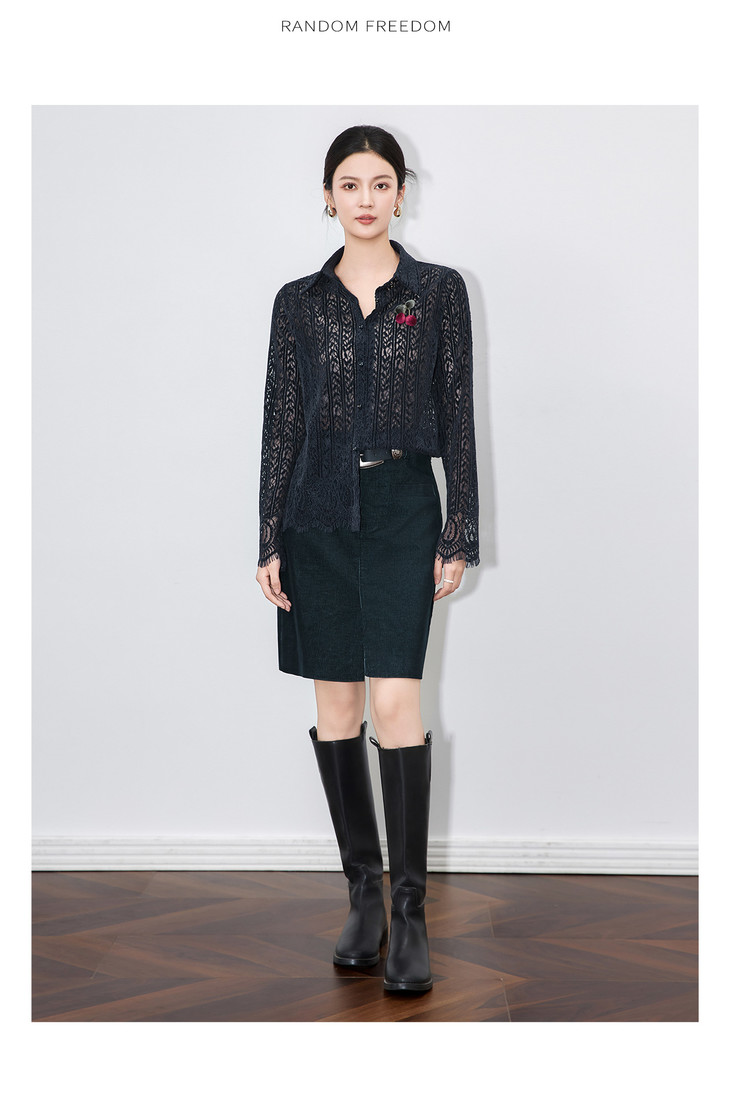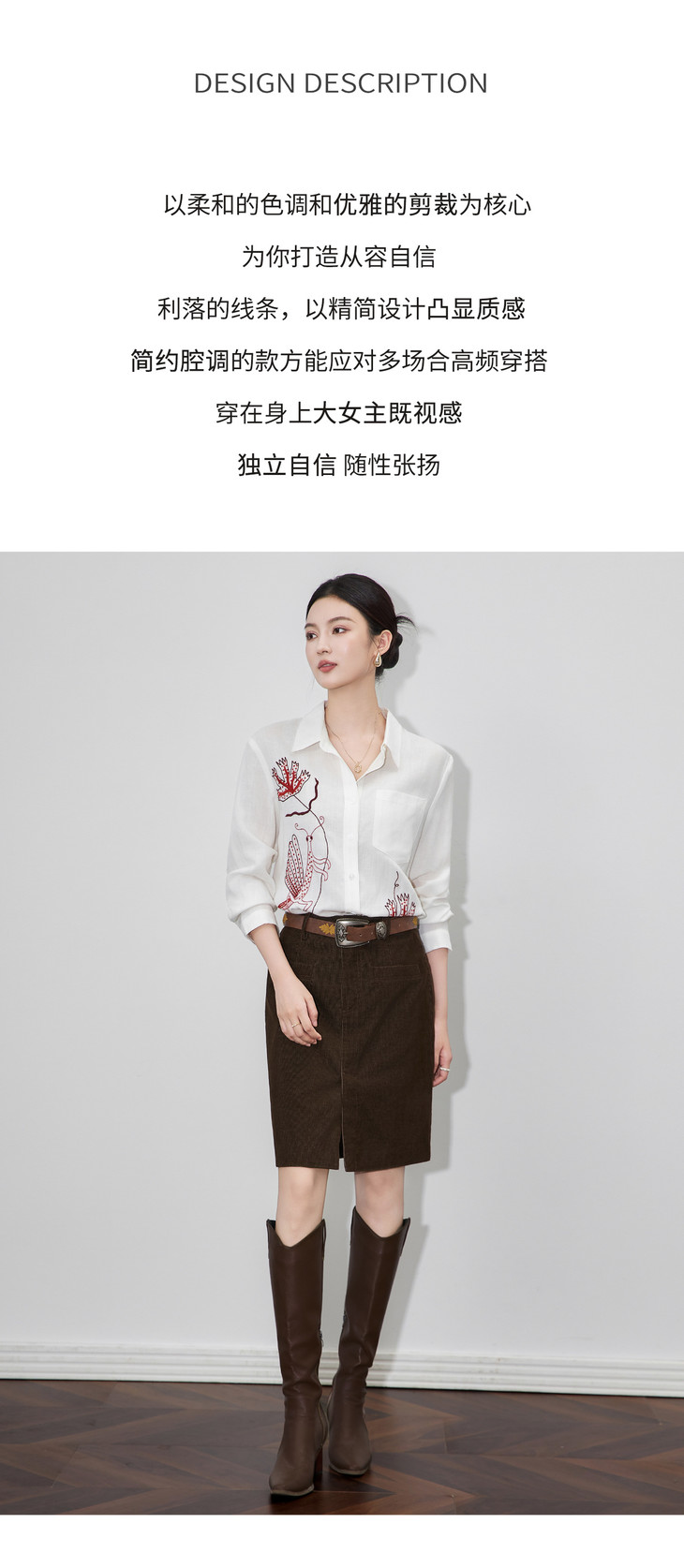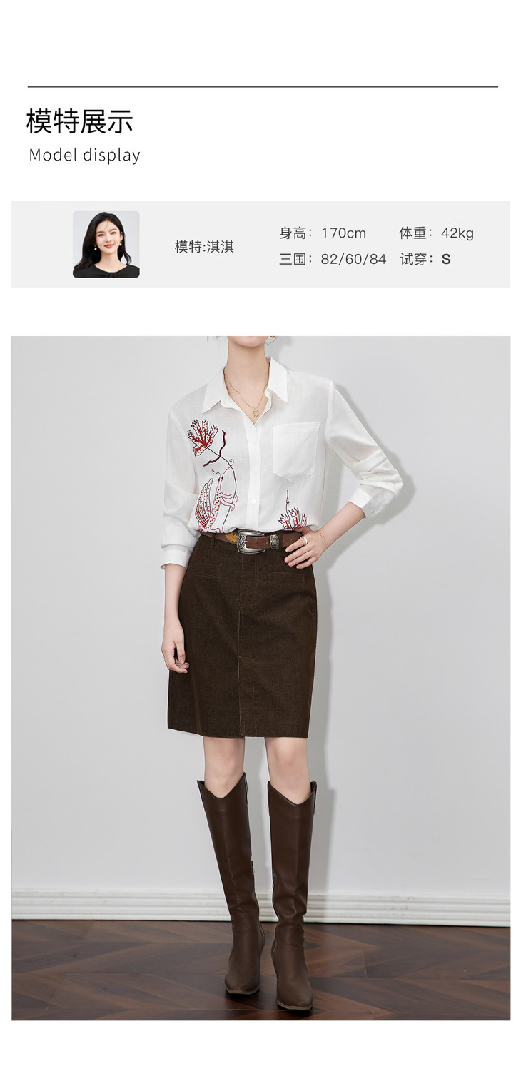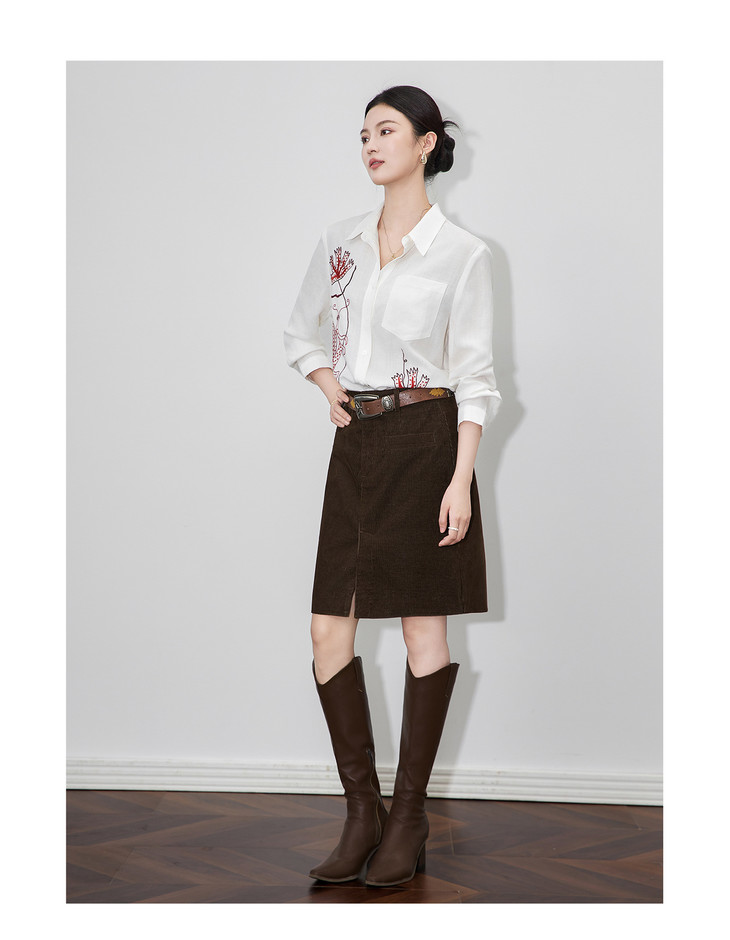 摩登复古灯芯绒前开叉半身裙,高腰显瘦配质感皮带WLZD-2512107