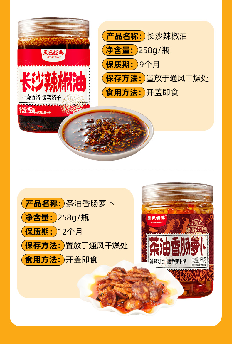 【作废 】长沙辣酱三宝套餐(长沙辣椒萝卜+经典香辣酱+茶油香肠萝卜)258g/瓶*3