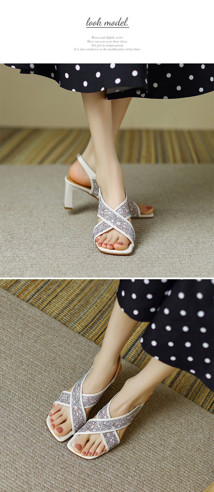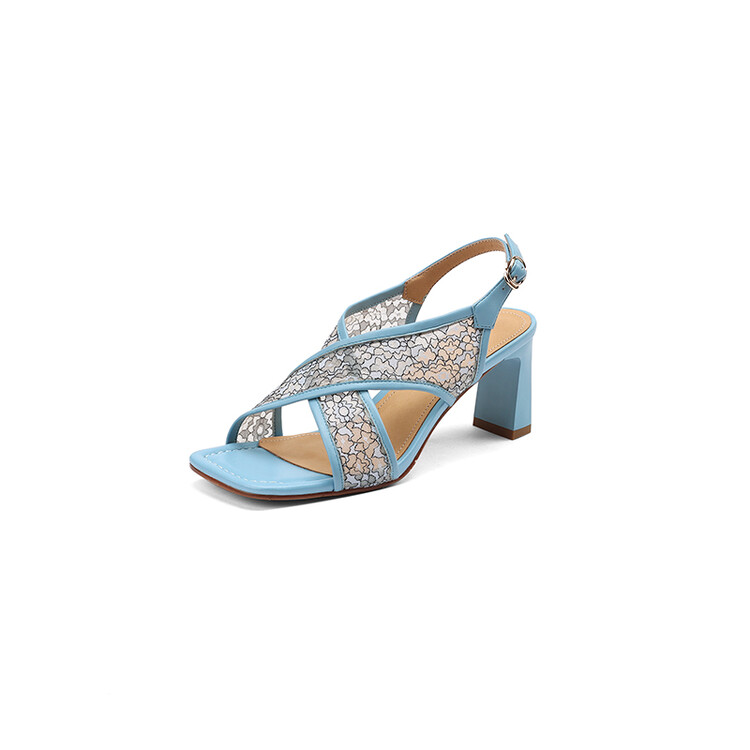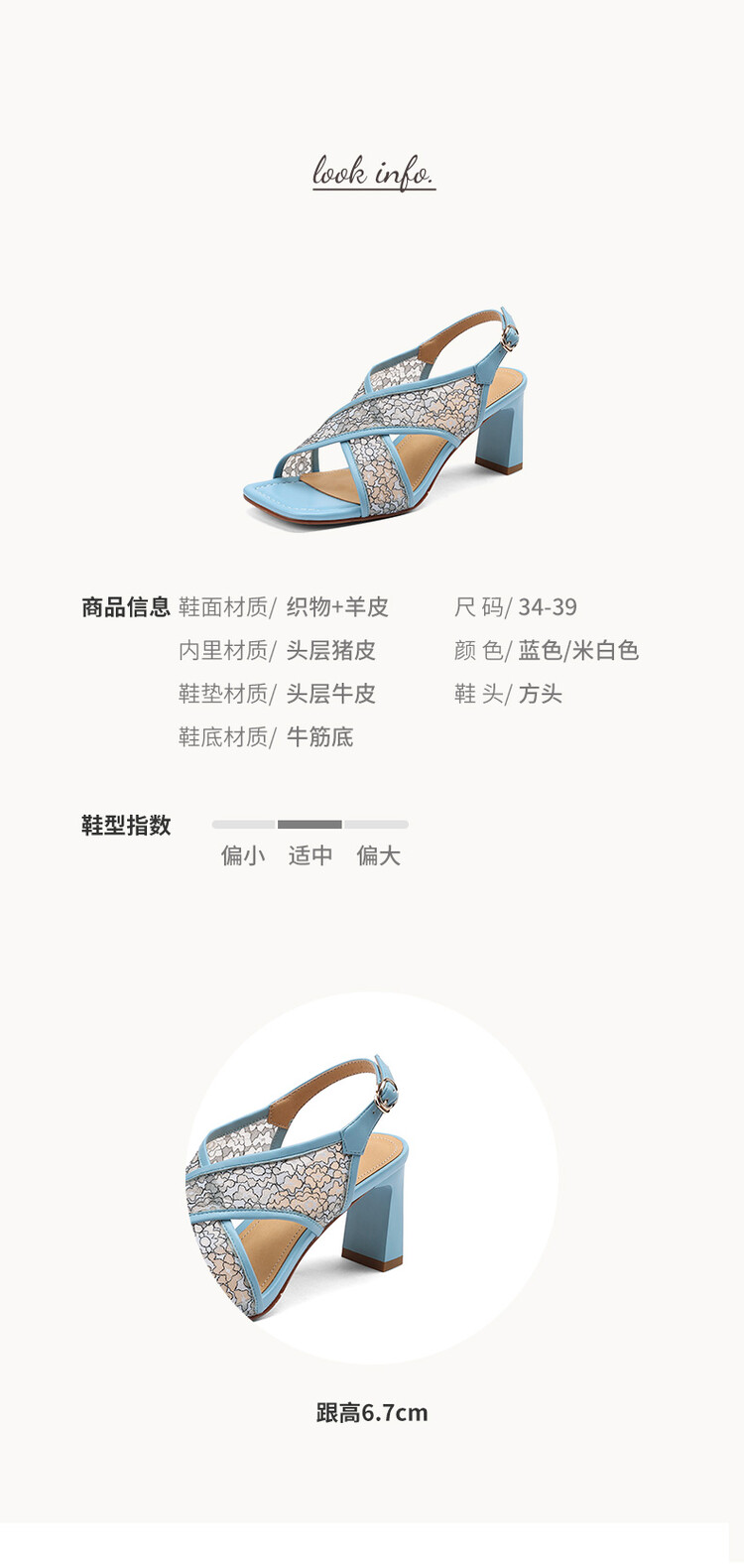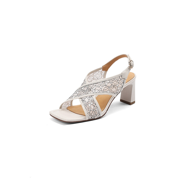 优雅百搭,里外全皮织物拼接高跟凉鞋HBP-3445