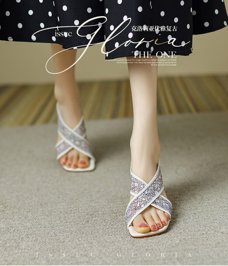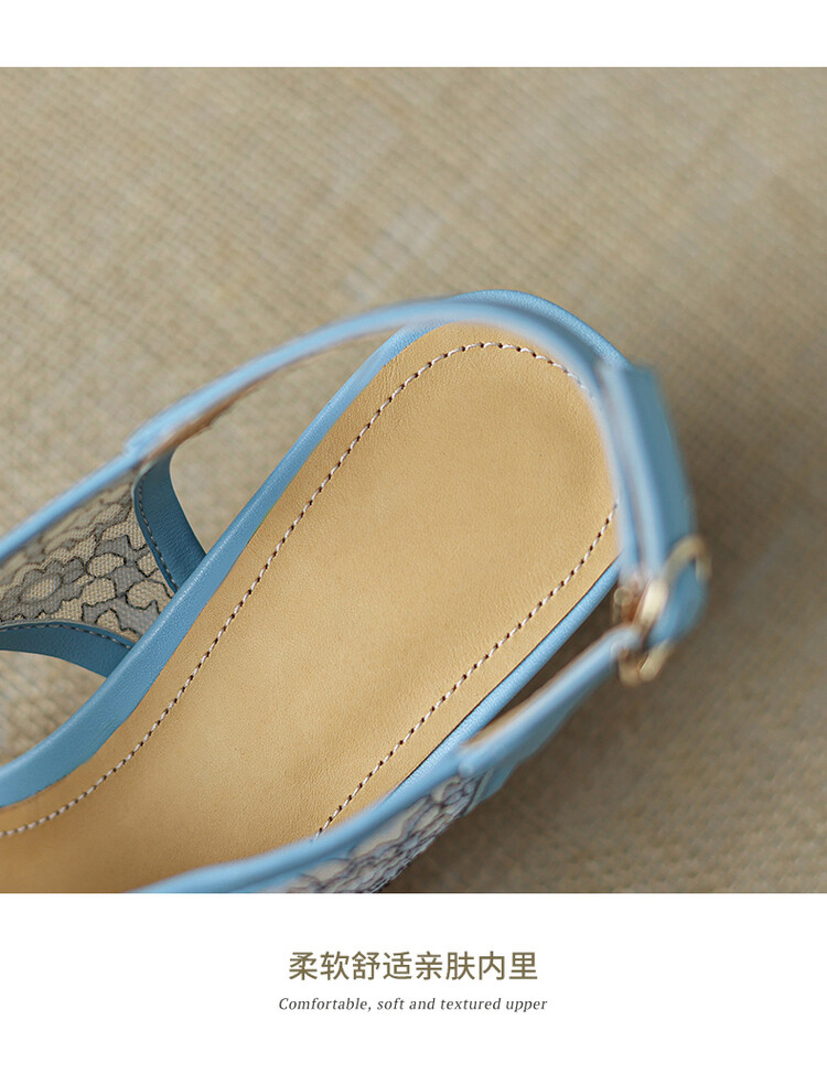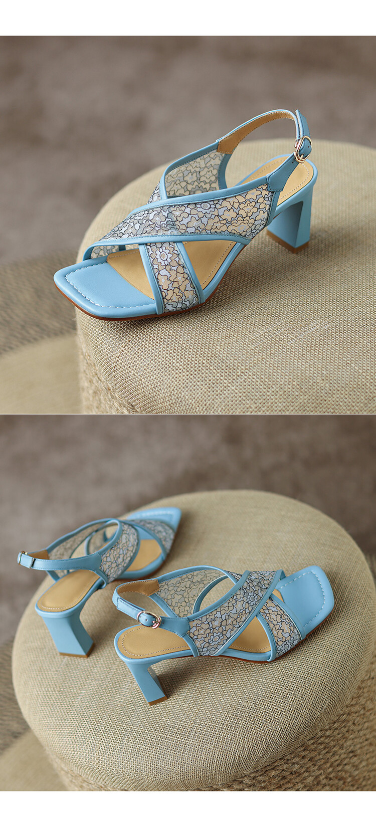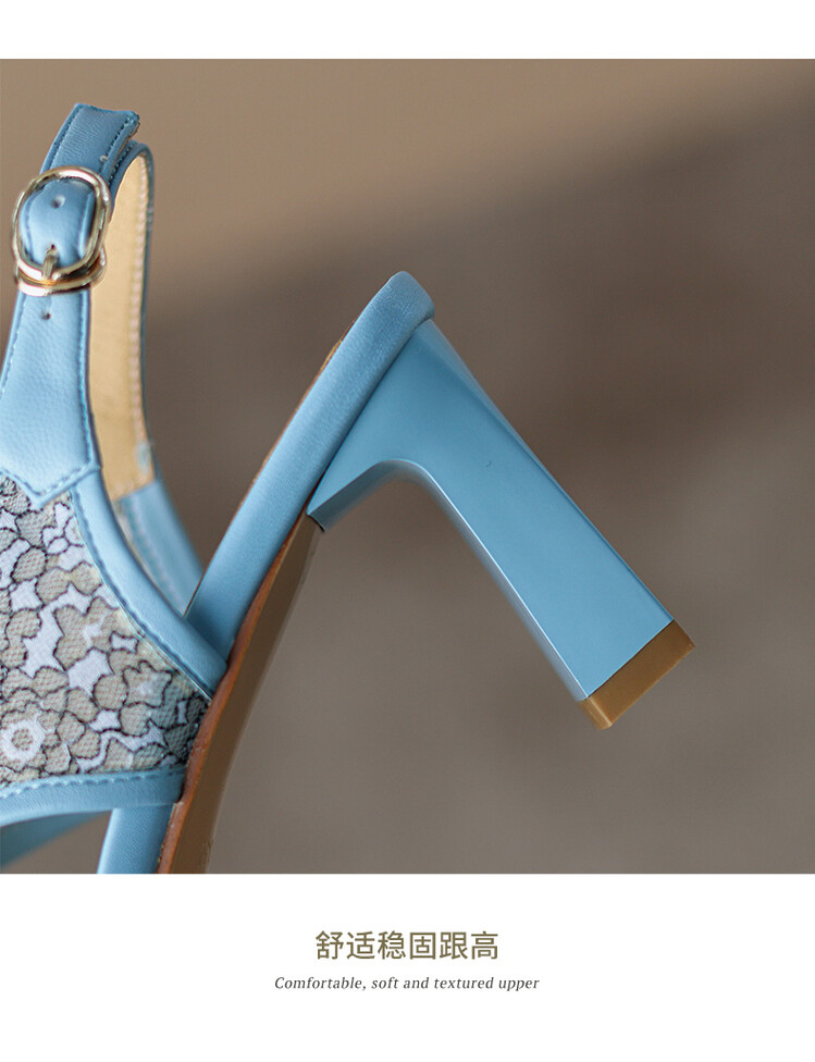优雅百搭,里外全皮织物拼接高跟凉鞋HBP-3445