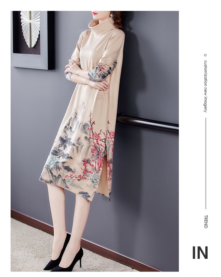 F-PB9052初春新款假两件改良旗袍连衣裙