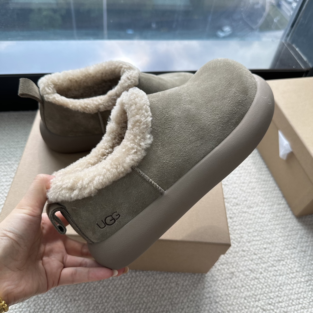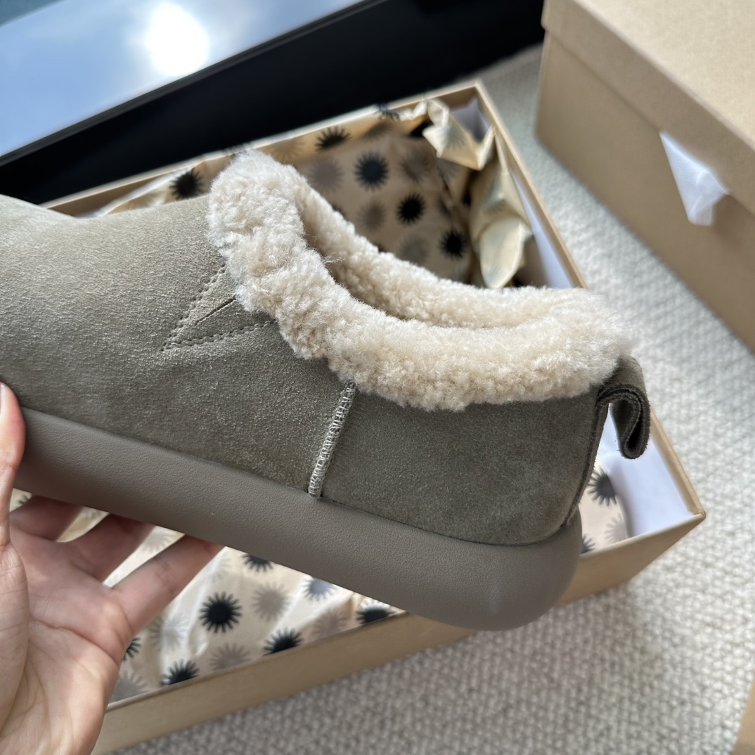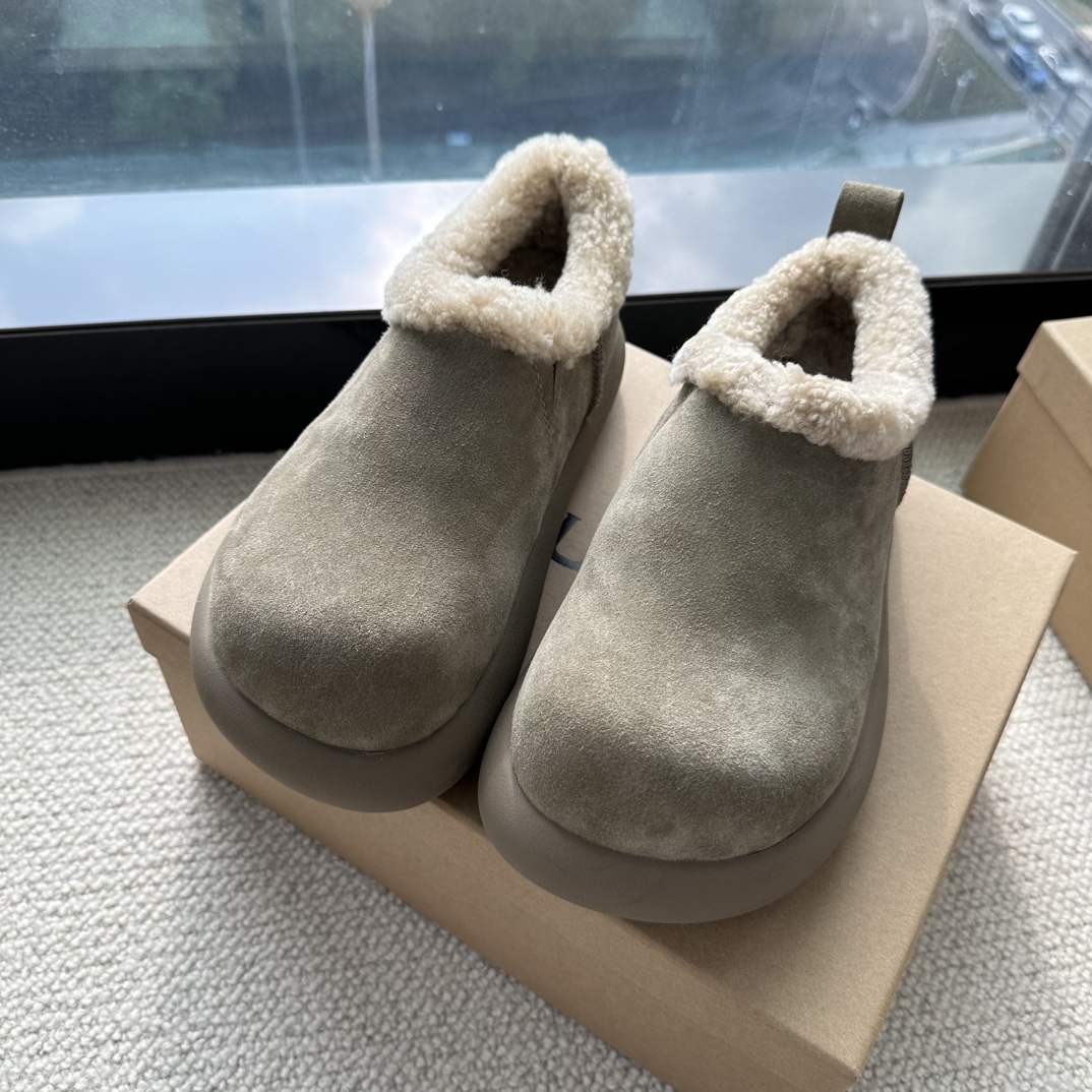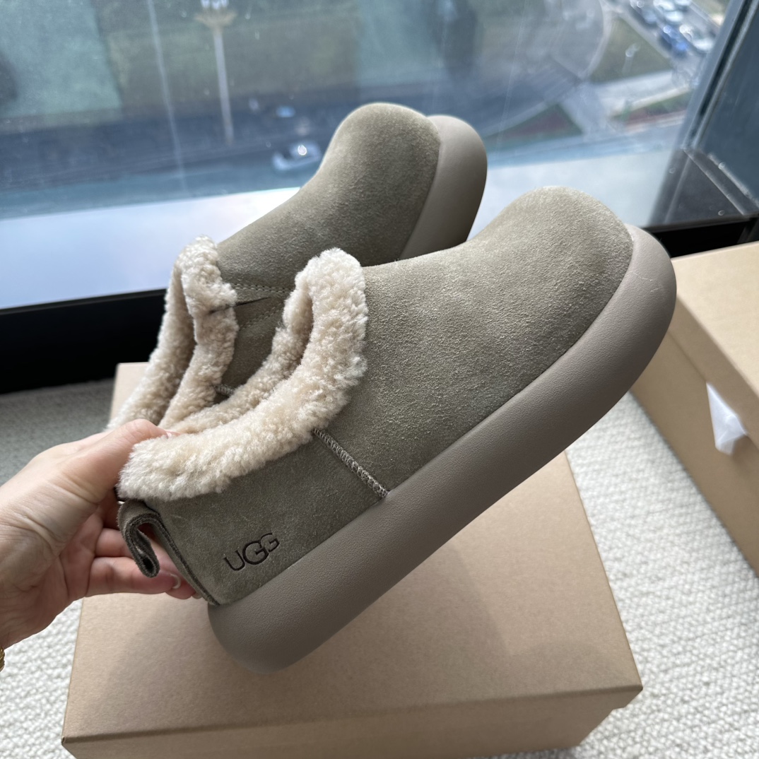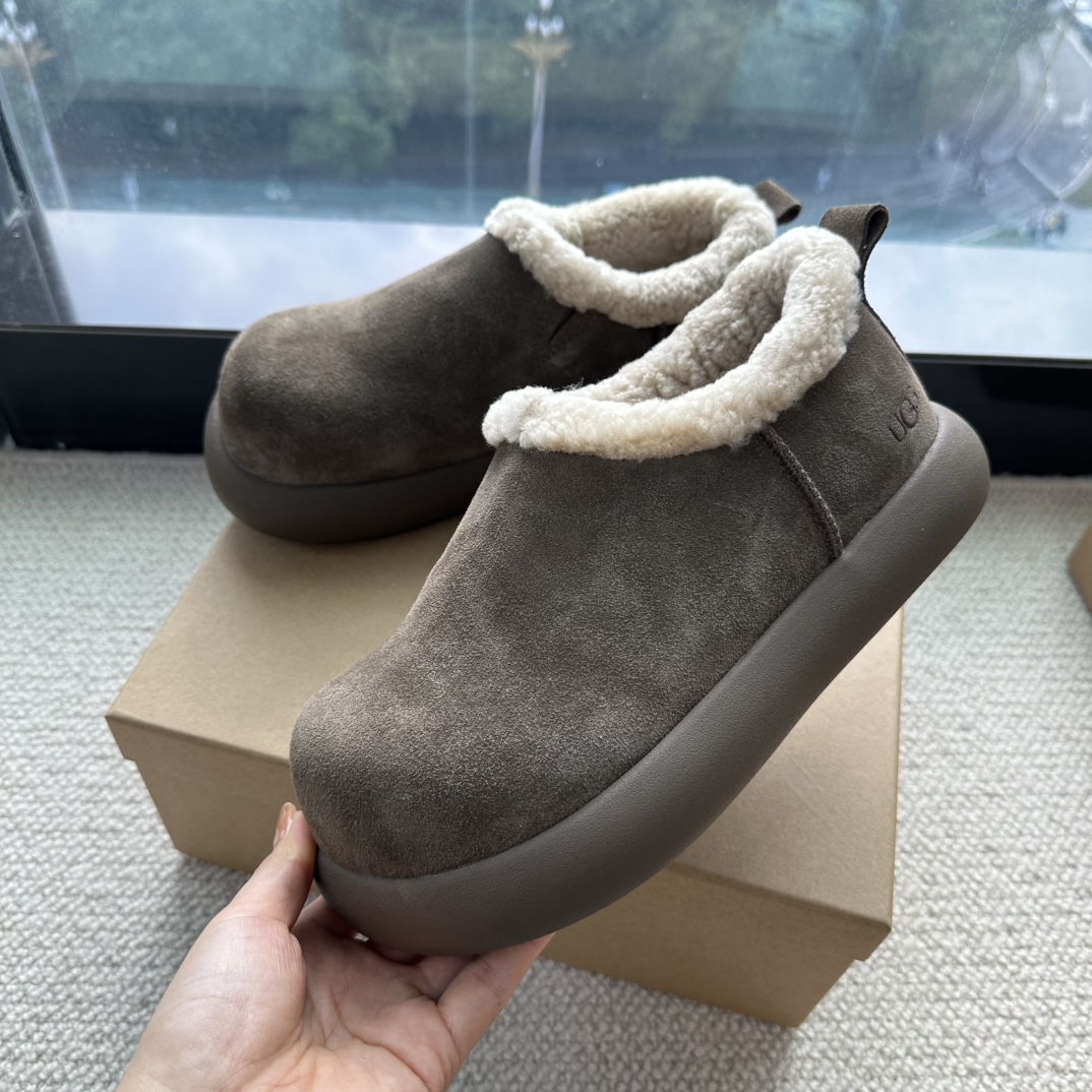 莞产‼️🔥油叽叽| ‼️ 增高厚底设计 小土豆。谁能想到一双棉拖能把舒适和时髦平衡得这么绝!UGG这波操作真的赢麻了~ 高级感拉满,内里的羊毛绒软乎乎的,踩进去像陷进云朵里,秋冬在家穿它,脚丫子再也不会冷冰冰~而且它的版型好特别,圆头厚底的设计,慵懒又随性,配堆堆袜出街也很有氛围感,直接拿捏住今年最火的“丑萌风”! 几个低饱和大地色都很百搭,不管是居家还是搭配卫衣、大衣,都能穿出不一样的风格,真的是秋冬宝藏单品没错了! 尺码:35 36 37 38 39 40 拍预定选项!✈️ 东莞发货