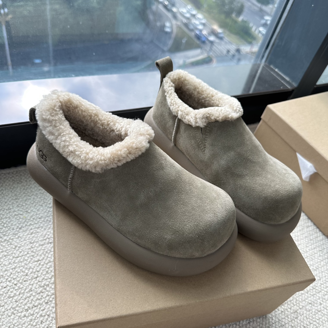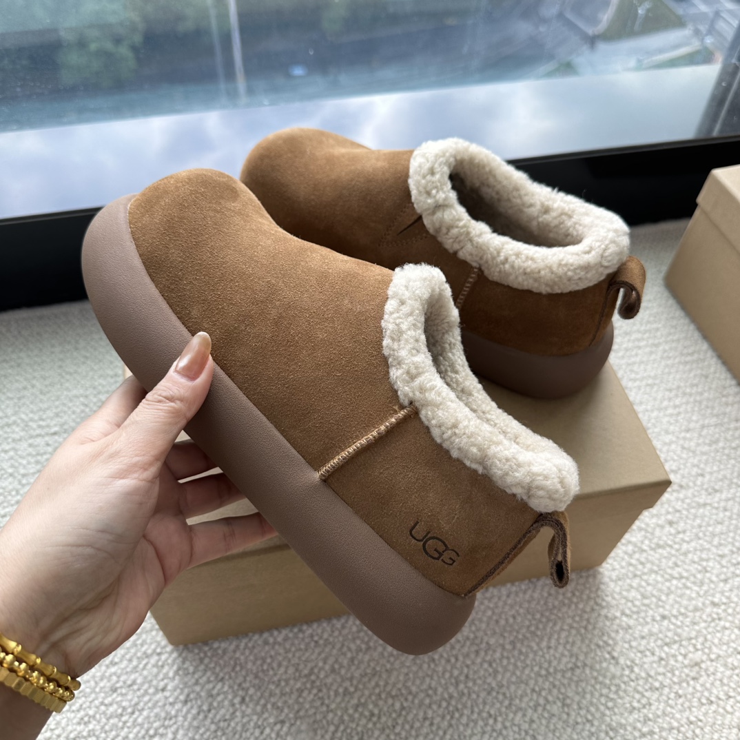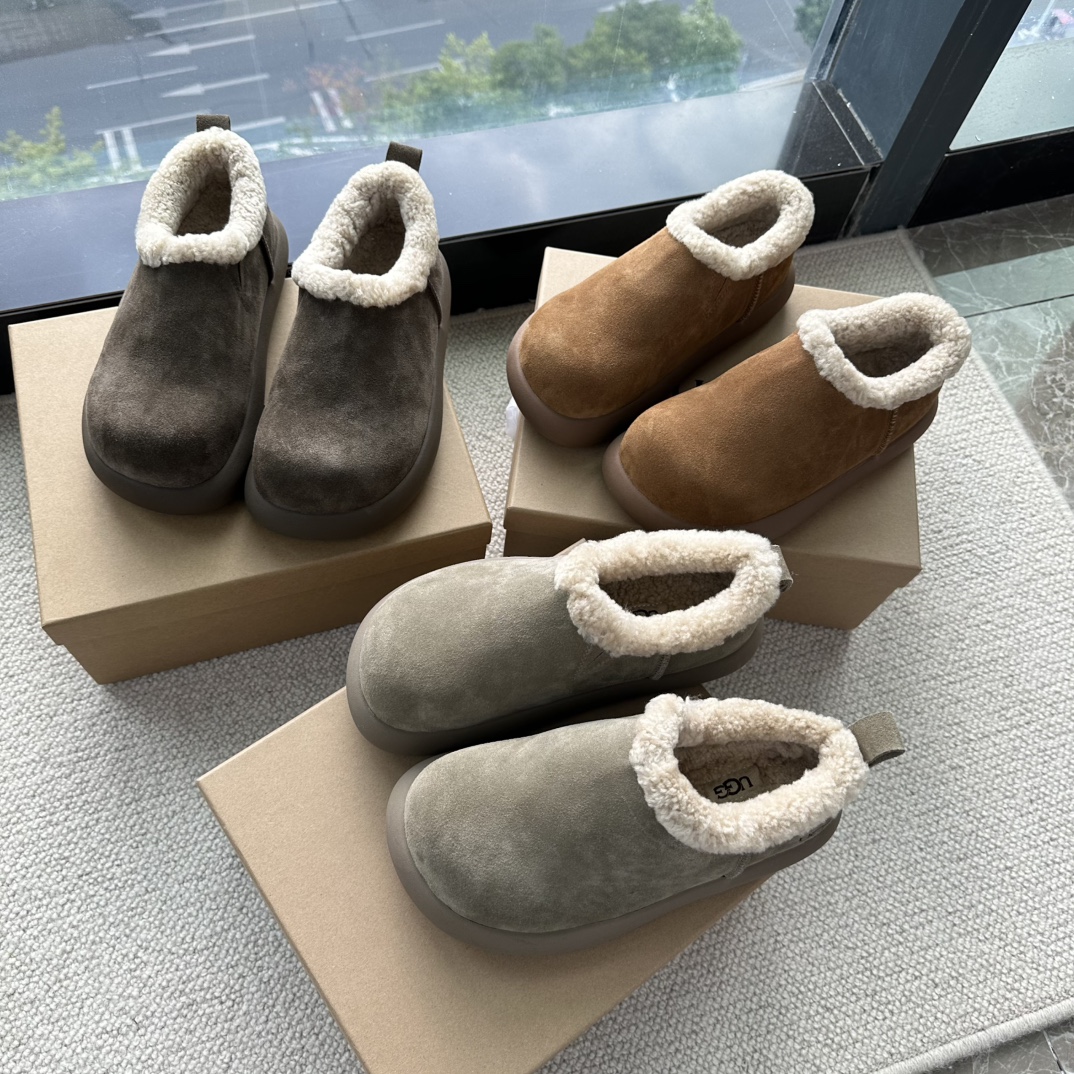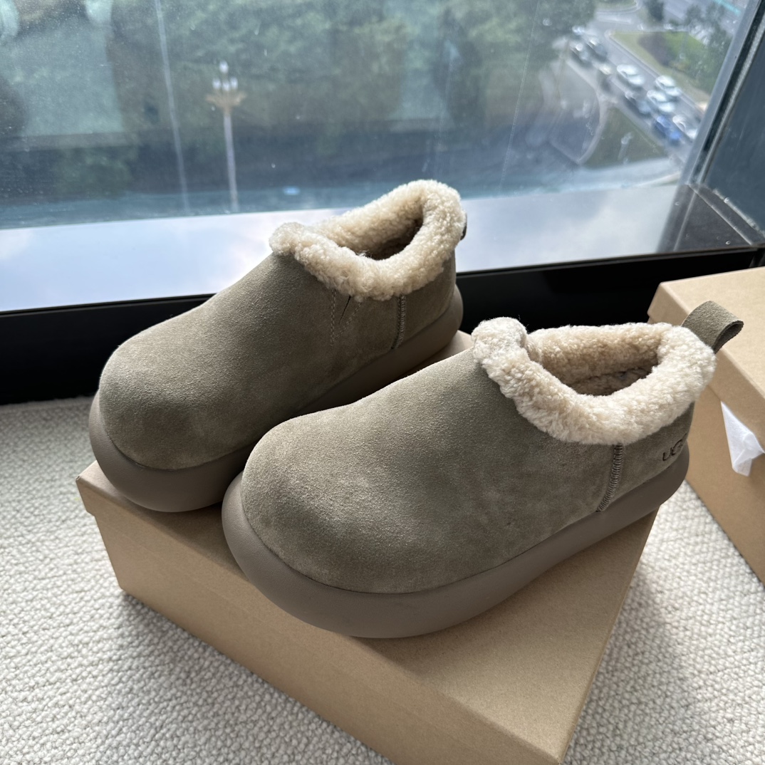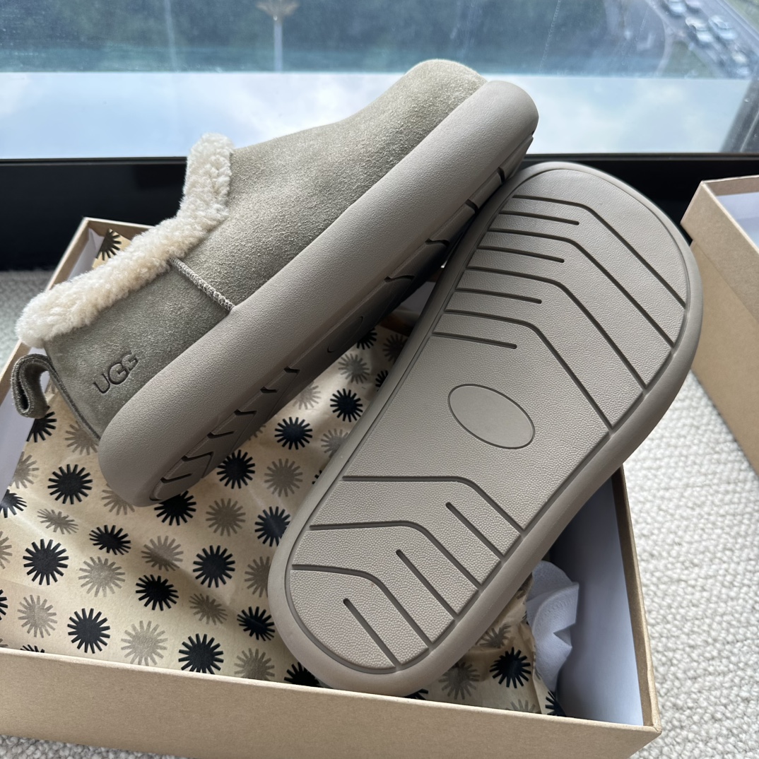 莞产‼️🔥油叽叽| ‼️ 增高厚底设计 小土豆。谁能想到一双棉拖能把舒适和时髦平衡得这么绝!UGG这波操作真的赢麻了~ 高级感拉满,内里的羊毛绒软乎乎的,踩进去像陷进云朵里,秋冬在家穿它,脚丫子再也不会冷冰冰~而且它的版型好特别,圆头厚底的设计,慵懒又随性,配堆堆袜出街也很有氛围感,直接拿捏住今年最火的“丑萌风”! 几个低饱和大地色都很百搭,不管是居家还是搭配卫衣、大衣,都能穿出不一样的风格,真的是秋冬宝藏单品没错了! 尺码:35 36 37 38 39 40 拍预定选项!✈️ 东莞发货