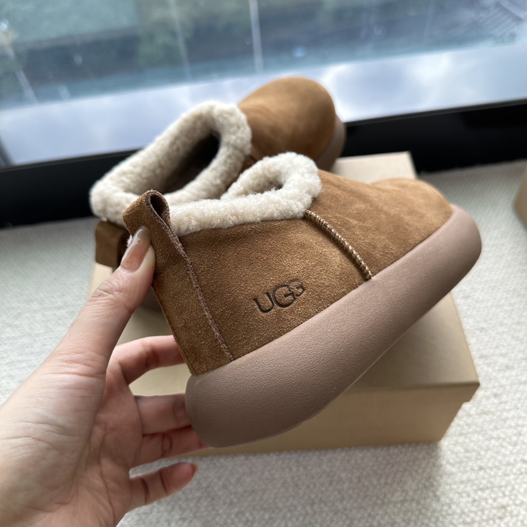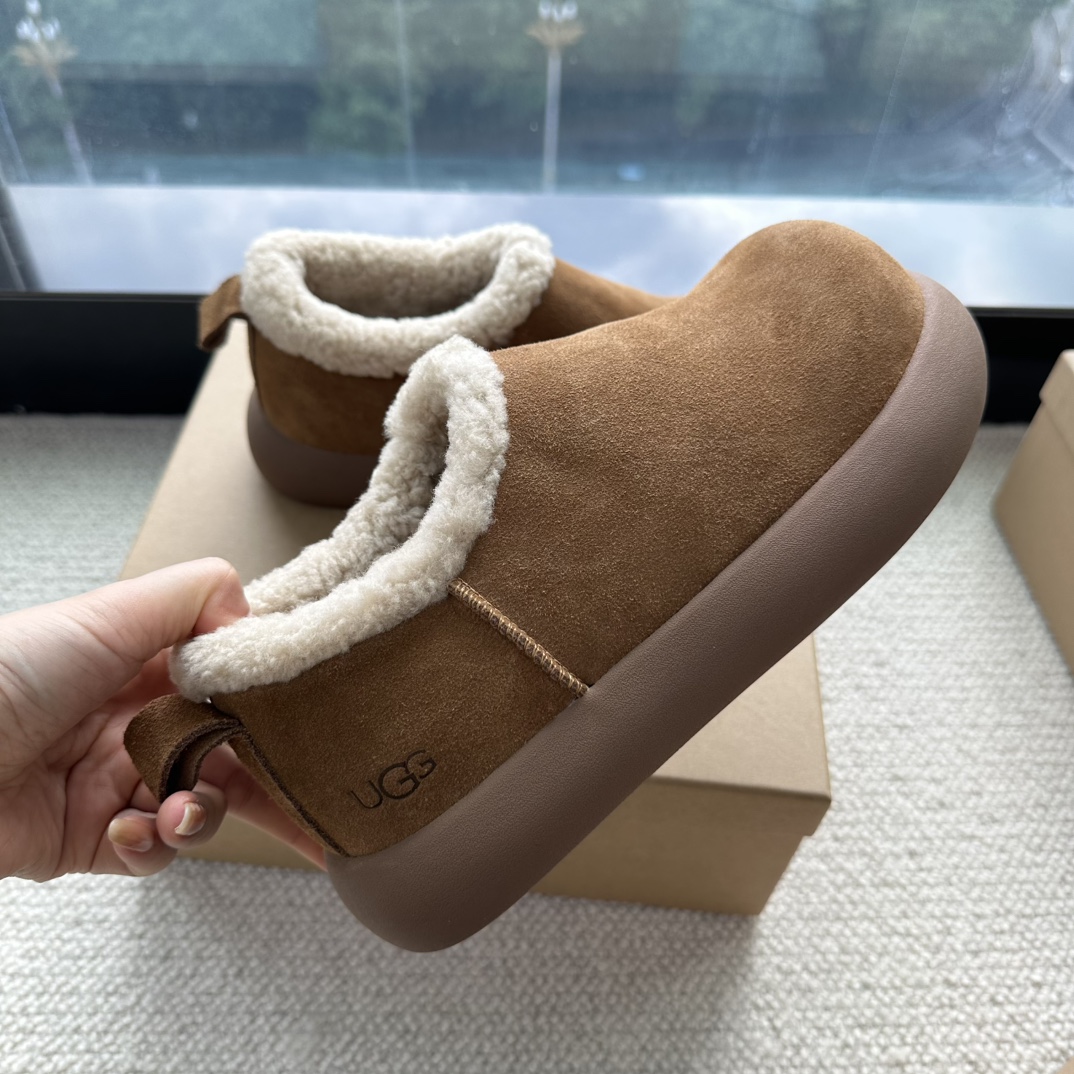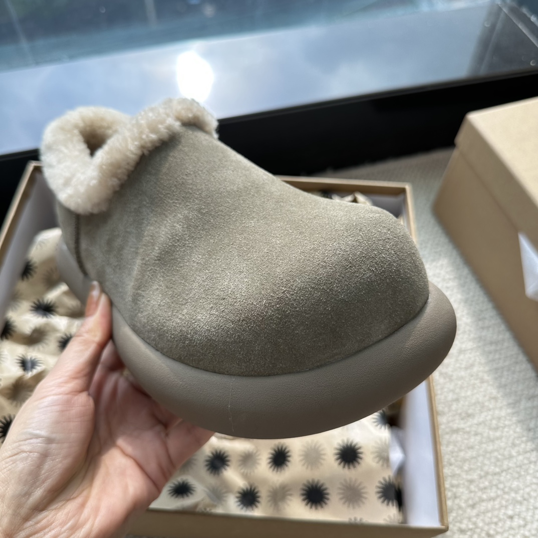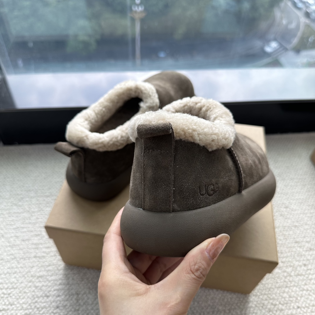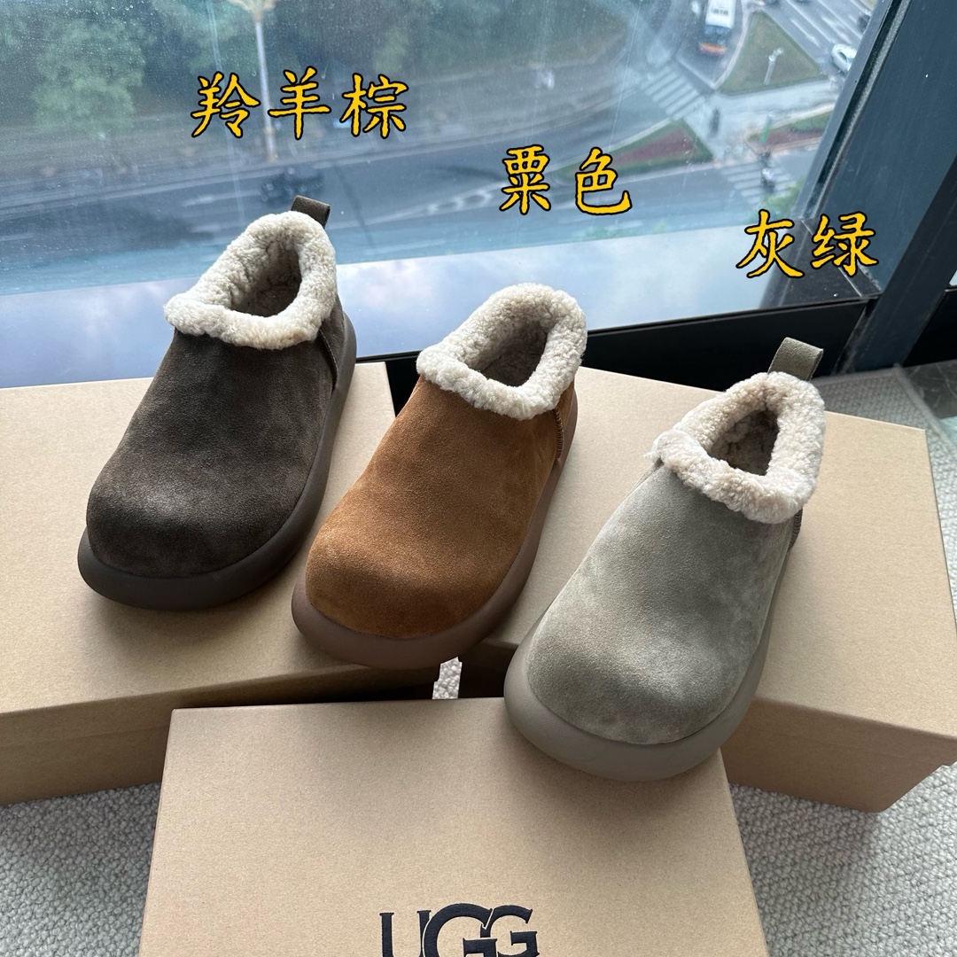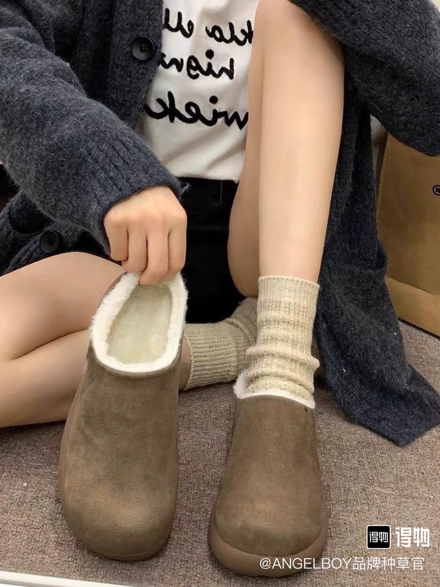 莞产‼️🔥油叽叽| ‼️ 增高厚底设计 小土豆。谁能想到一双棉拖能把舒适和时髦平衡得这么绝!UGG这波操作真的赢麻了~ 高级感拉满,内里的羊毛绒软乎乎的,踩进去像陷进云朵里,秋冬在家穿它,脚丫子再也不会冷冰冰~而且它的版型好特别,圆头厚底的设计,慵懒又随性,配堆堆袜出街也很有氛围感,直接拿捏住今年最火的“丑萌风”! 几个低饱和大地色都很百搭,不管是居家还是搭配卫衣、大衣,都能穿出不一样的风格,真的是秋冬宝藏单品没错了! 尺码:35 36 37 38 39 40 拍预定选项!✈️ 东莞发货