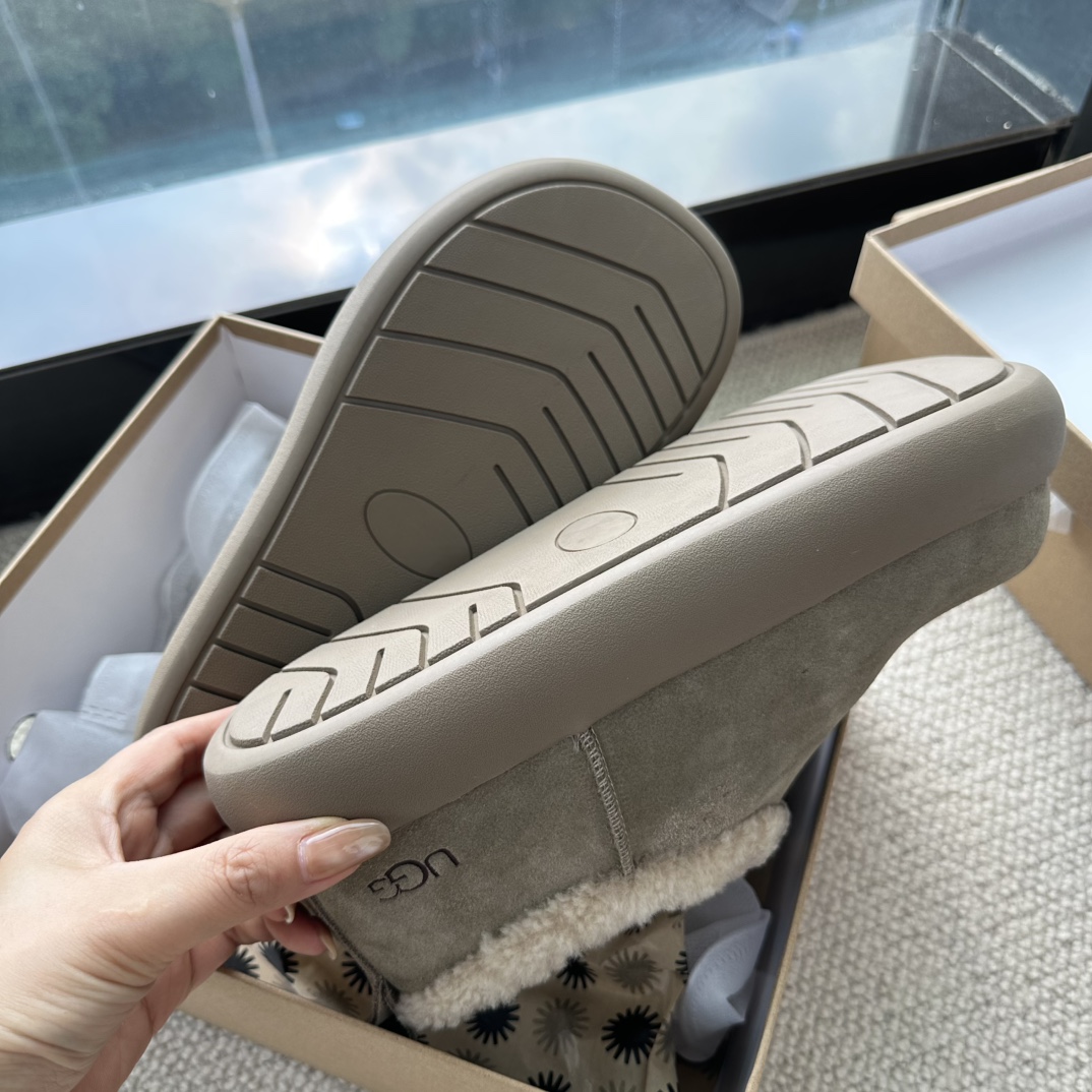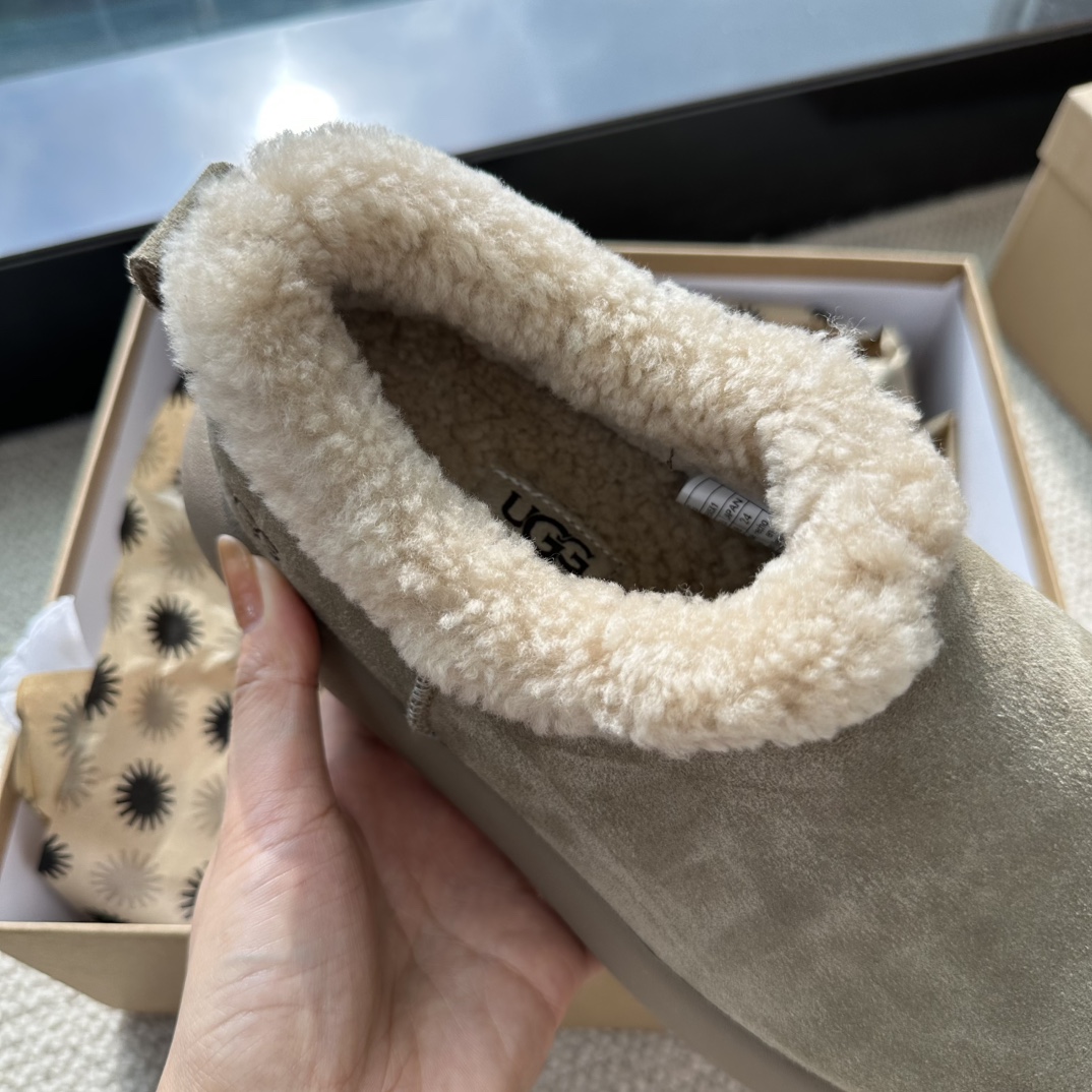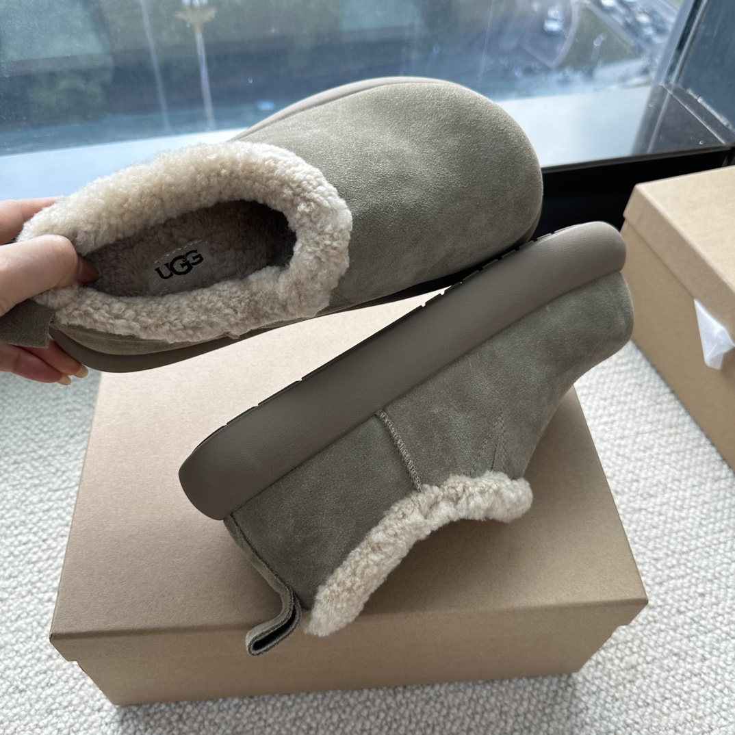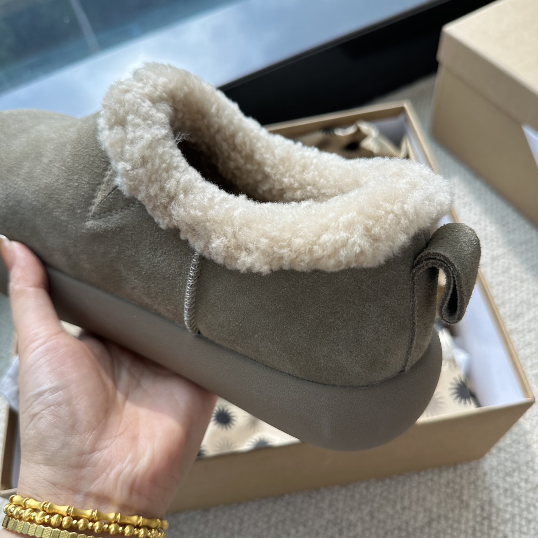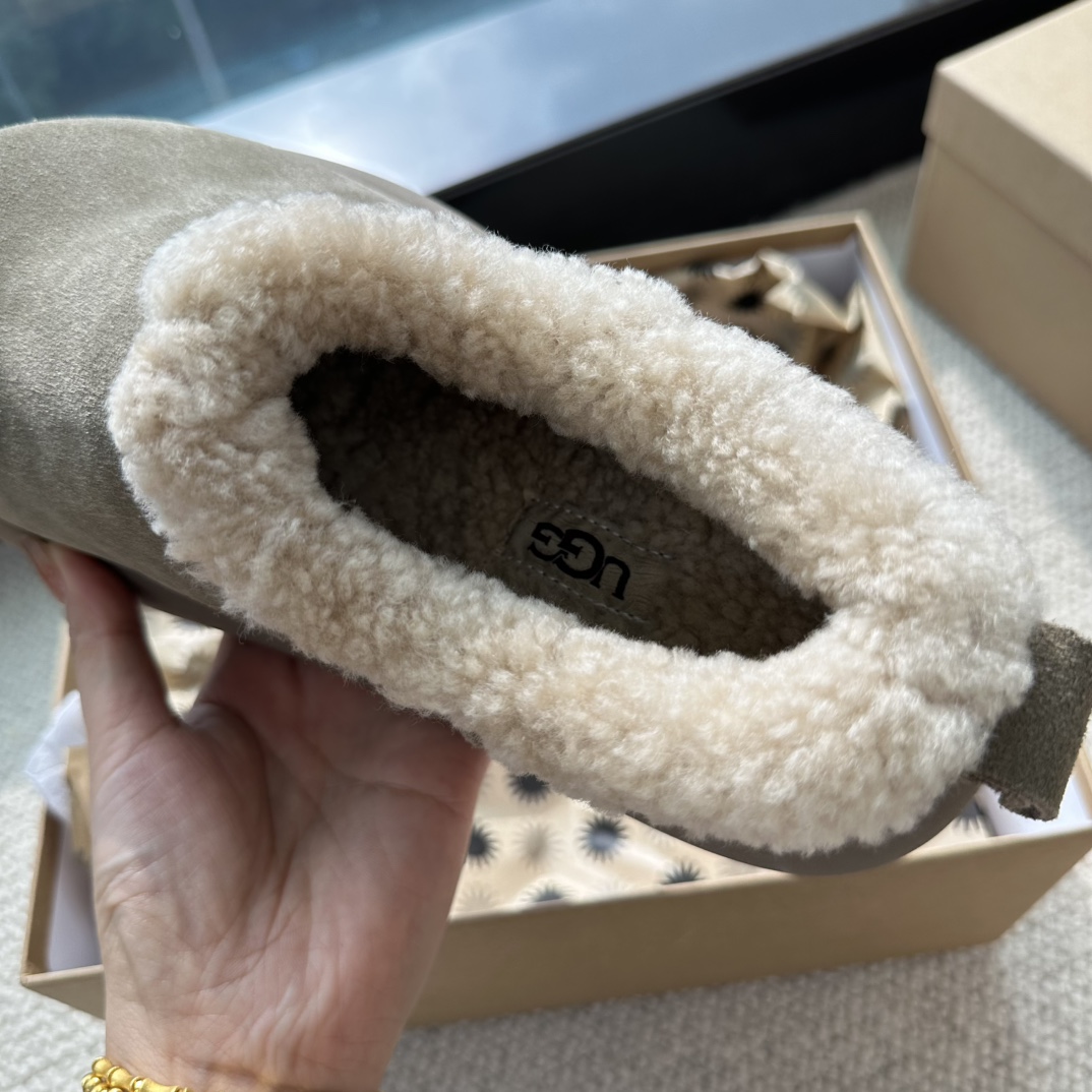 莞产‼️🔥油叽叽| ‼️ 增高厚底设计 小土豆。谁能想到一双棉拖能把舒适和时髦平衡得这么绝!UGG这波操作真的赢麻了~ 高级感拉满,内里的羊毛绒软乎乎的,踩进去像陷进云朵里,秋冬在家穿它,脚丫子再也不会冷冰冰~而且它的版型好特别,圆头厚底的设计,慵懒又随性,配堆堆袜出街也很有氛围感,直接拿捏住今年最火的“丑萌风”! 几个低饱和大地色都很百搭,不管是居家还是搭配卫衣、大衣,都能穿出不一样的风格,真的是秋冬宝藏单品没错了! 尺码:35 36 37 38 39 40 拍预定选项!✈️ 东莞发货
