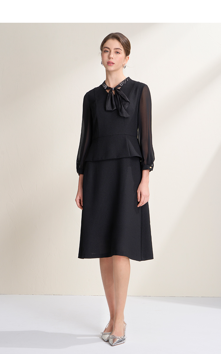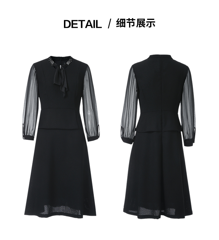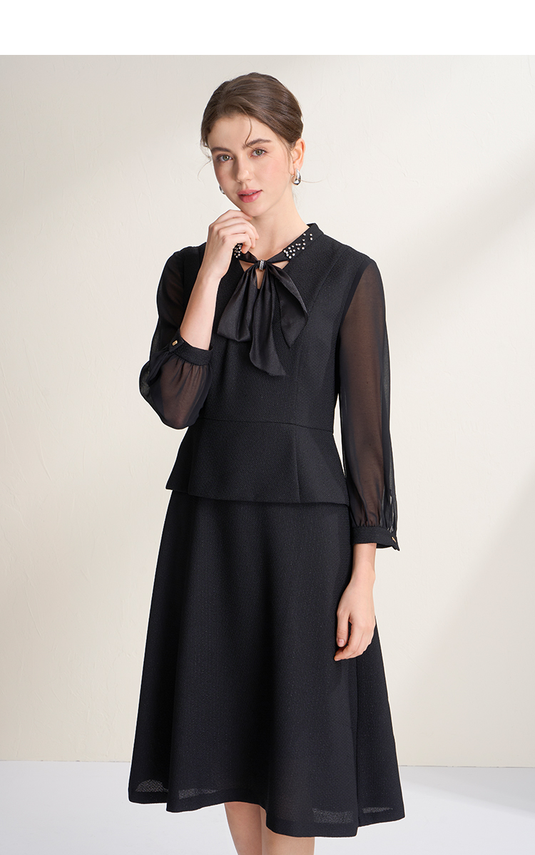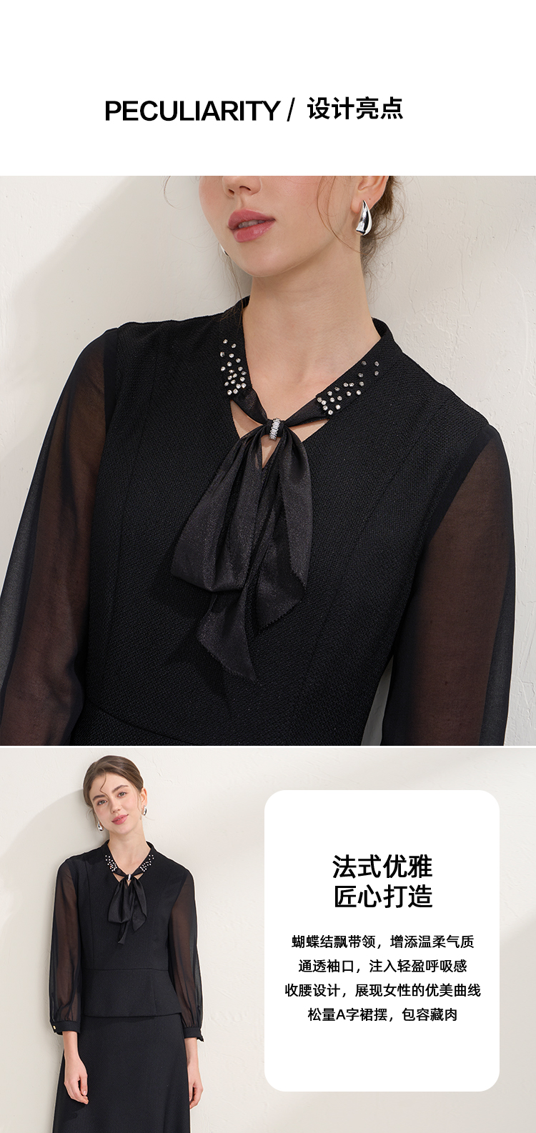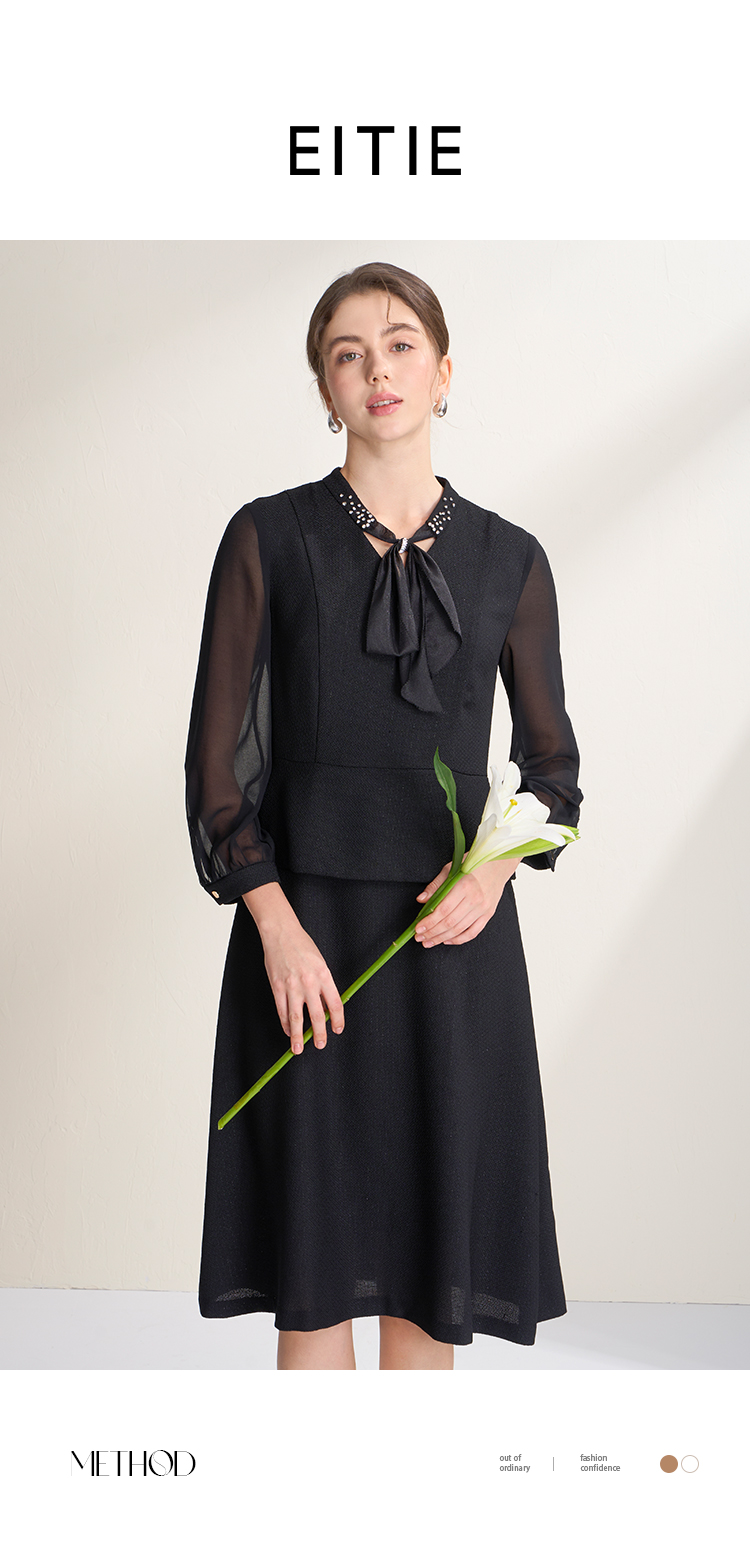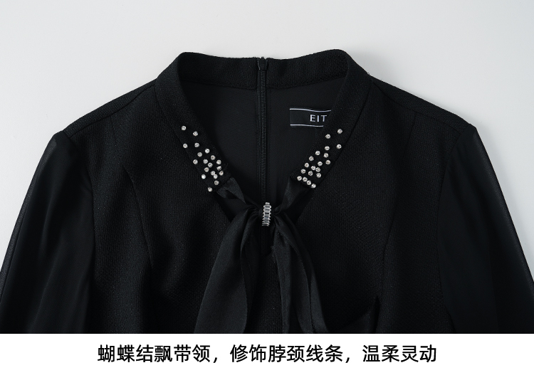 【朦胧纱】EITIE爱特爱通勤优雅假两件飘带法式连衣裙2026春新款A2607123