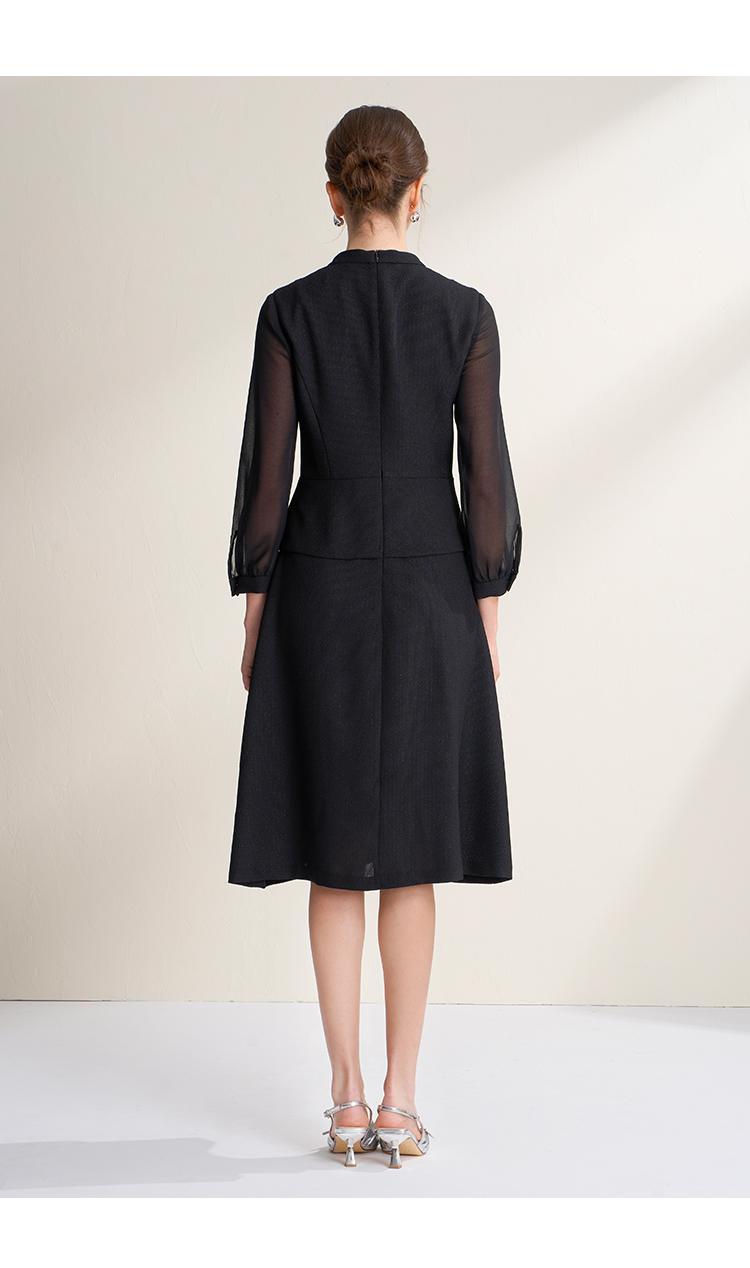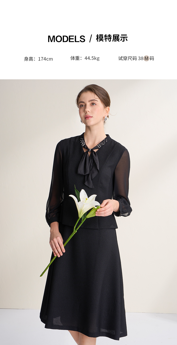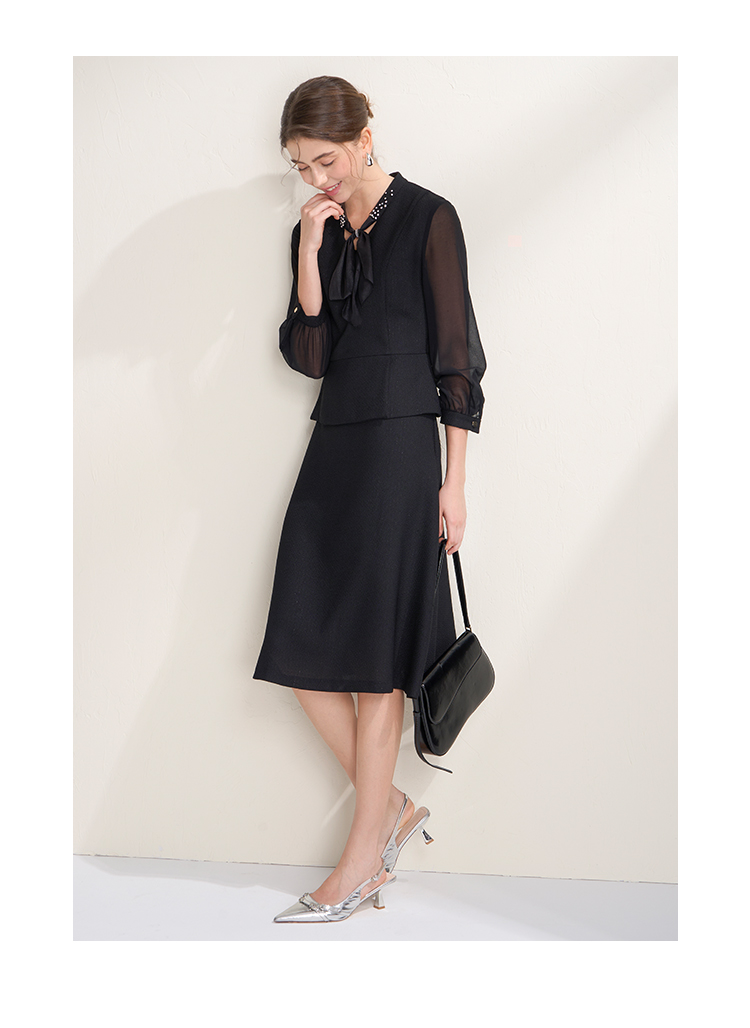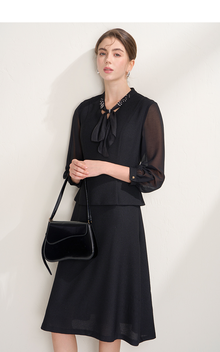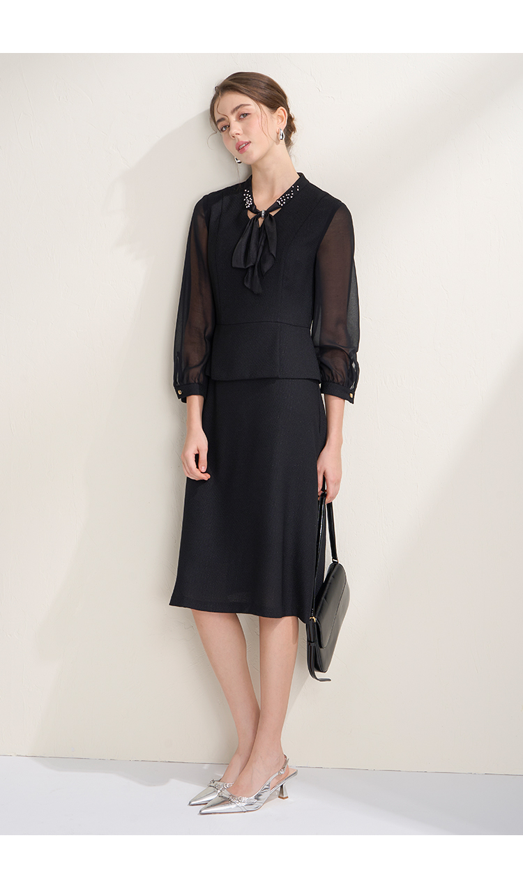 【朦胧纱】EITIE爱特爱通勤优雅假两件飘带法式连衣裙2026春新款A2607123