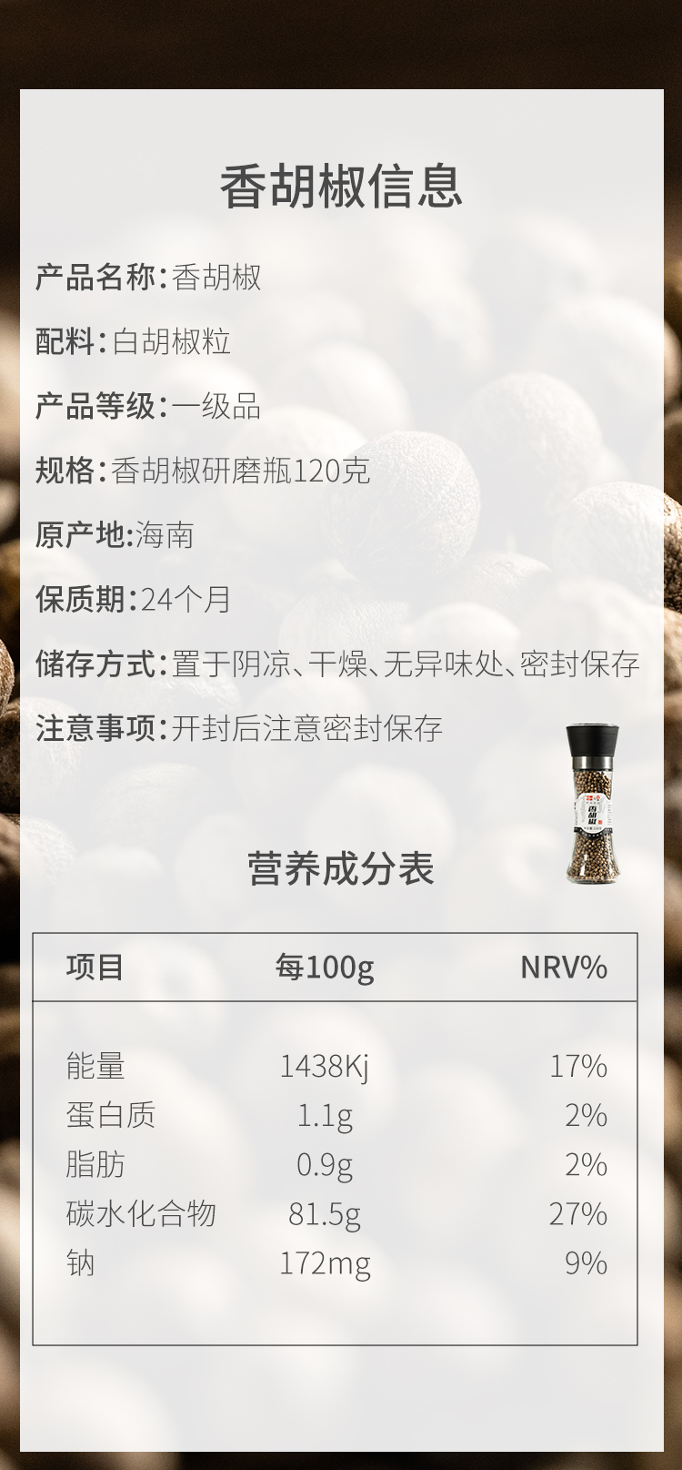 香胡椒研磨瓶120克(生产日期2024年11月3日,保质期24个月)