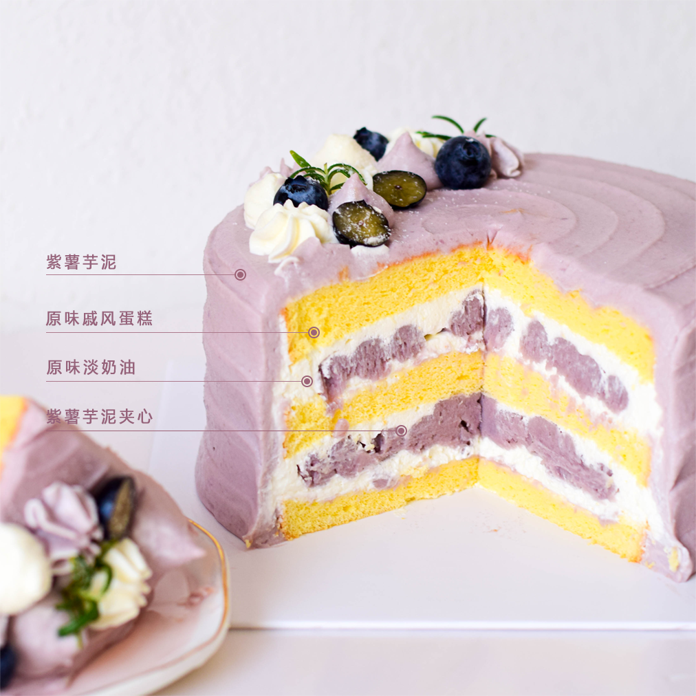蛋糕夹心 紫薯芋泥、原味淡奶油