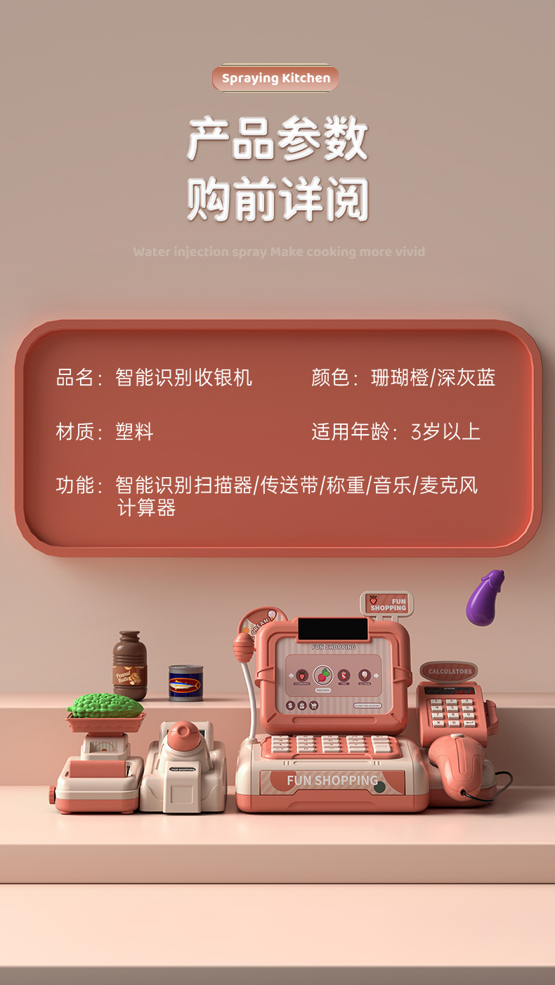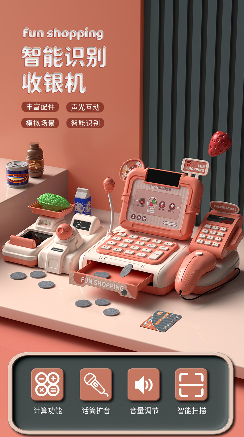 【体验真实购物 轻松学数学】 Yisi儿童过家家智能收银机 扫描刷卡益智多功能超市玩具